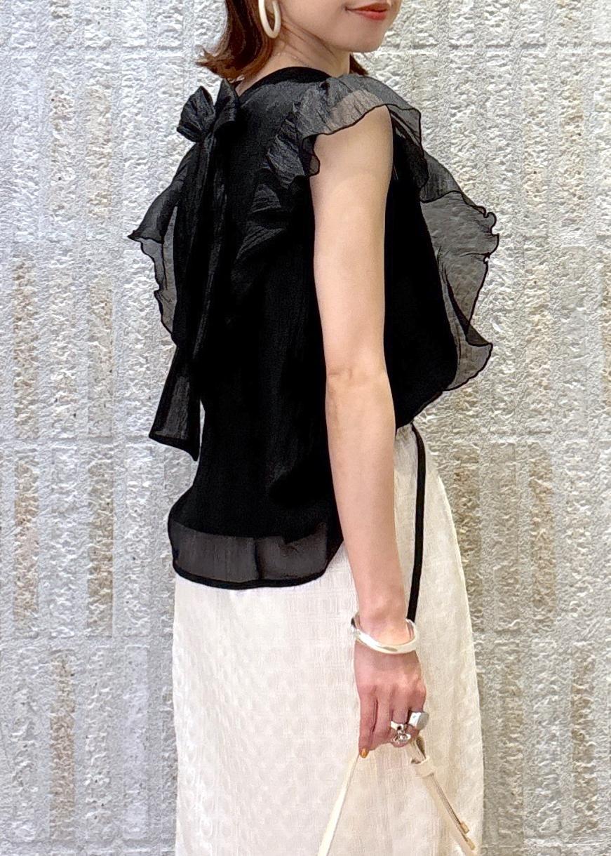 一枚で女性らしく、前後2WAYなので気分を変えられる優秀トップスです。少し甘めなデザインなので、黒が落ち着く♪