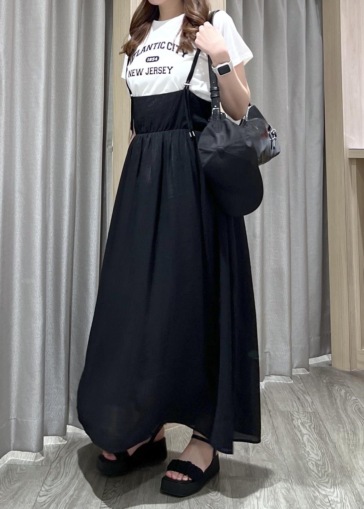 アウトレットVISAラインキャミワンピースブラック / F¥3,955レビュー肩紐ストラップは長さ調節可能なのでワンピースにもスカートにもなるデザインです!好みの丈で着回せます◎