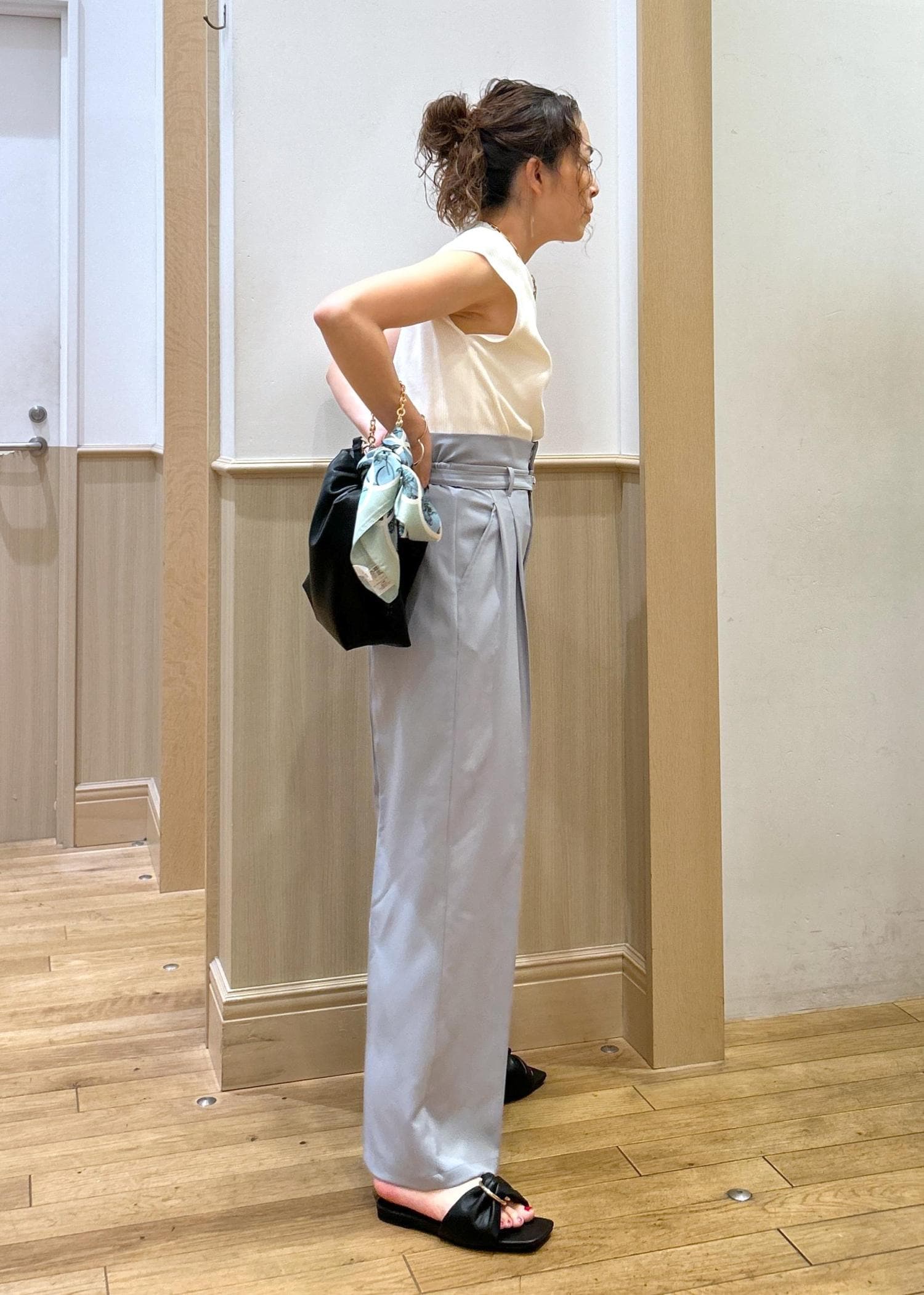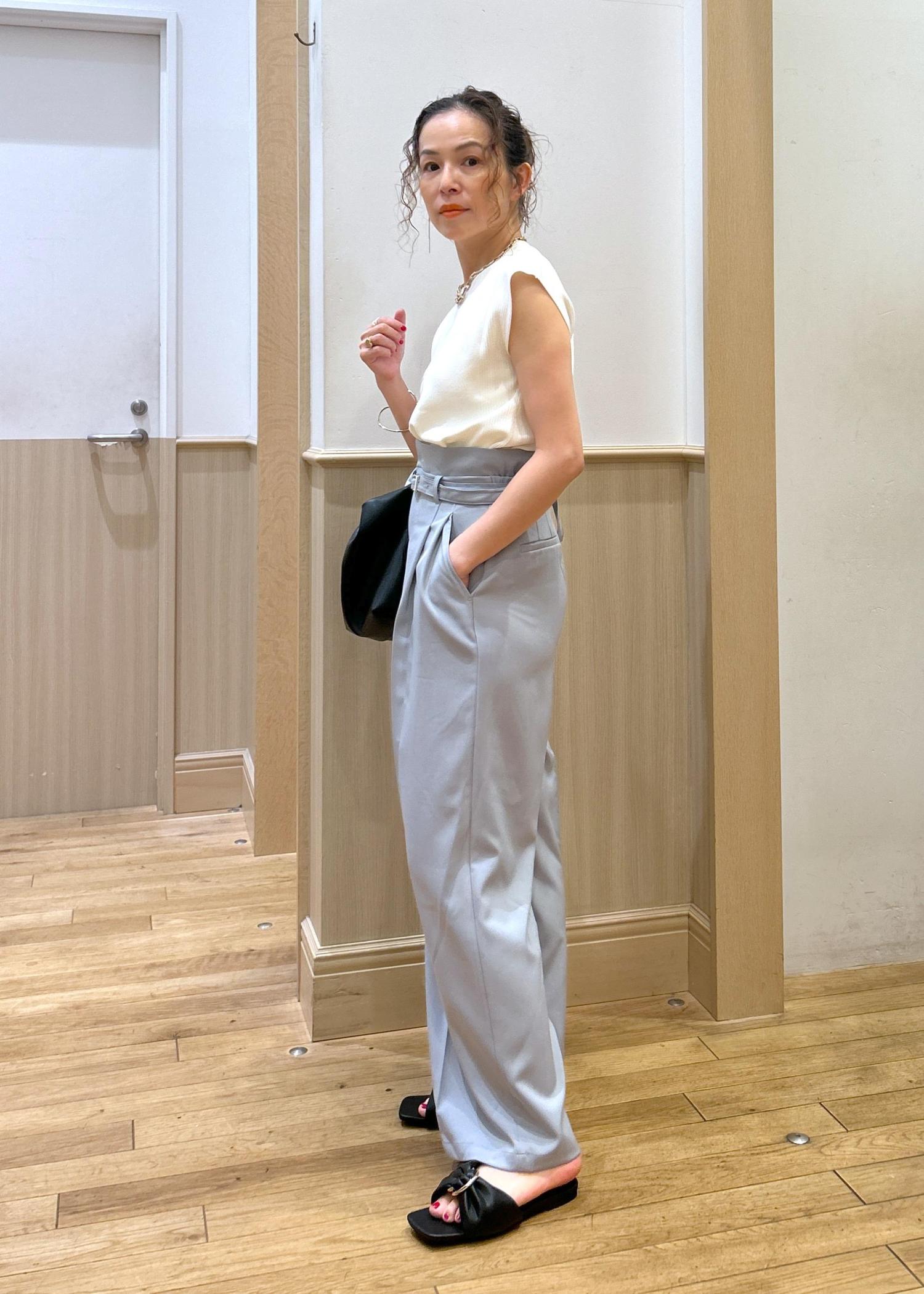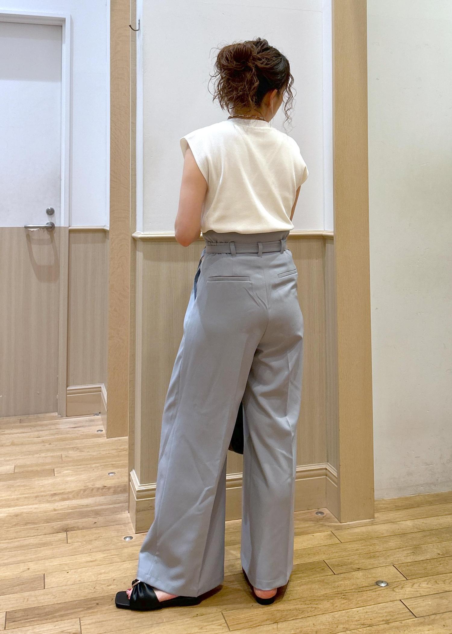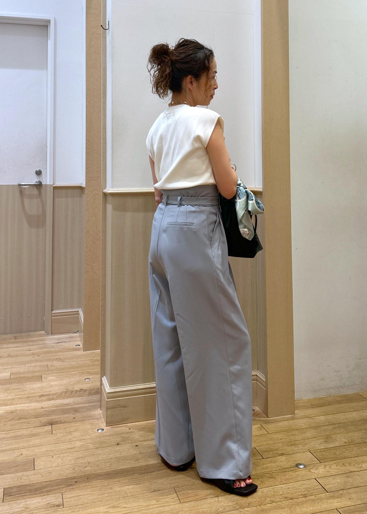 VIS【新色追加】【防シワ/接触冷感】ベルトディテールタックワイドスラックスパンツサックス / S¥6,589レビュー153cmSサイズ着用でかかとギリギリくらいの丈感です。