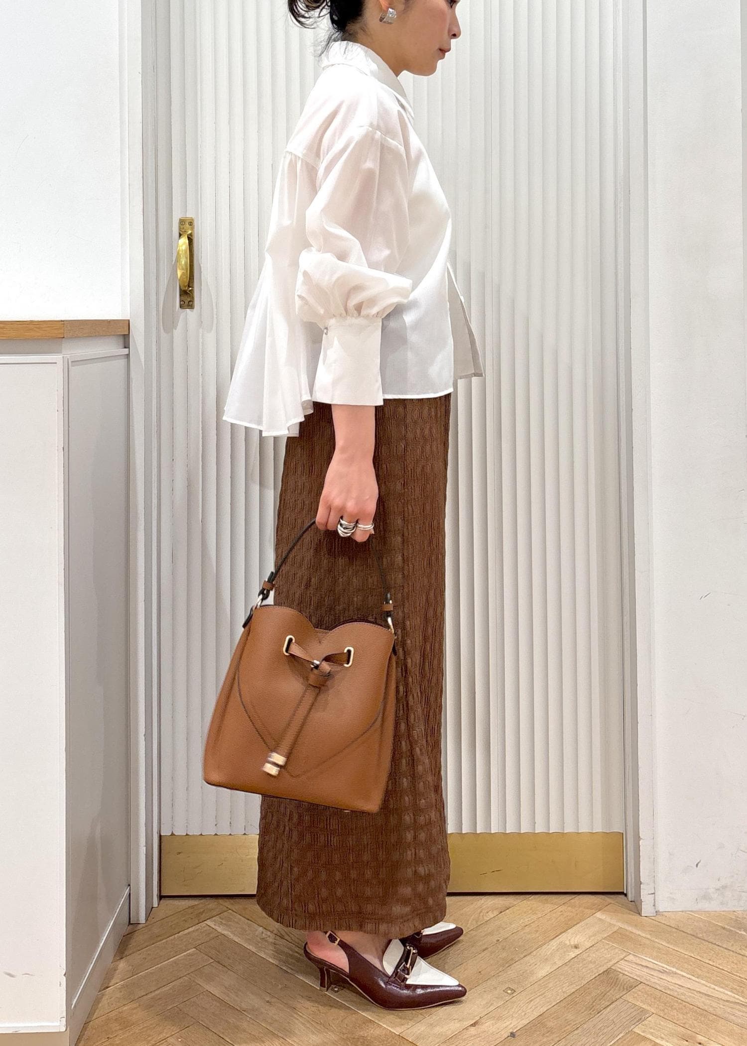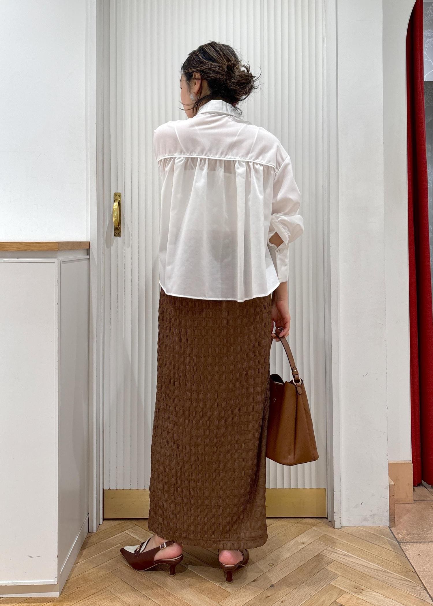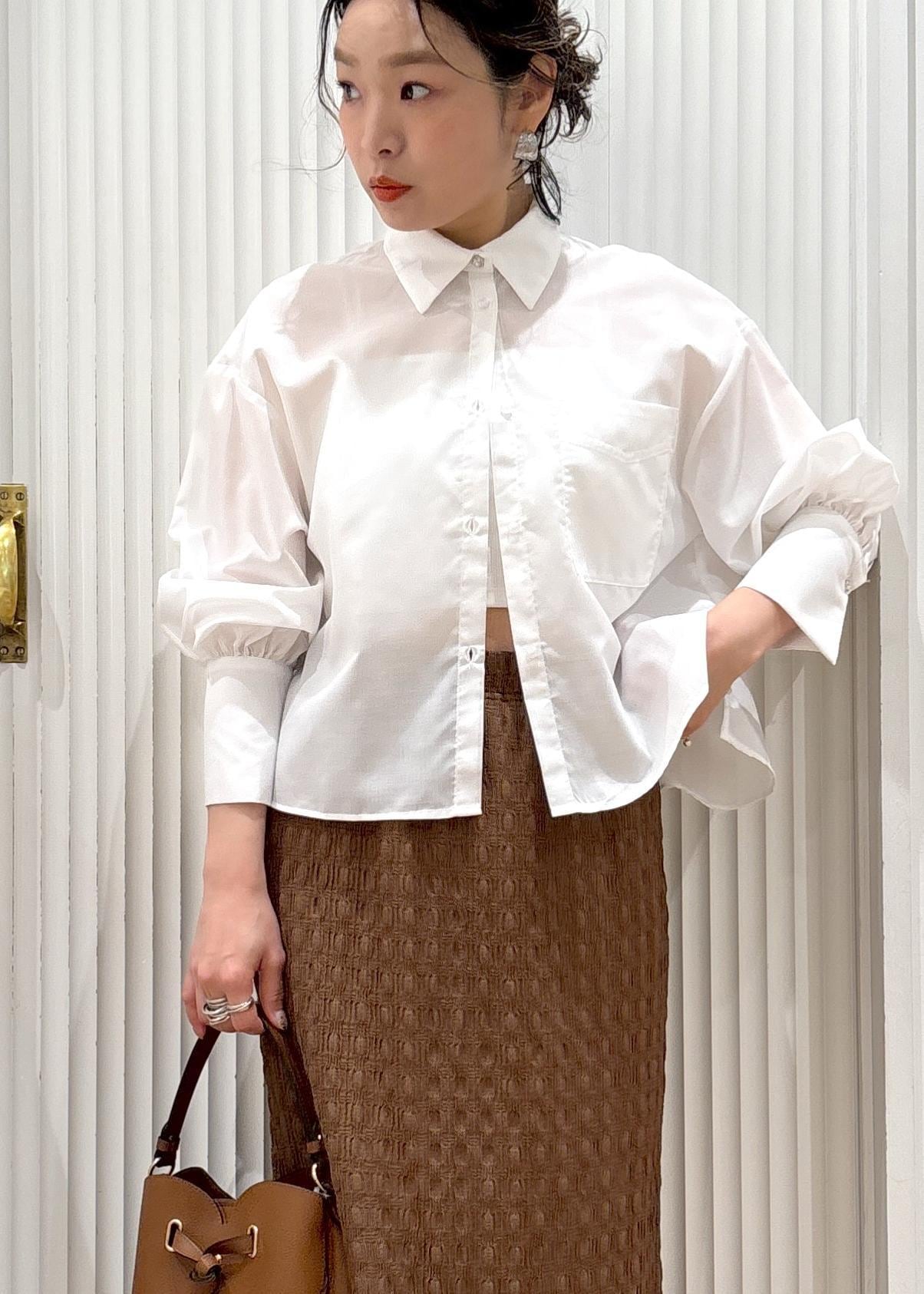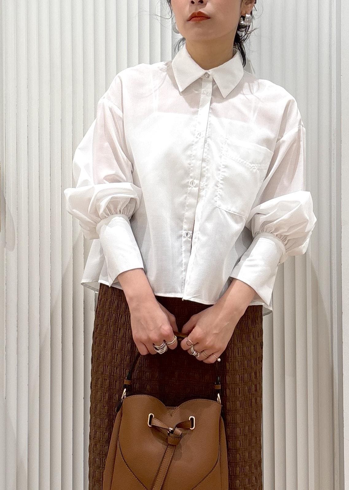 でもトップスはシアー感のあるブラウスをチョイス。重たくならないようにヘルシーに肌見せしても可愛いです♡