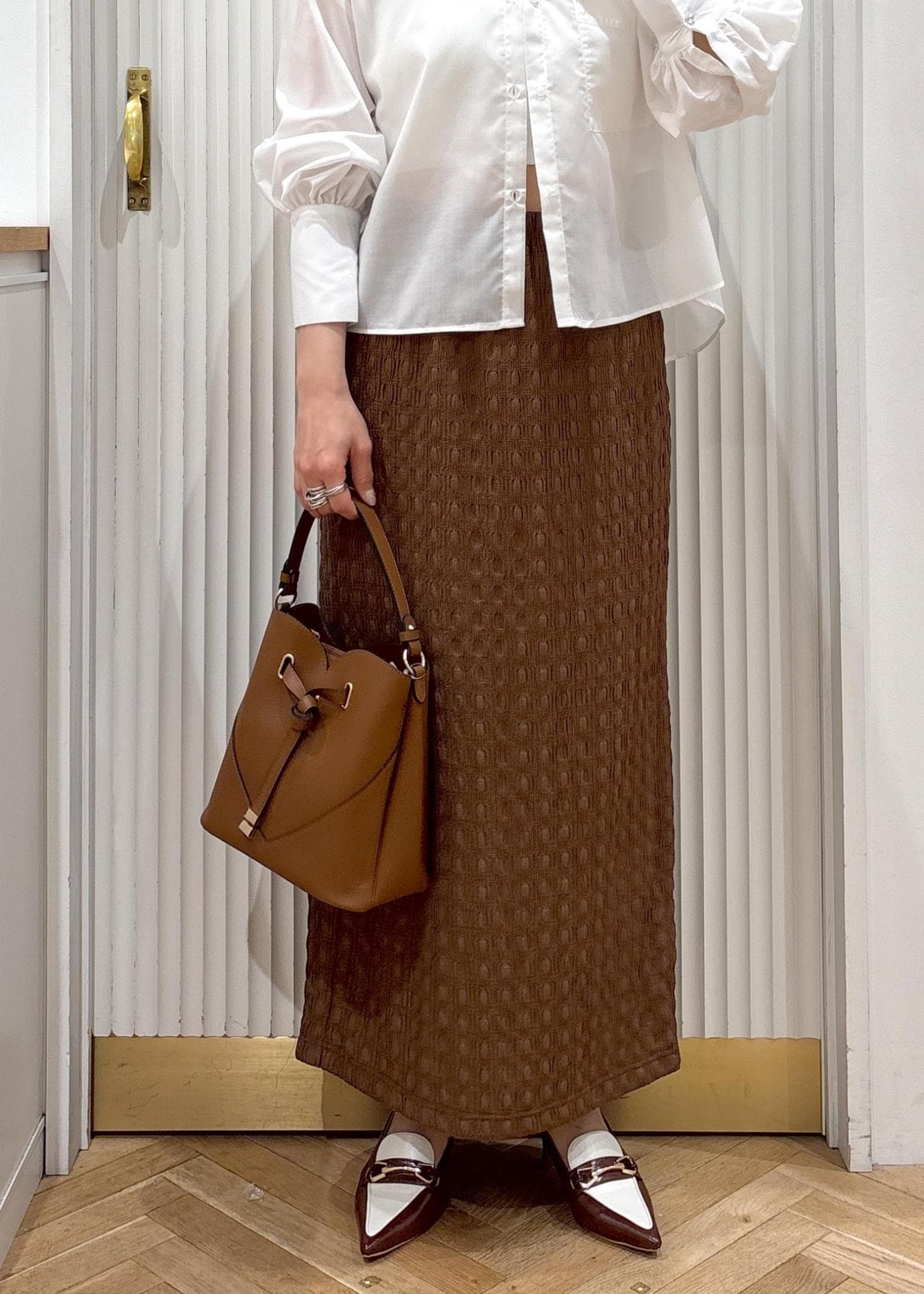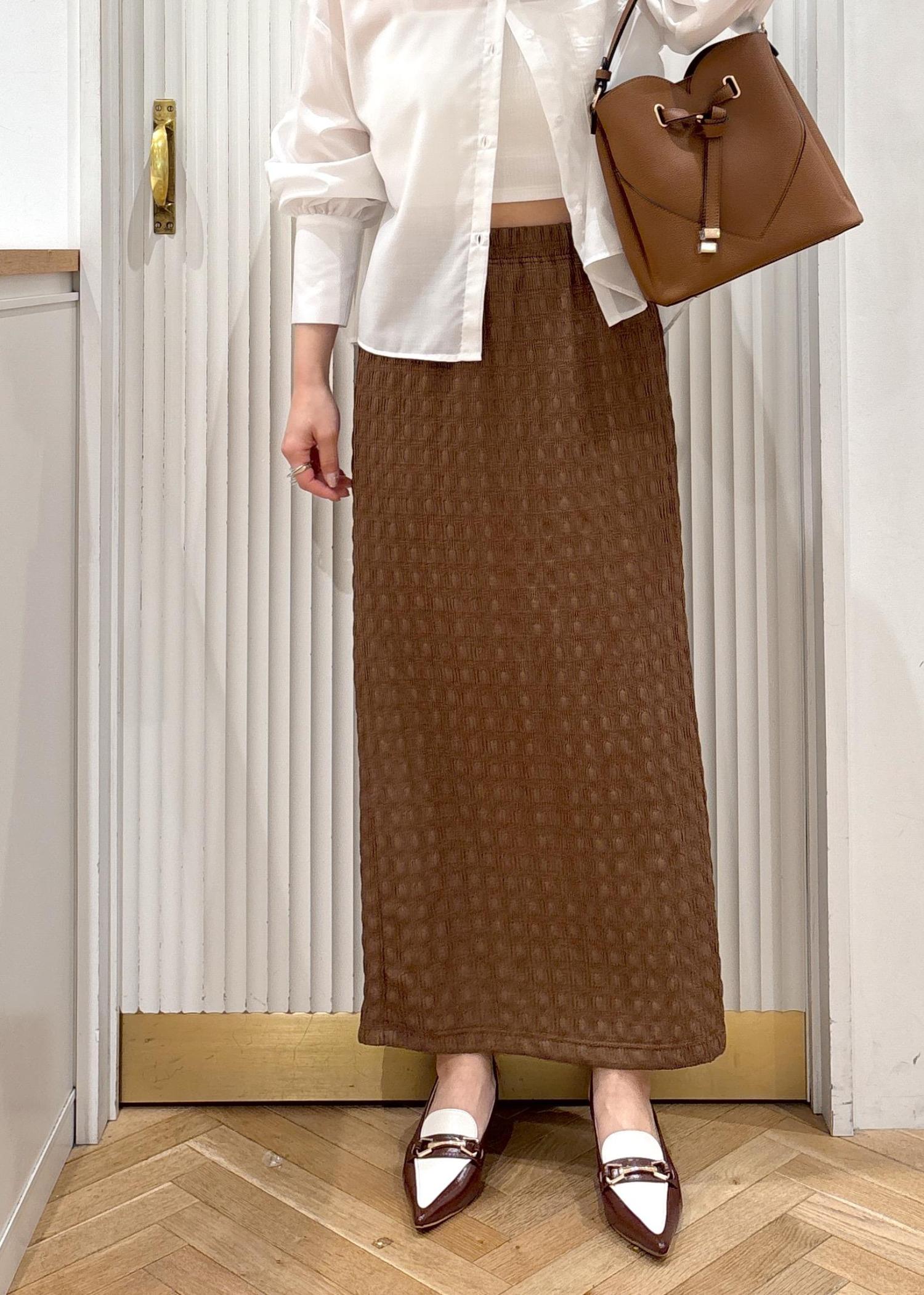 アウトレットVIS【新色追加】【接触冷感】膨れジャガードナロースカートブラウン / F¥3,293レビューストレッチの効いた柔らかい生地のタイトスカートです。スリットは入っていませんが伸縮性があるので足捌きはスムーズでした。裏地も付いているのでオフホワイトをリアルバイしましたが透け感は気にならなかったです。