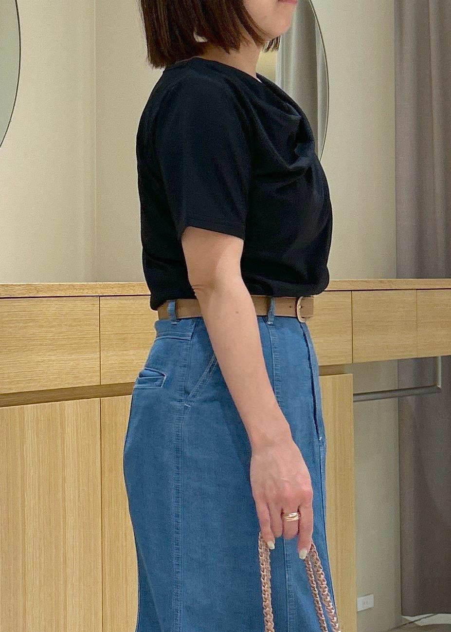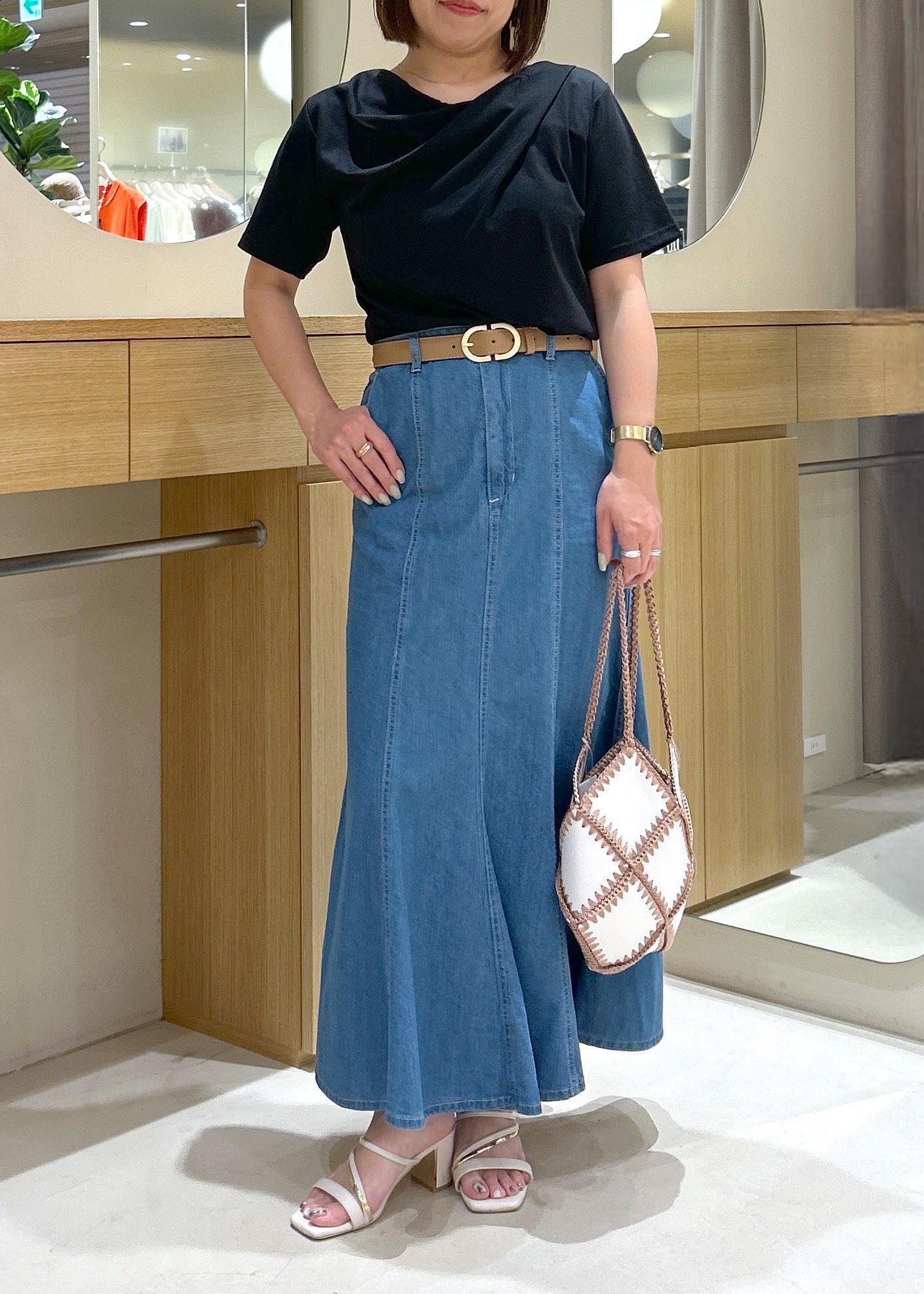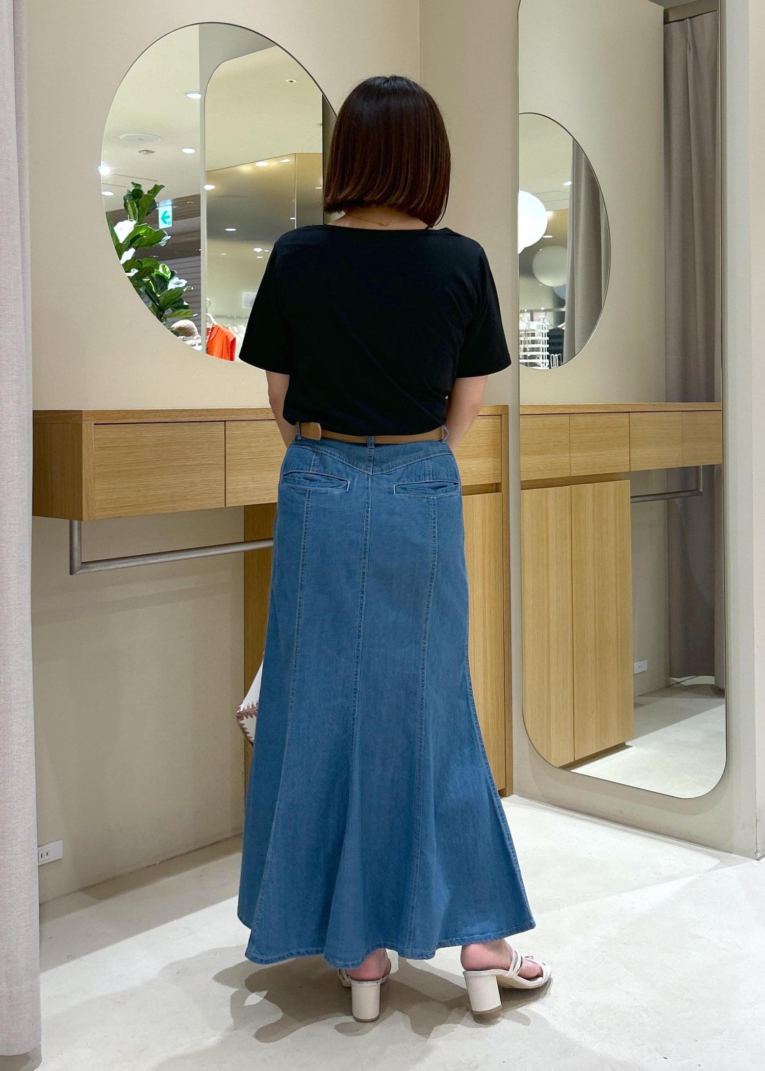 今回はデニムスカートを合わせカジュアルなスタイリングにしてますが、パンツスタイルでカッコよく着こなすのもおすすめ◎