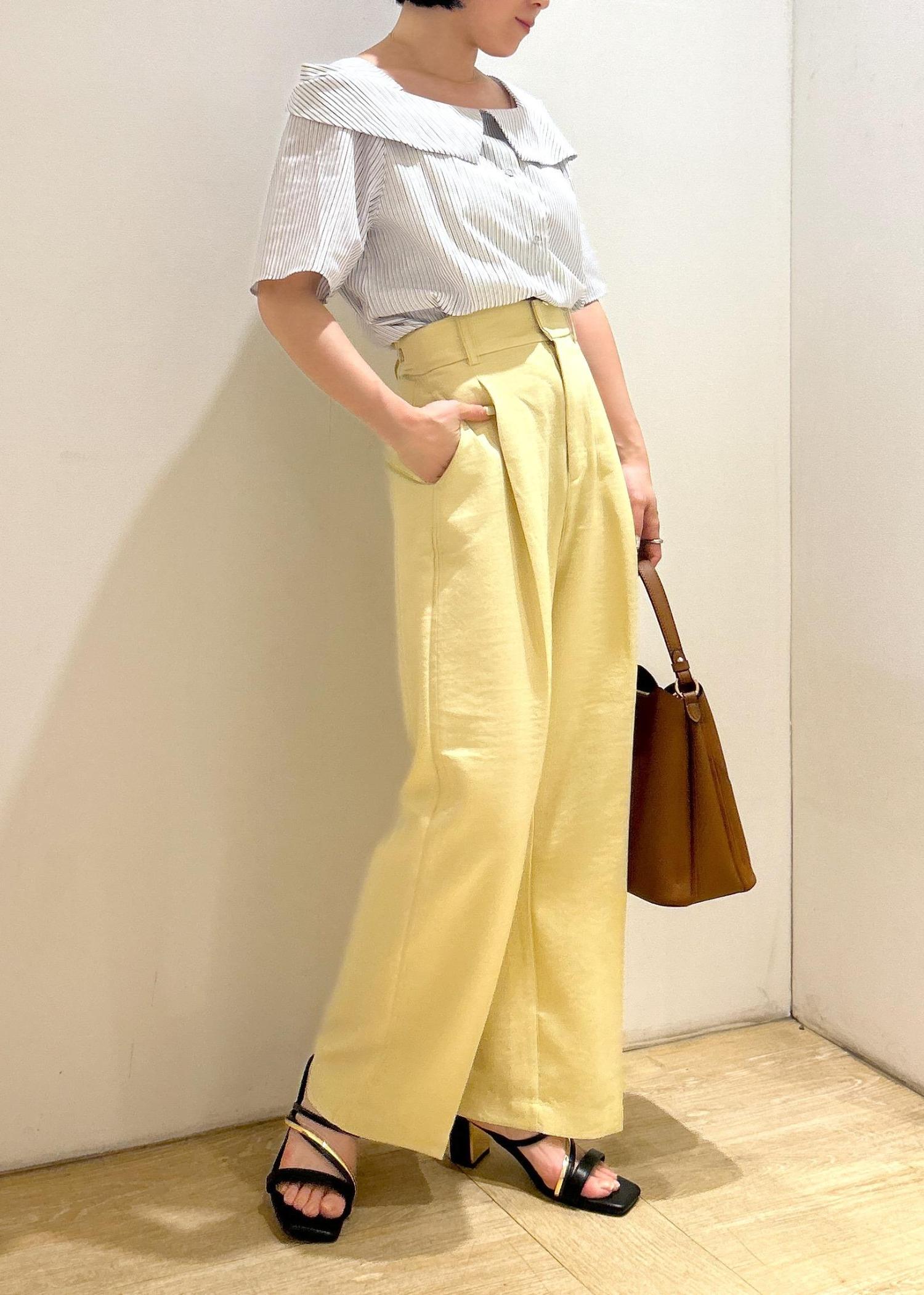 VIS【美easy】ワンタックワイドスラックスパンツ/洗えるイエロー系 / SS¥5,489レビュー丈も低身長さんでも引きずらない長さです。