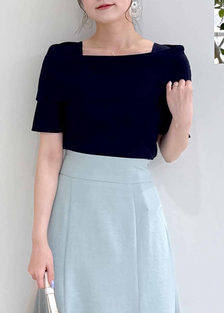 VIS【アンチピリング/UVケア/洗える】オフショルハーフスリーブニットネイビー / F¥4,939レビュー程よい肌見せが叶うトップス。