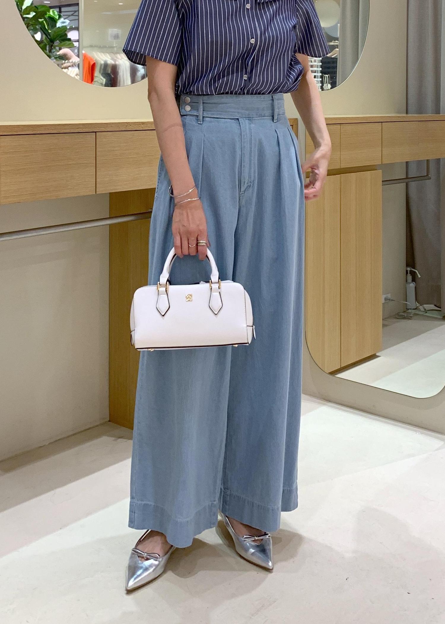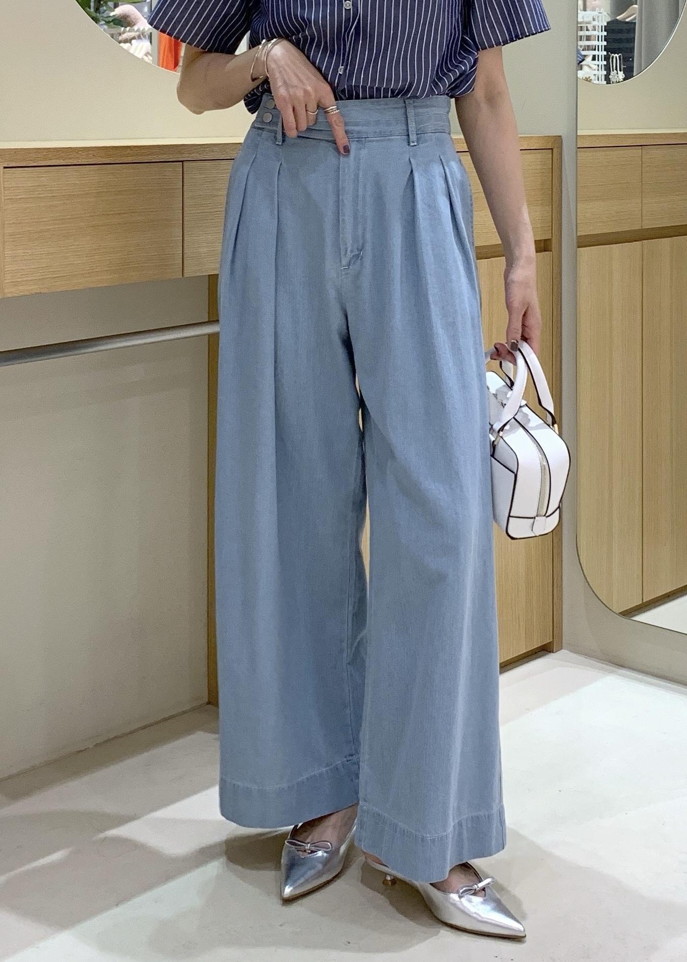 リラックス感あるワイドパンツなので、肌離れして夏でも最適です。ウエストはジャストサイズでコンパクトでした。