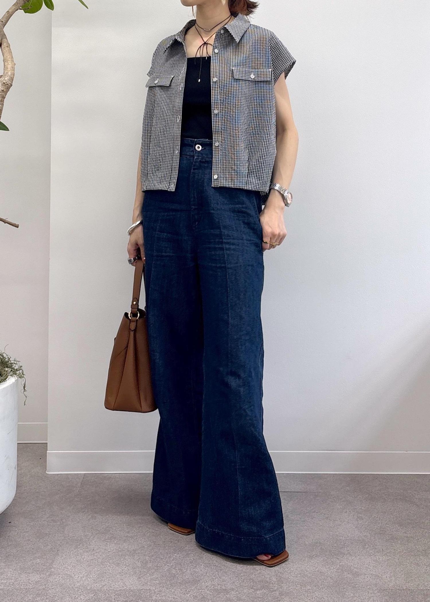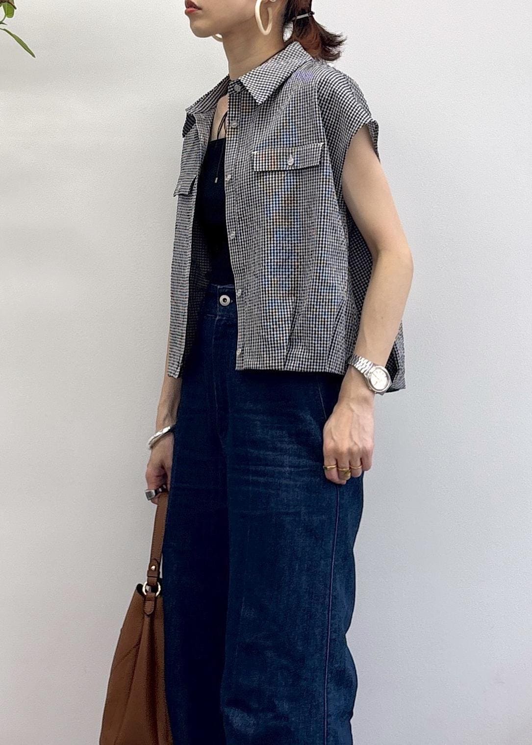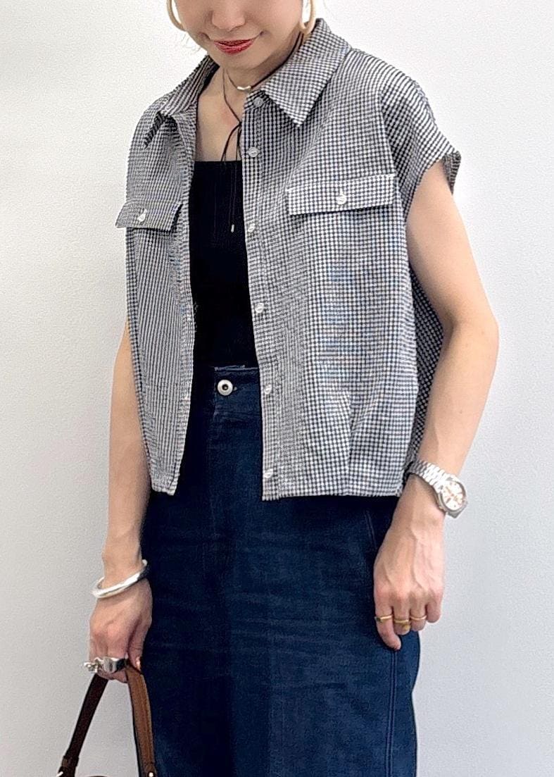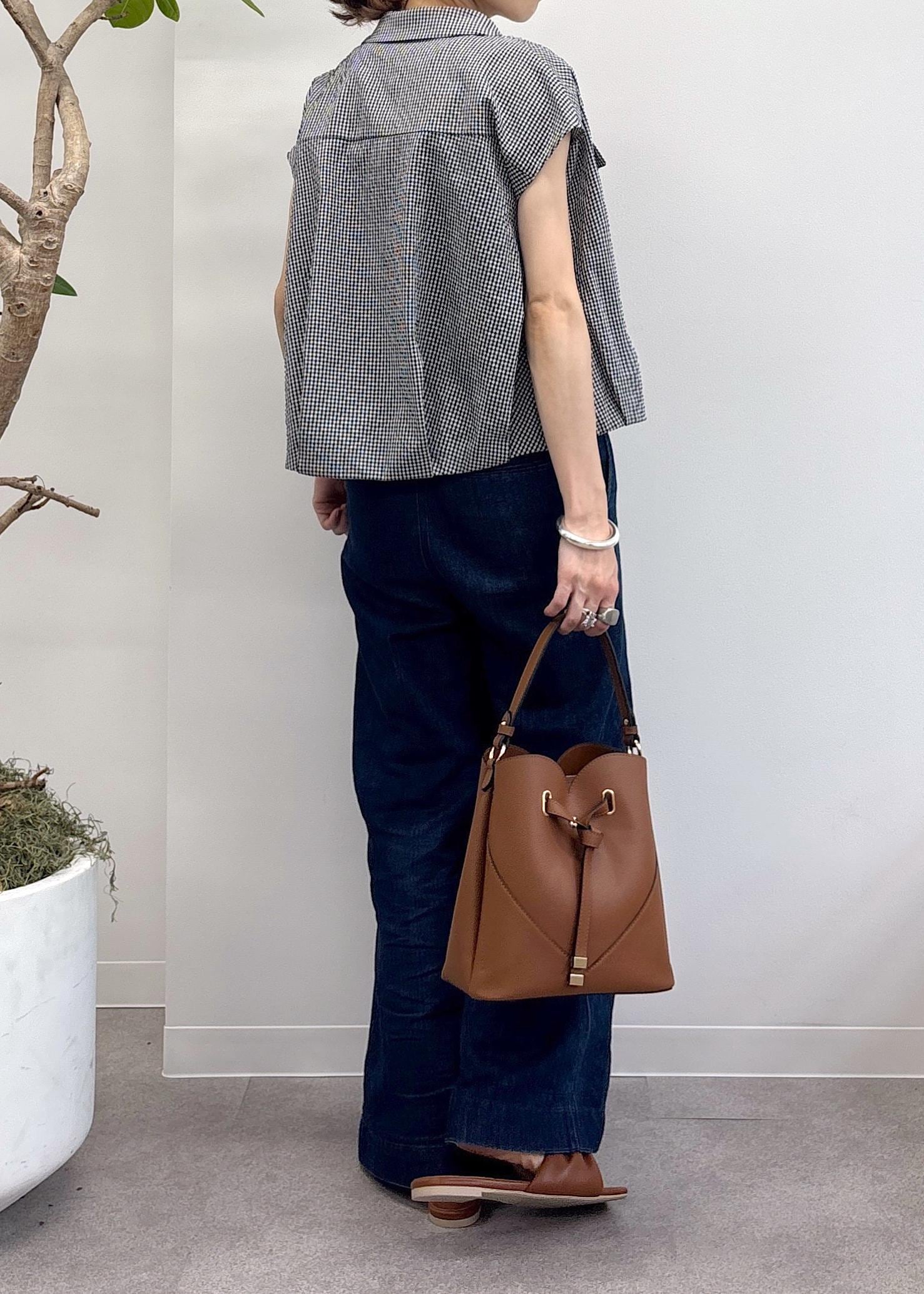 サラッとした、ドライタッチが嬉しいサッカーブラウス♪一枚でも、ボタンを外して羽織としても着回しができる優秀ブラウスです。今回はカジュアルにワイドデニムで羽織ったバージョン。小物はキャメルが好み◎夏に向けてオススメの大人カジュアルコーデ。