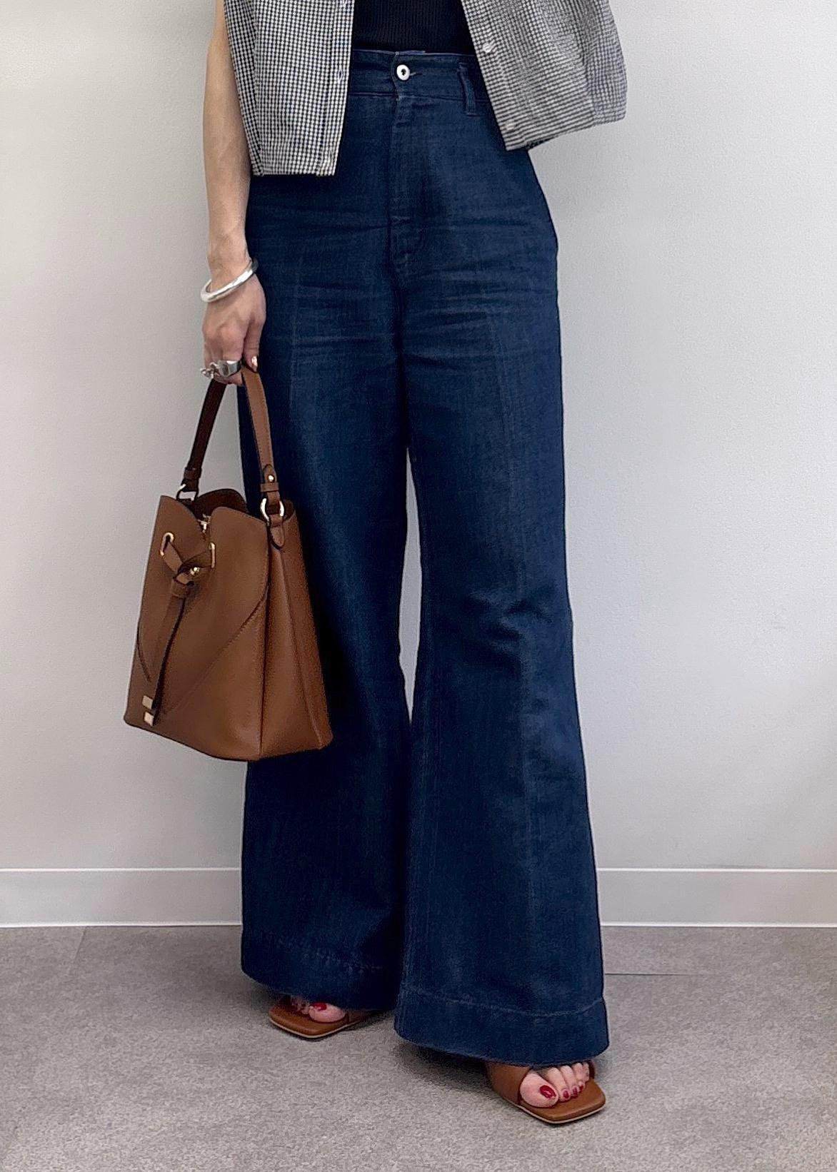 アウトレットVISグリッターワイドデニムパンツブルー系 / S¥5,339レビューキラキラグリッターのデザインが大人可愛いデニム♪柔らかなデニム素材を使用しているので、リラックスして着れます。定番のワイドパンツのシルエットですが、ラメを織り込んだデザインが気分を変えてくれるデニムです◎154cmでSサイズを着用、全体的にゆったりめ、着丈は足首が隠れる長さでした。