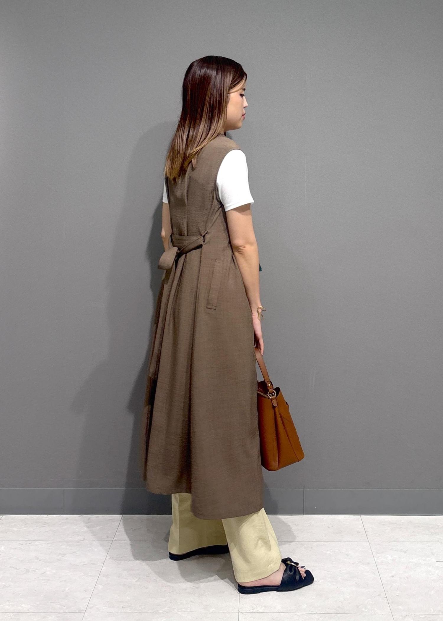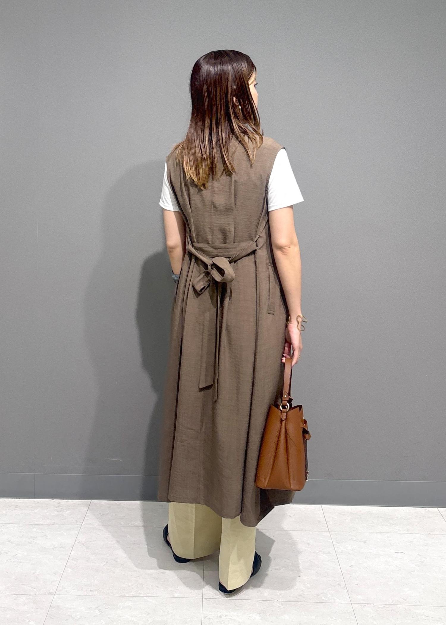 身長167cmで膝下10cmくらいと、短めなので高身長の方はジレとして着用するのがおすすめです。 -