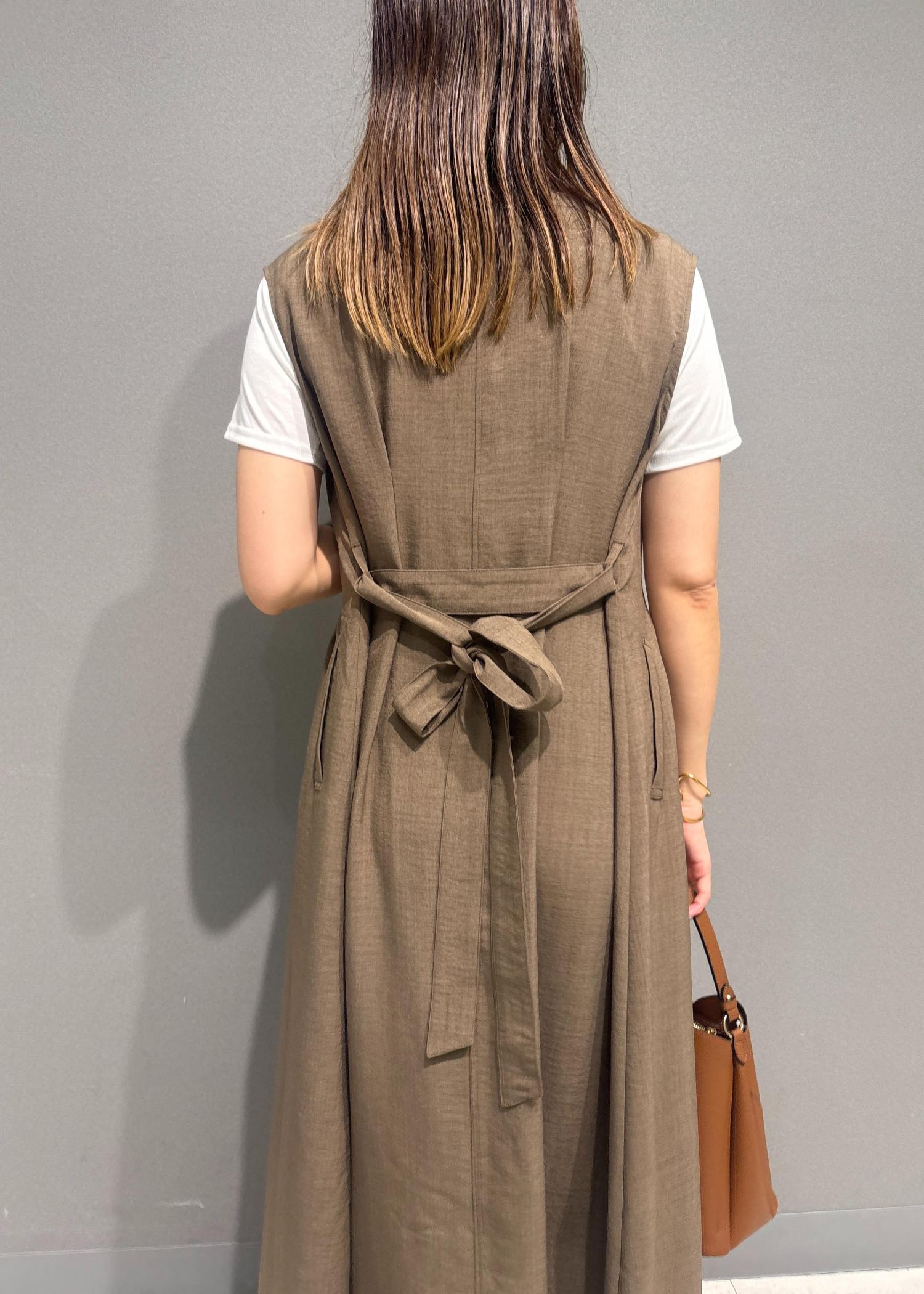 VIS【美easy】リネンライクジレワンピース【接触冷感/洗える】カーキ系 / F¥8,899レビューワンピとジレ2wayで着られるアイテム。