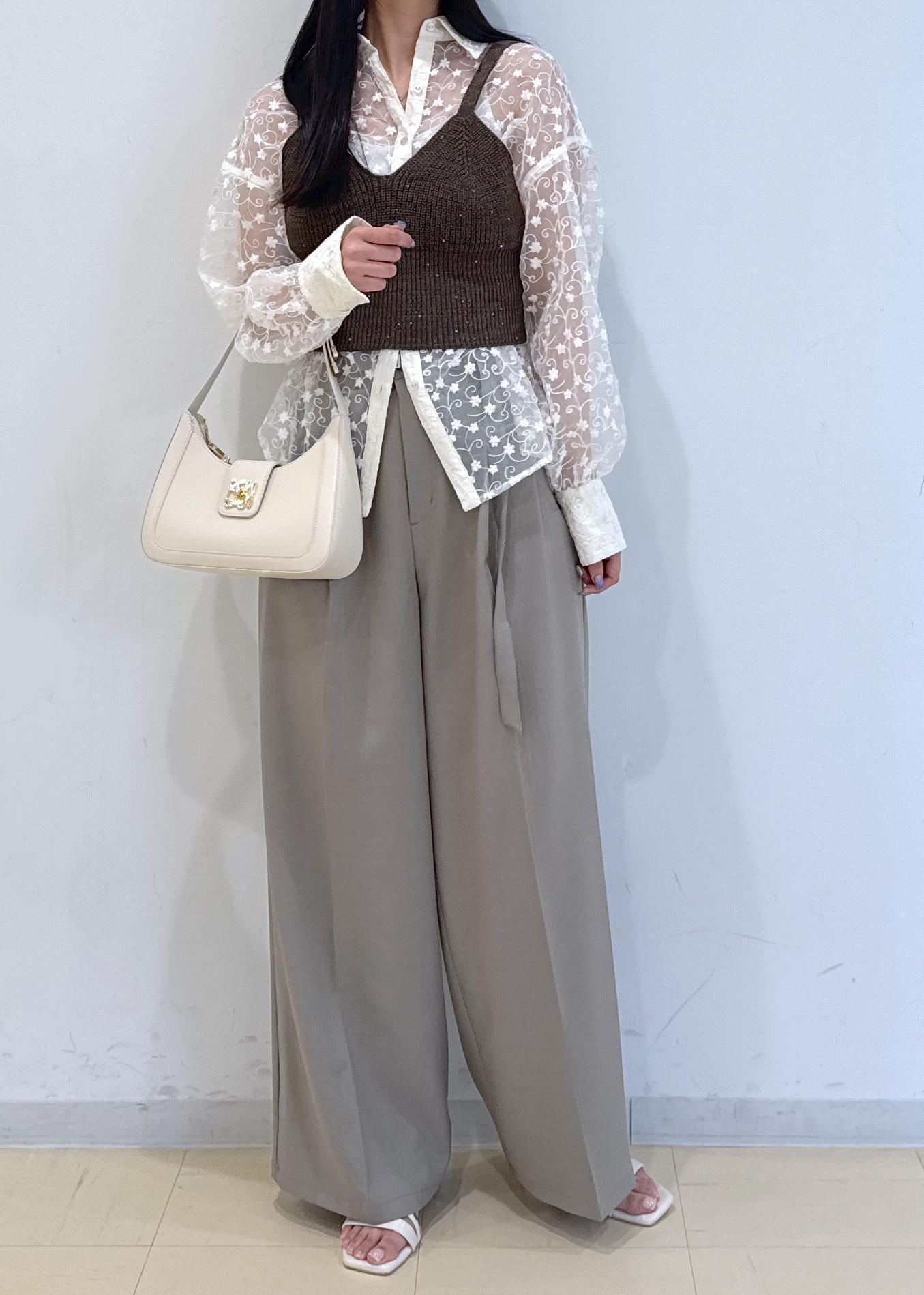 シャツ×パンツだけでも可愛いですが、ビスチェを付けるだけでオシャレ度が増します◎
