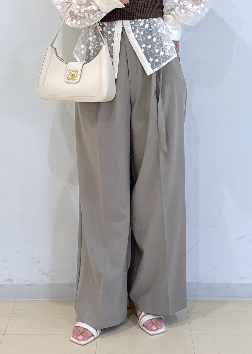 VIS【新色追加】【防シワ/接触冷感】ベルトディテールタックワイドスラックスパンツベージュ系 / M¥6,589レビュー下にストンと落ちる生地なので、足が真っ直ぐ見えます。更にハイウエストで、脚長効果もしっかり◎とにかく動きやすくて履きやすくてシルエットが綺麗な神パンツです。ハイウエストでインをすると、バランス調整が少し難しいので、コンパクトめなトップスと合わせることをオススメします
