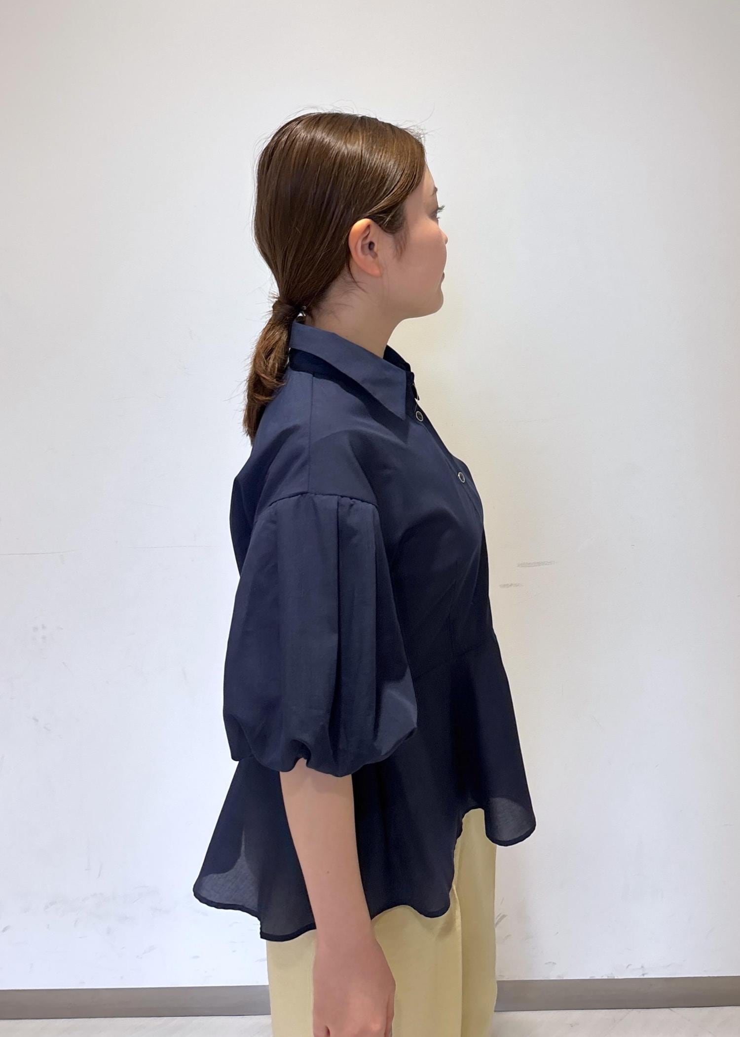 アウトレットVISバルーンスリーブペプラムシャツ/通勤対応ネイビー / F¥3,457レビュー身長150センチでお尻まるっと隠れる丈感。