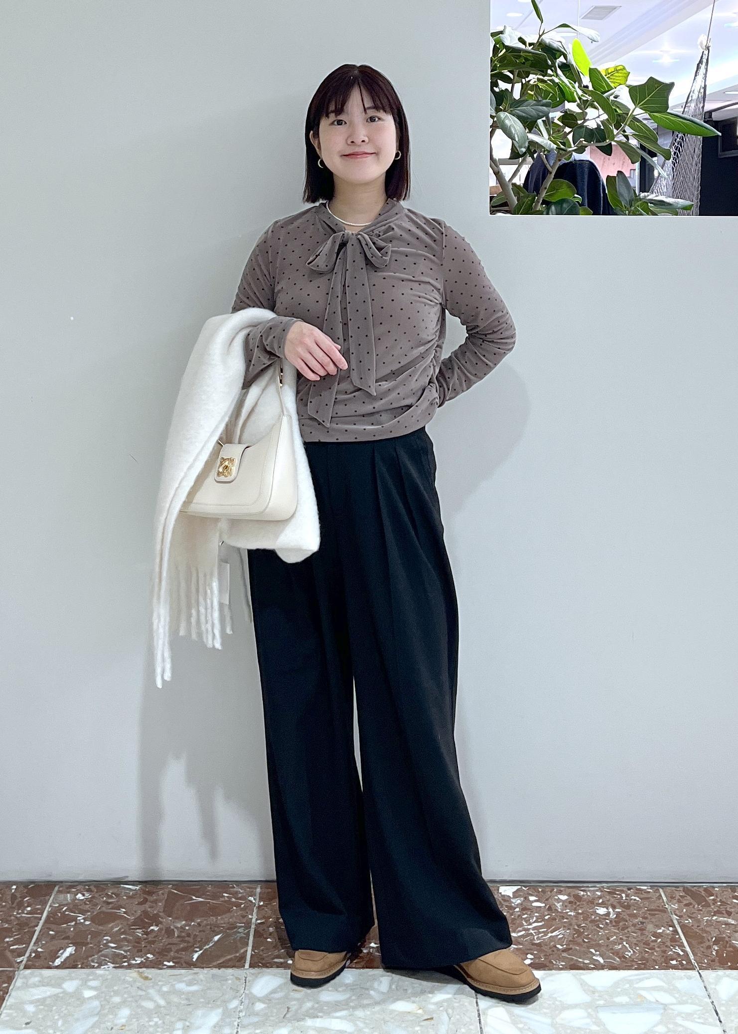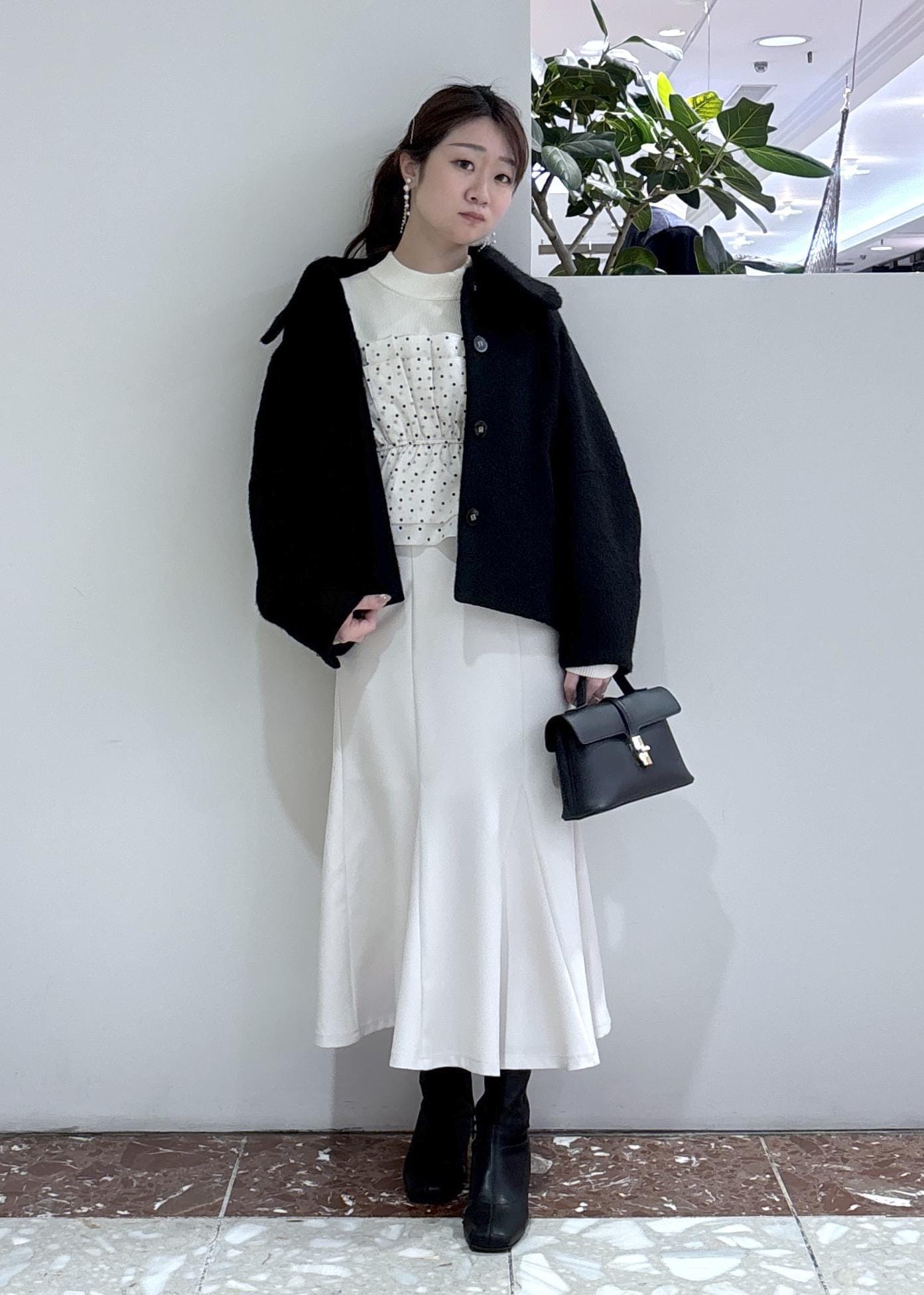 シルエットを拾いすぎないマーメイドラインで合わせやすいです◎ -