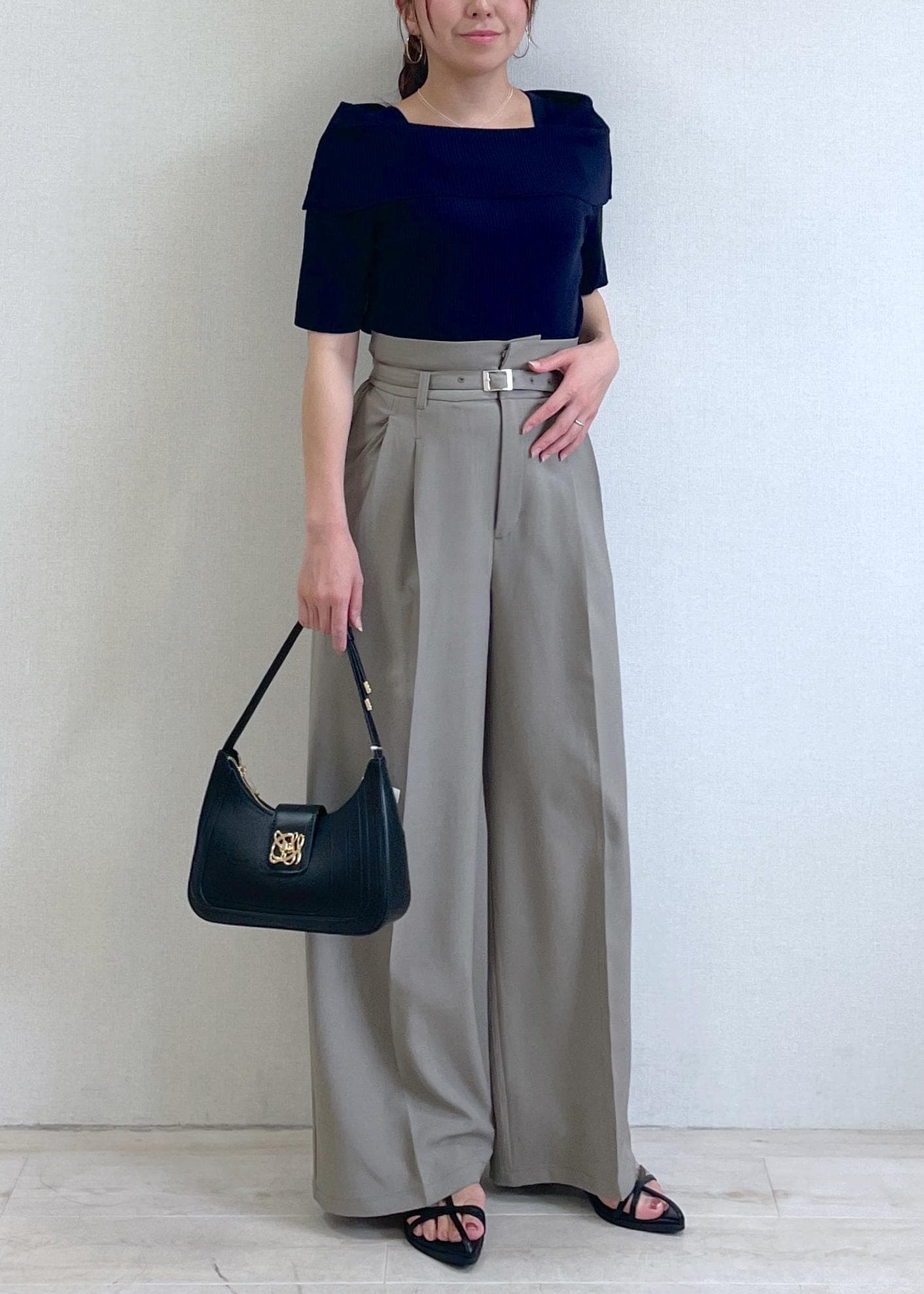 VIS【新色追加】【防シワ/接触冷感】ベルトディテールタックワイドスラックスパンツベージュ系 / S¥6,589レビュー150cmでSサイズ着用で、丈感はヒールを履いて下に着かないくらいです。