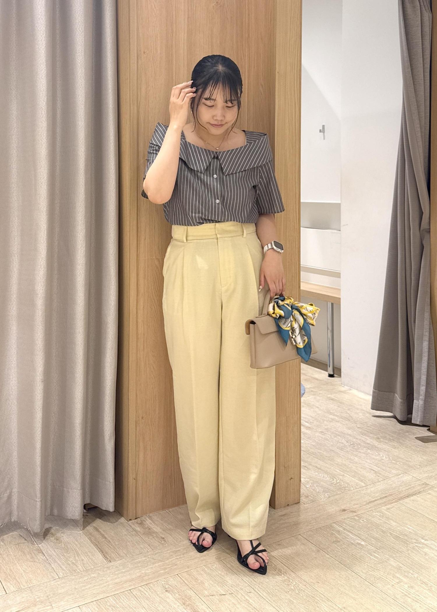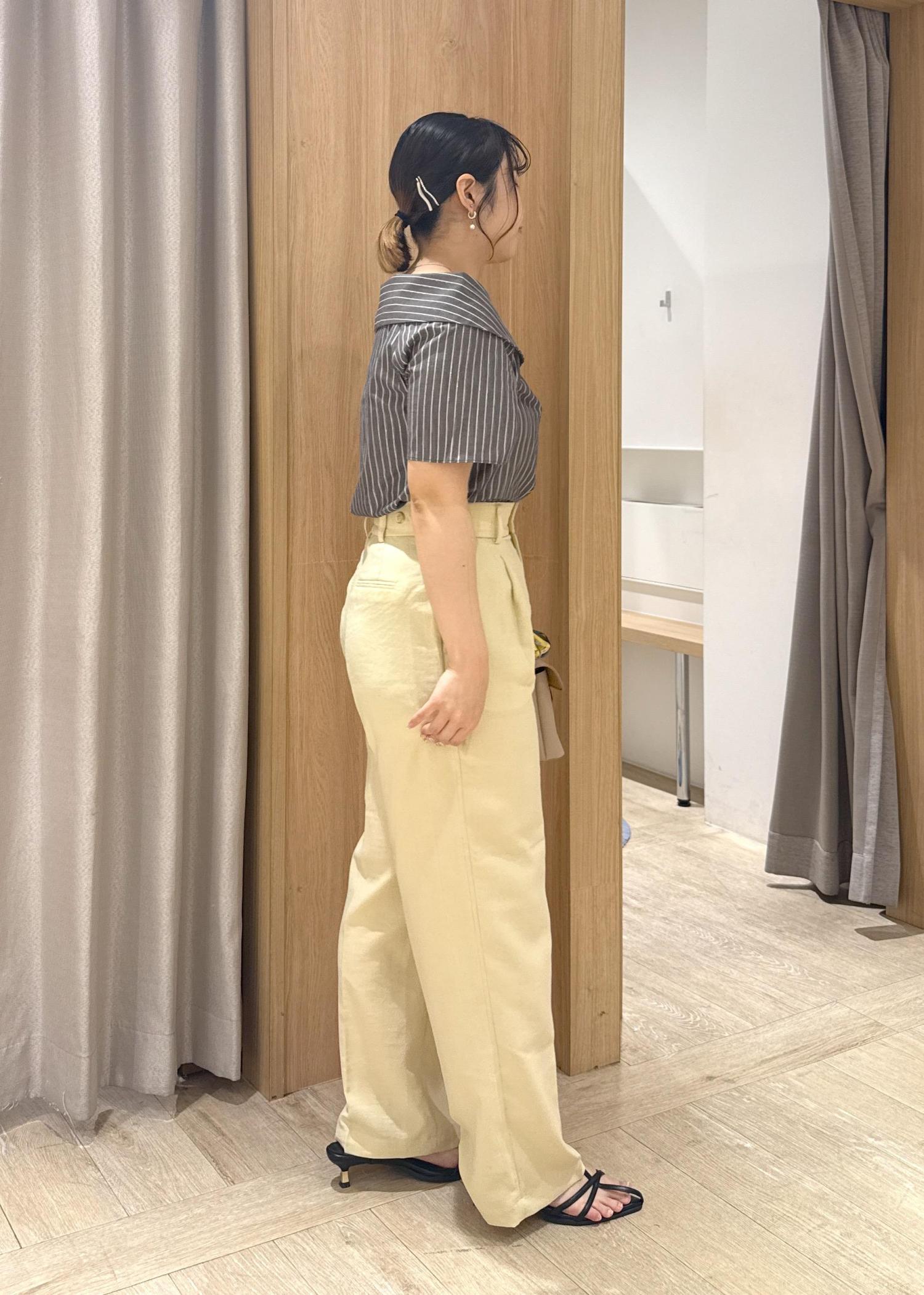 VIS【美easy】ワンタックワイドスラックスパンツ/洗えるイエロー系 / M¥5,489レビュー153cmの私ですが、Mサイズで床にギリギリつかないくらいの長さでした。