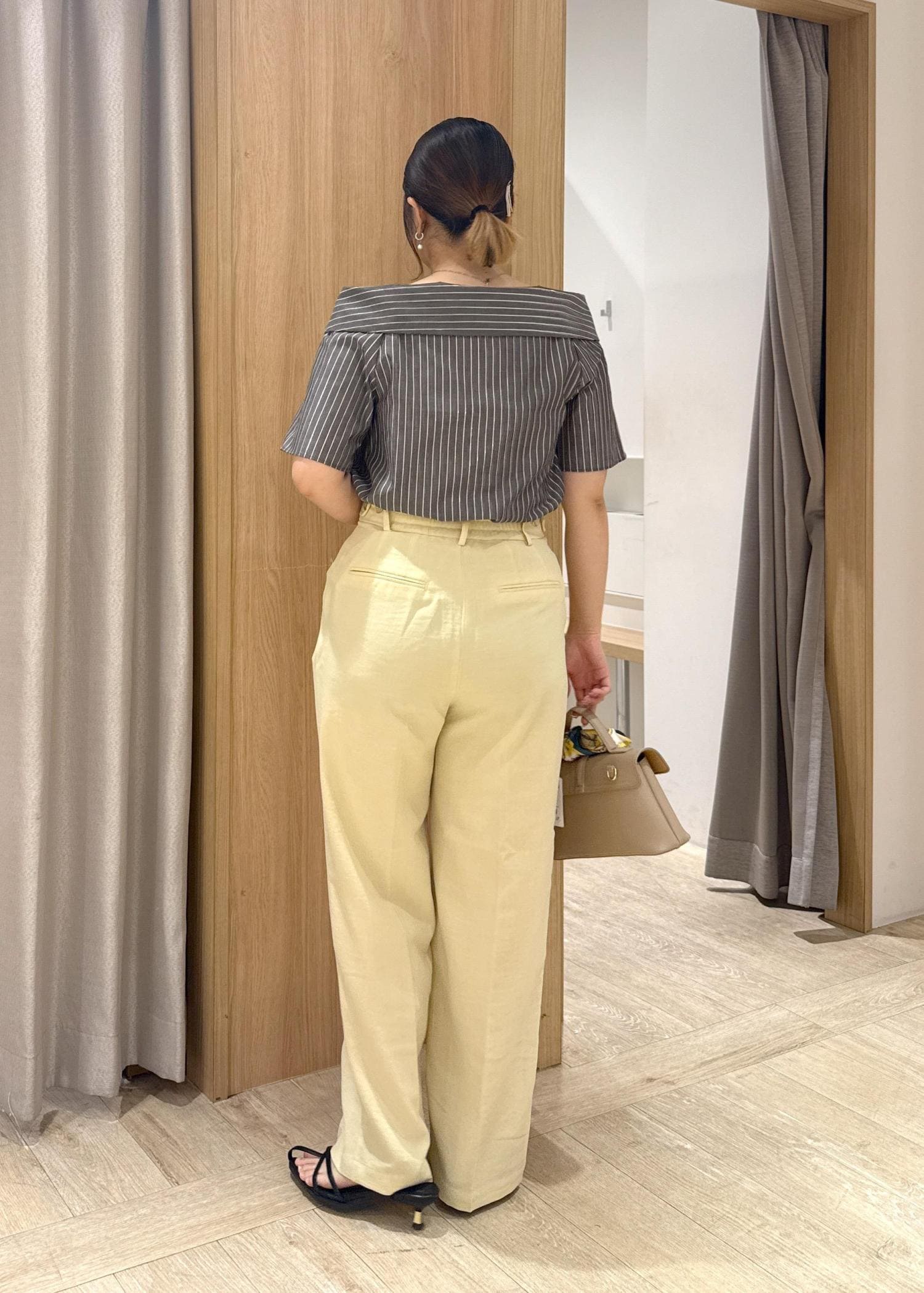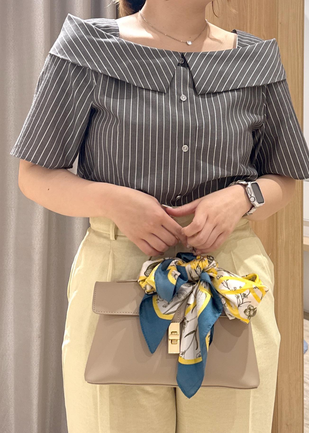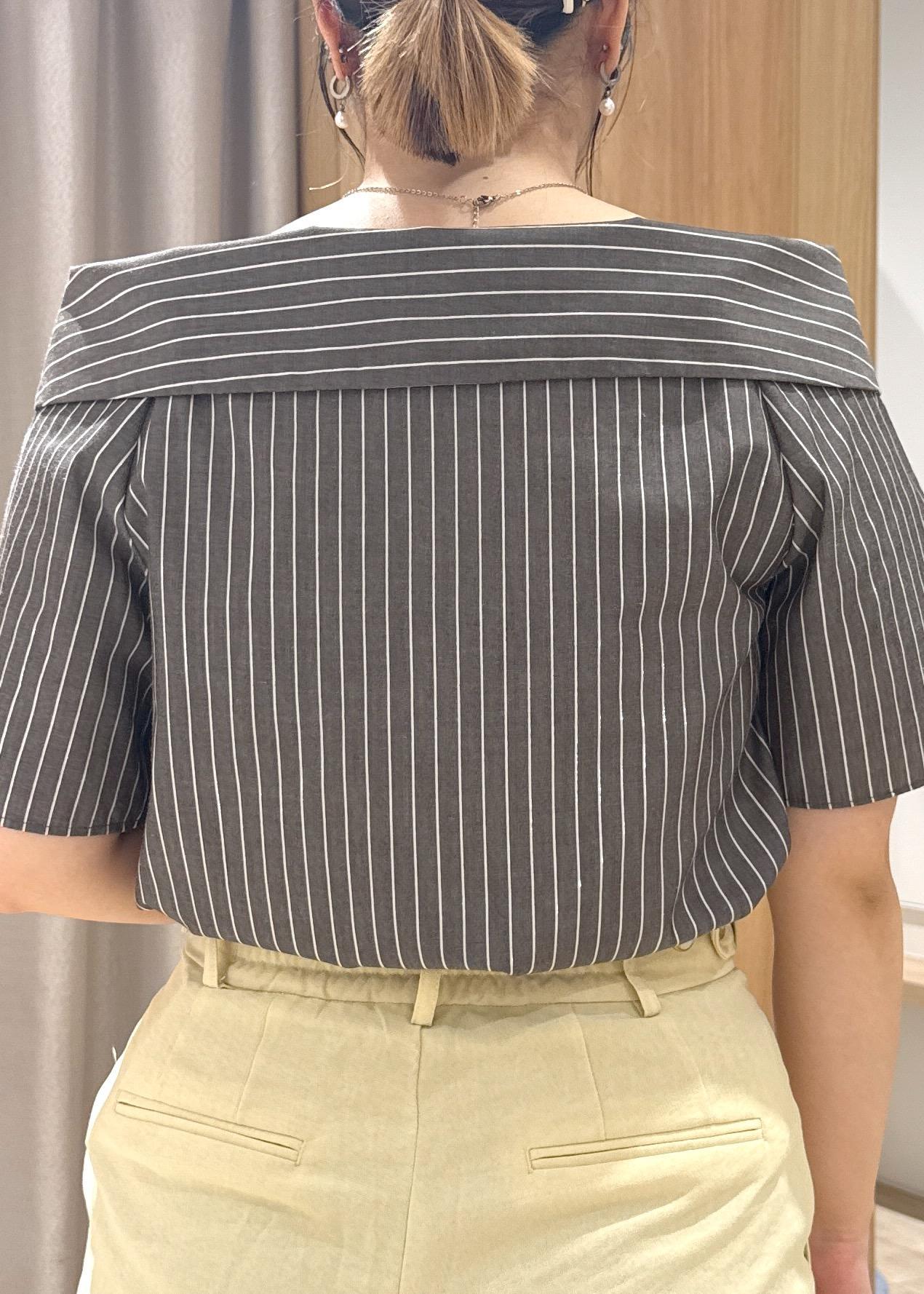 VIS【新色追加】【防シワ】ラメミックスオフショルダー風ストライプシャツダークブラウン系 / F¥5,489レビュー骨格ストレートでオフショルが苦手な私でも華奢見えするブラウスです!