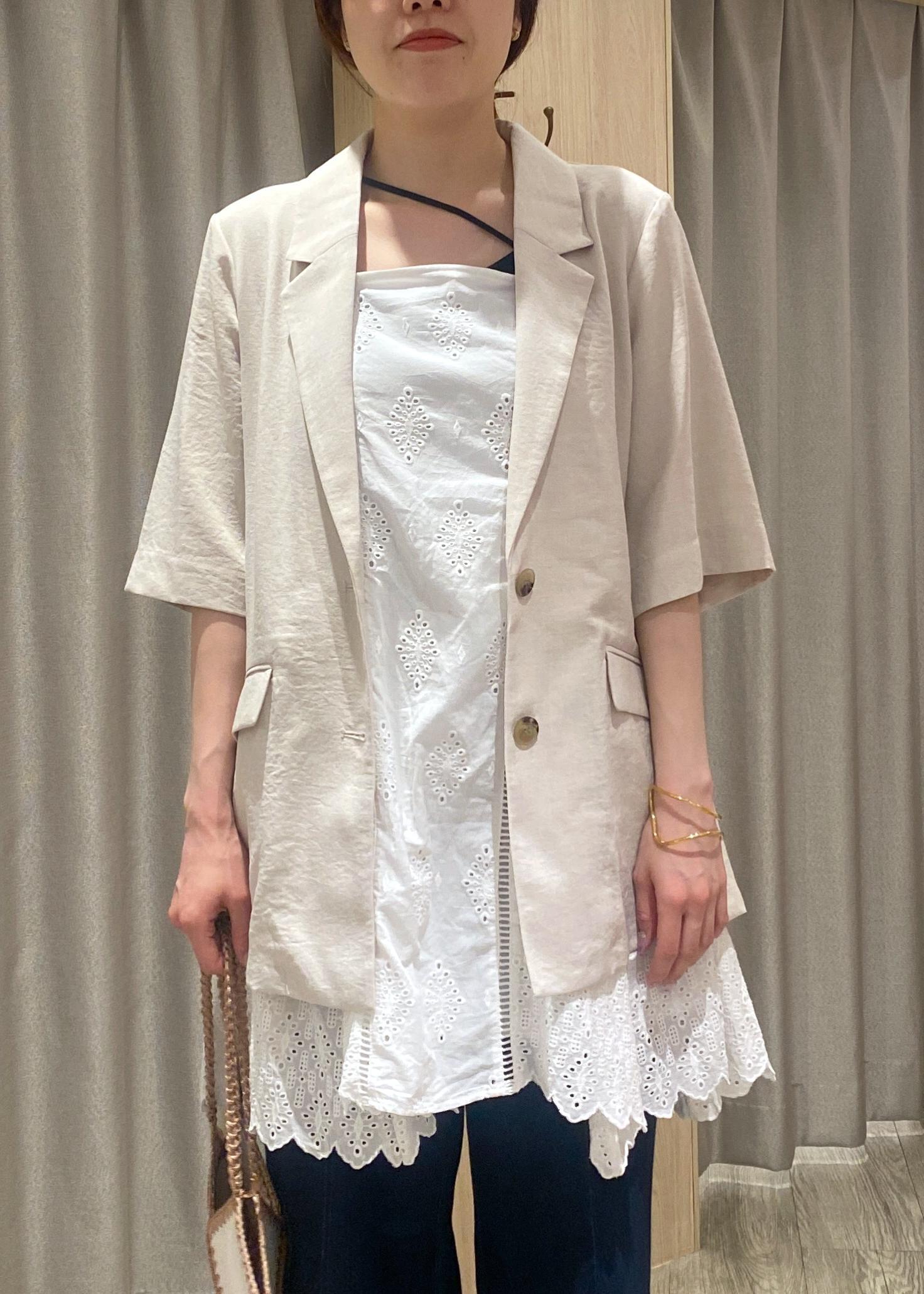 VIS【美easy】ハーフスリーブジャケット/セットアップ対応・洗えるキナリ / M¥7,909レビュー161cm/Mサイズ着用。