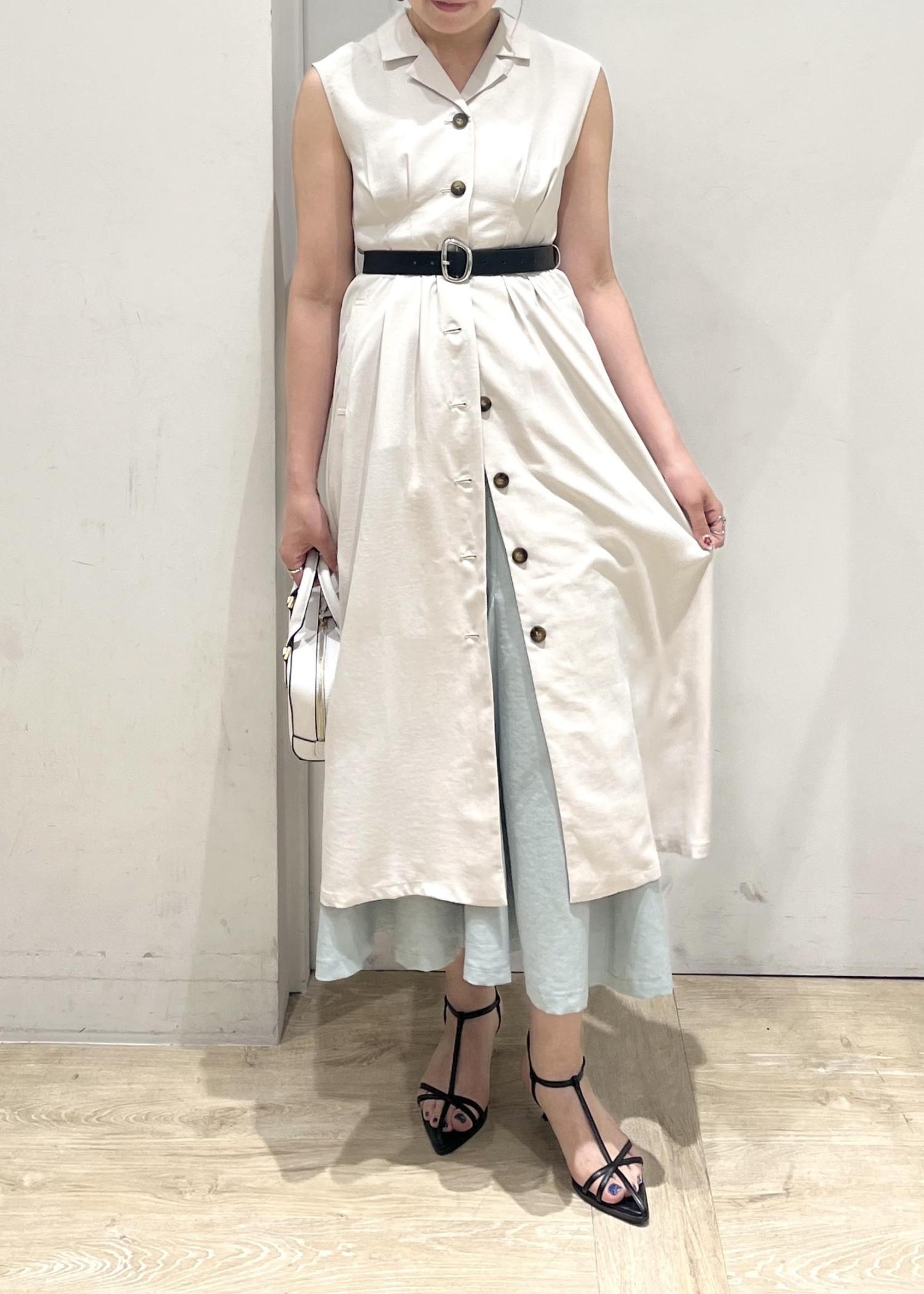 さらっと着れるのはもちろん、ジレにもなる万能ワンピです!!マーメイドスカートのNEWカラー、ミントグリーンを合わせて〜こなれ感あるお出かけスタイル☺︎