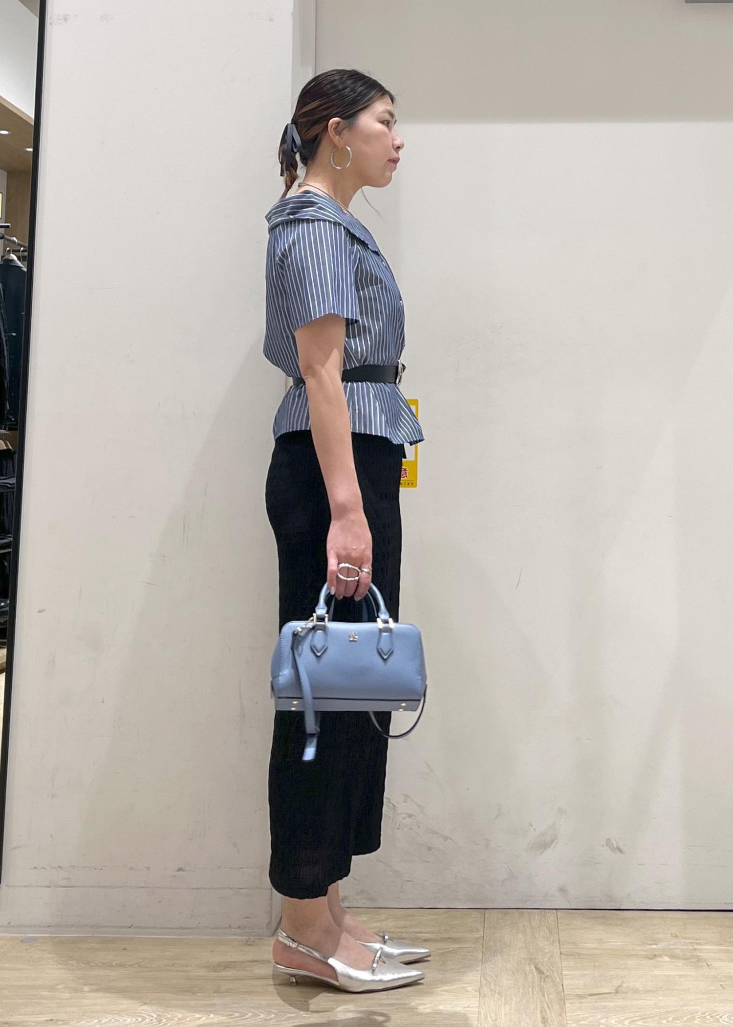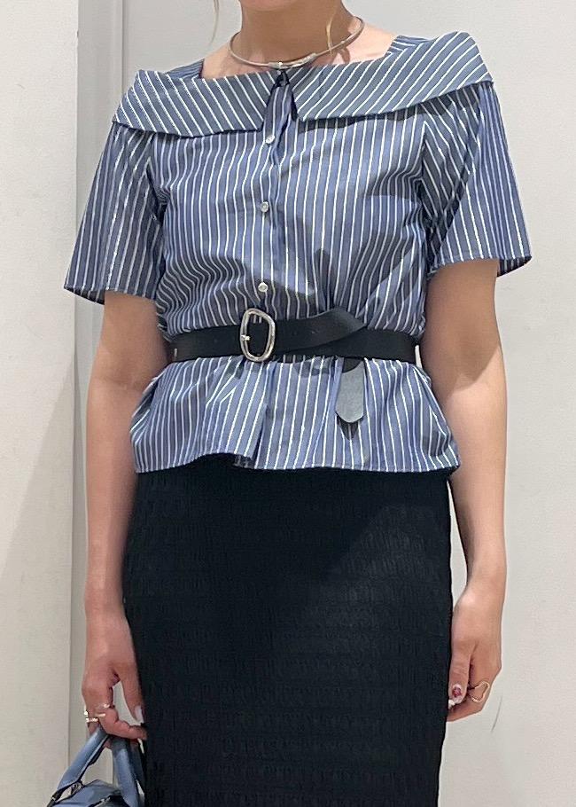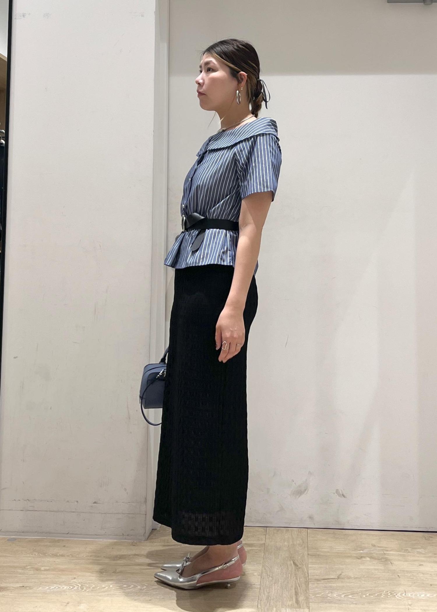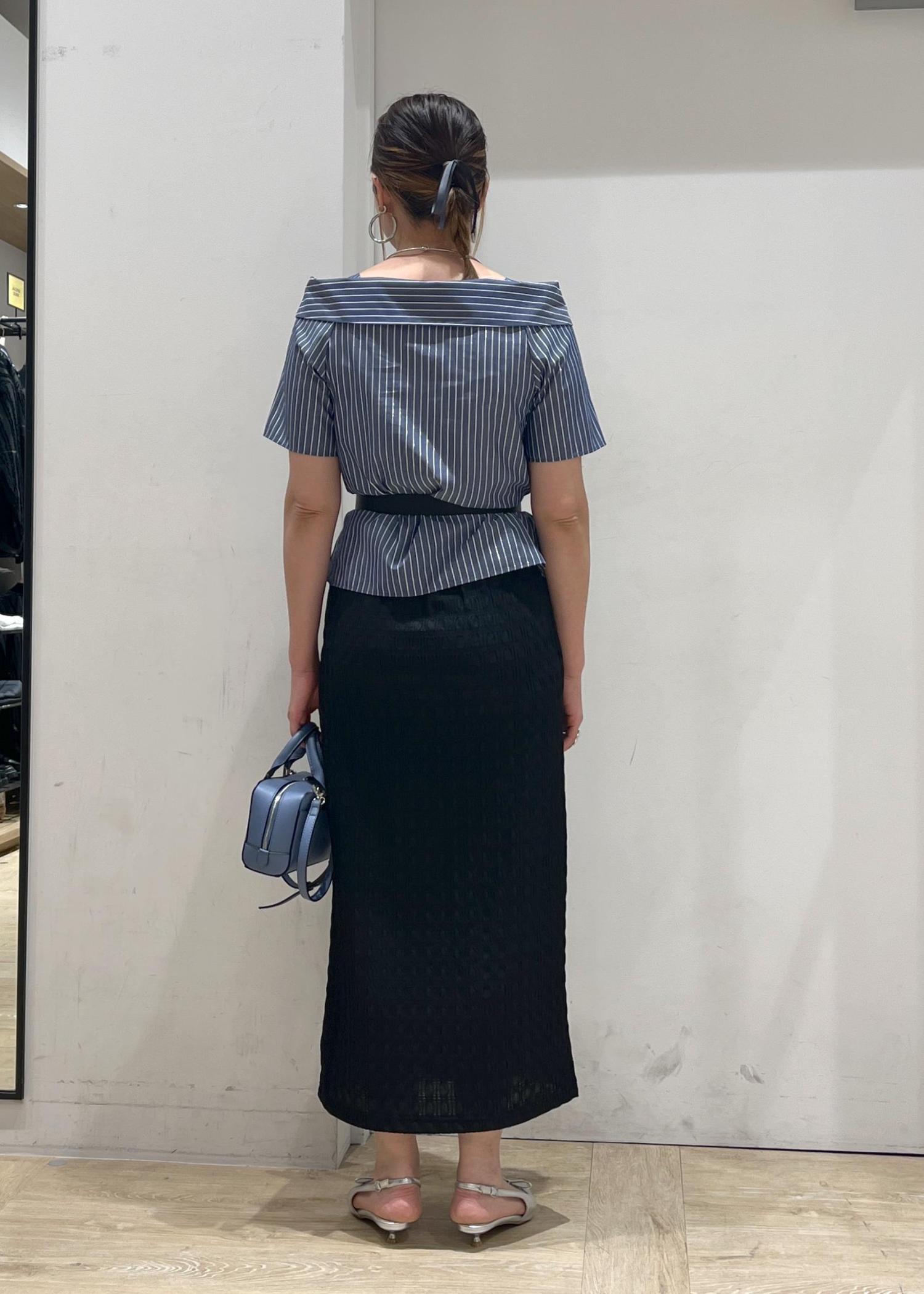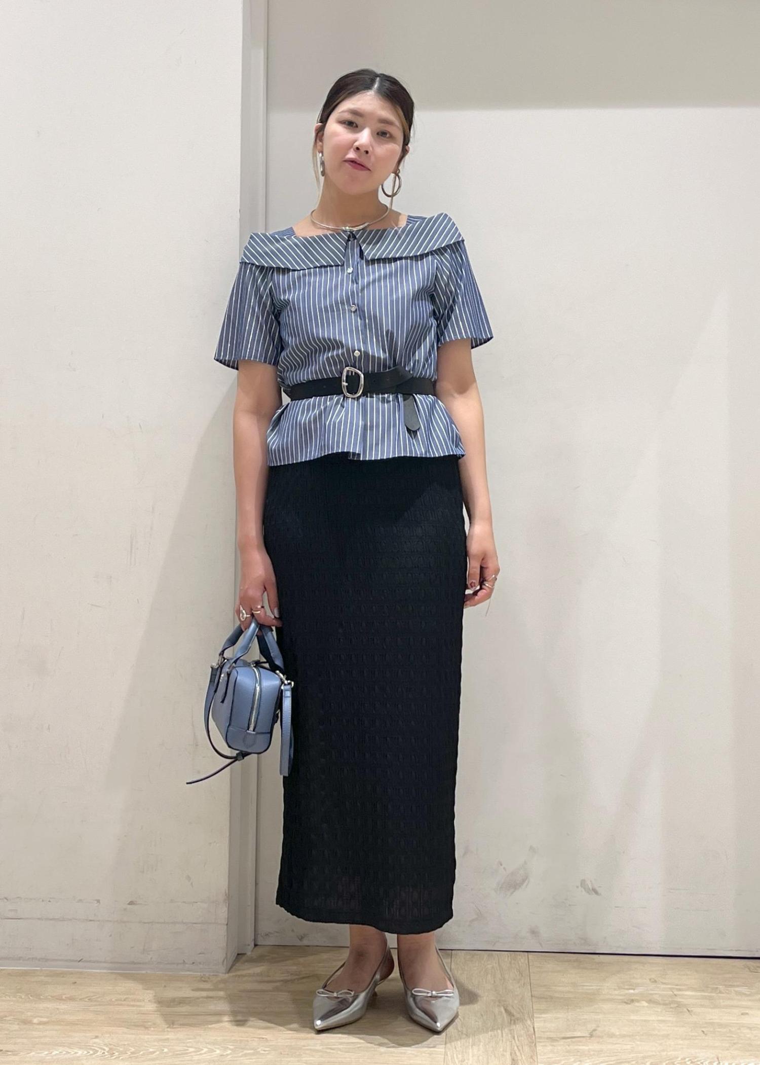 ストライプなのでフェミニンになり過ぎずず大人っぽくも着れる。Iラインスカートあわせでスッキリシルエット!