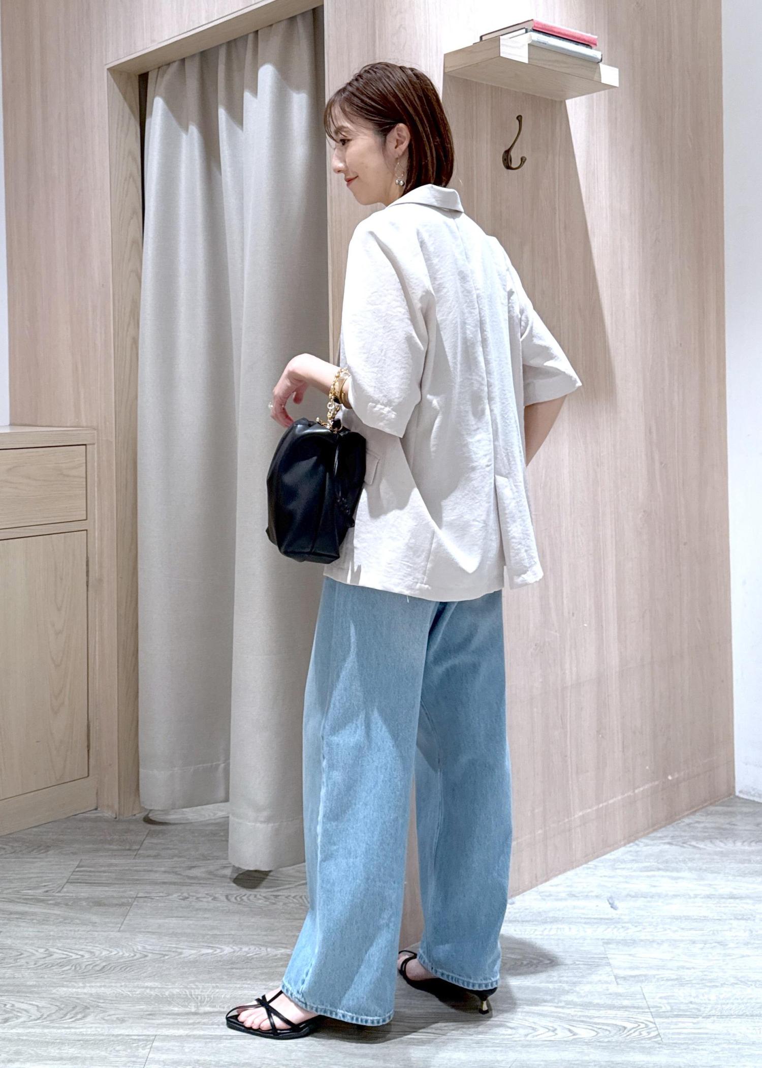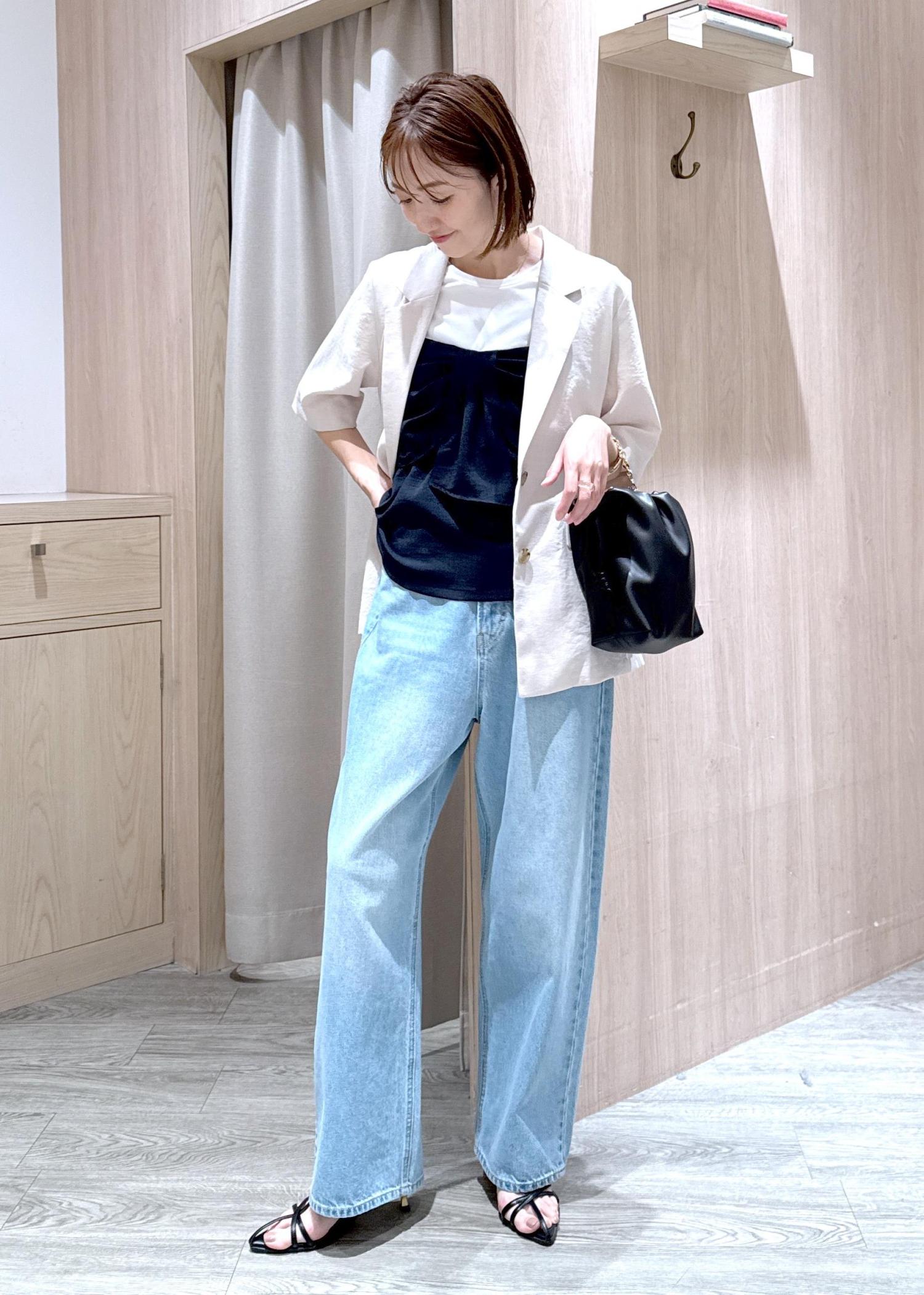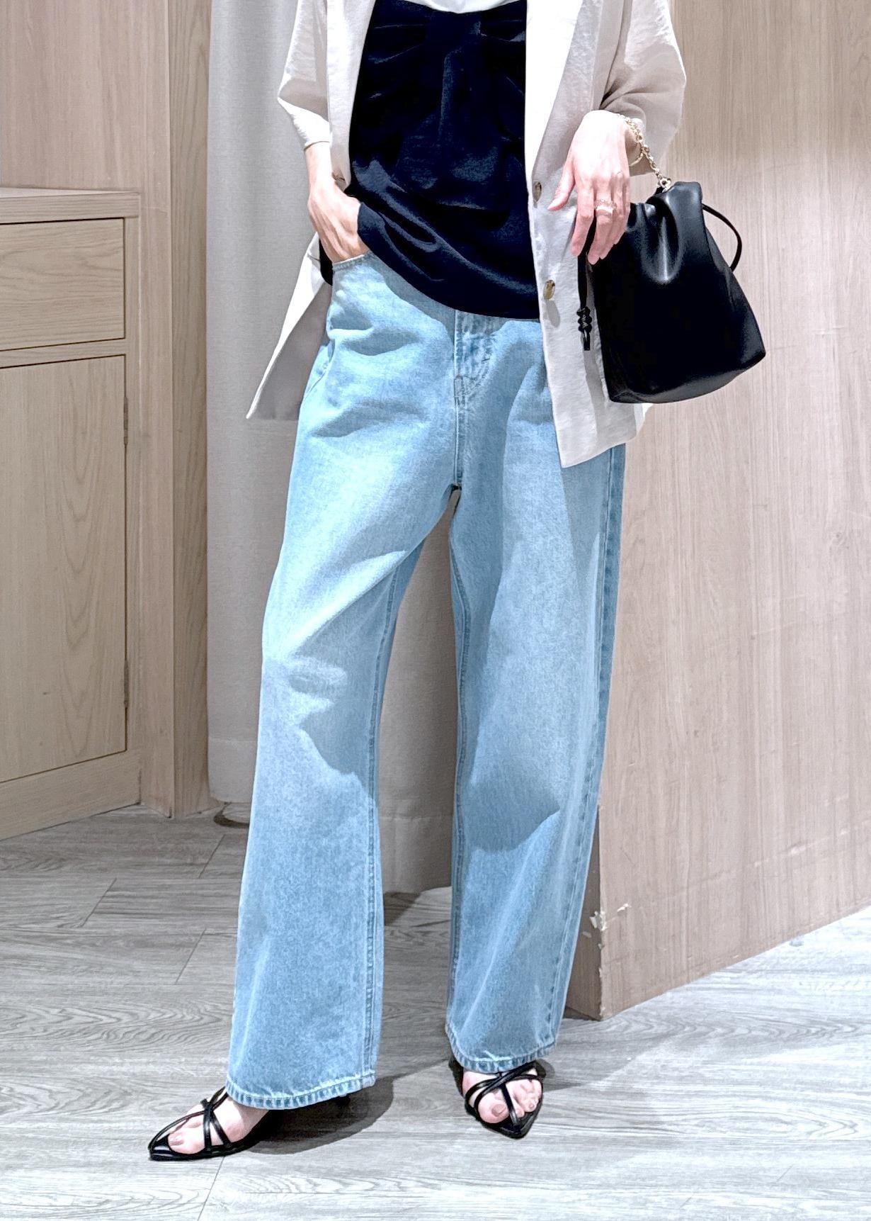 裾に向かって少し細くなっているワイドデニムでシルエットがオシャレです。