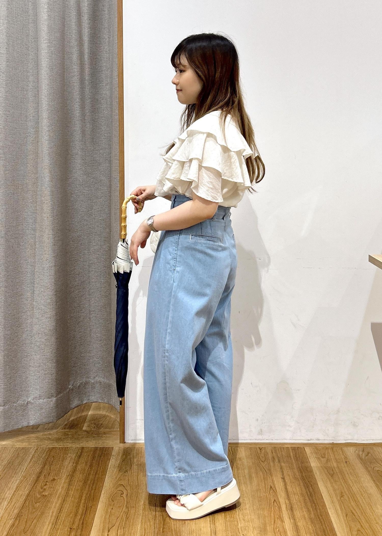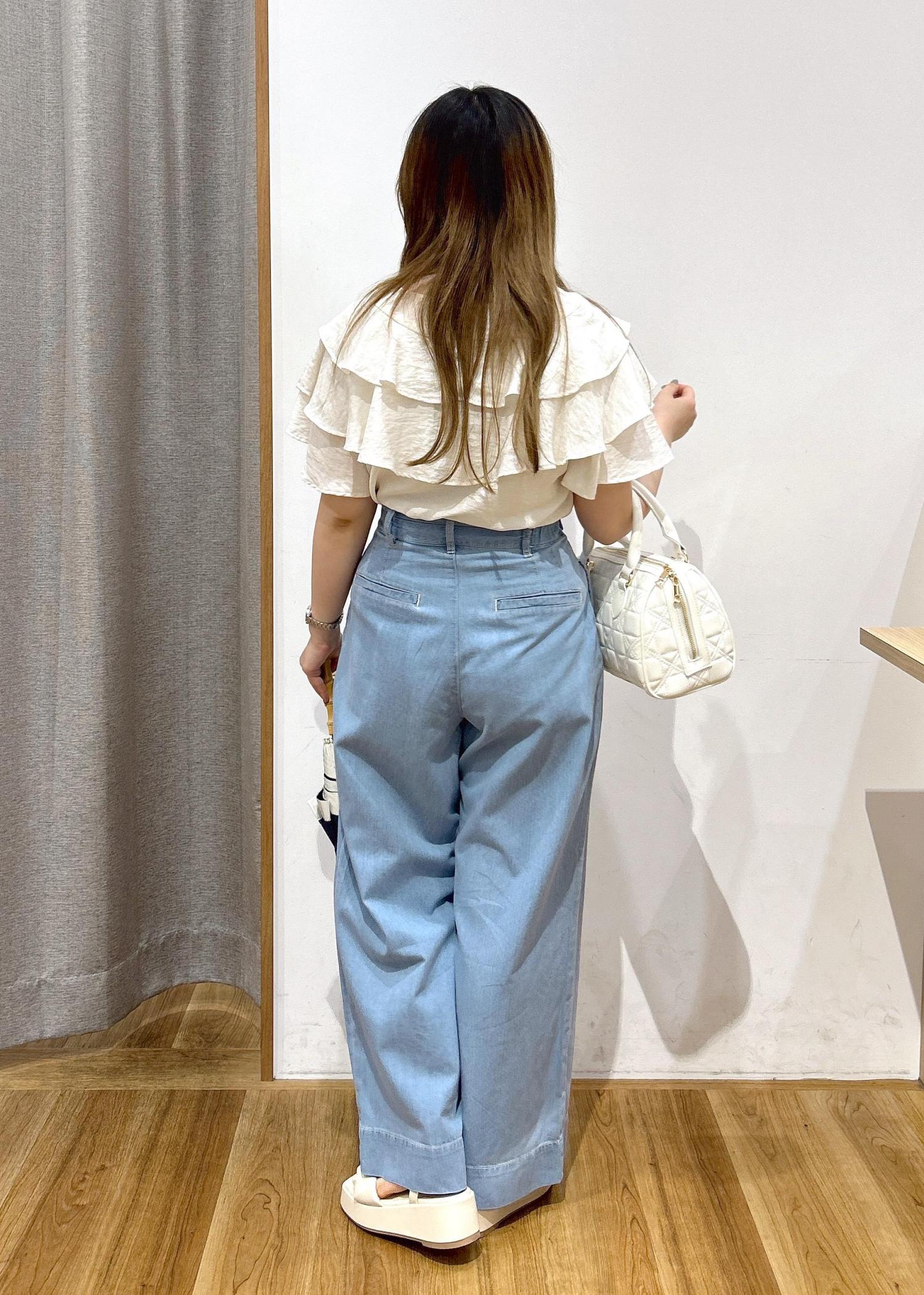 ゆるっとしたシルエットなので、トップスはキュッと身体を引きしめてくれるアイテムを合わせると低身長の方でも組み合わせやすいと思います、