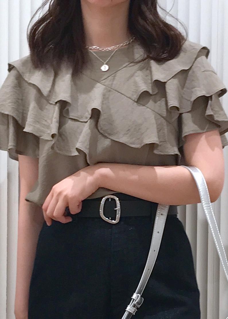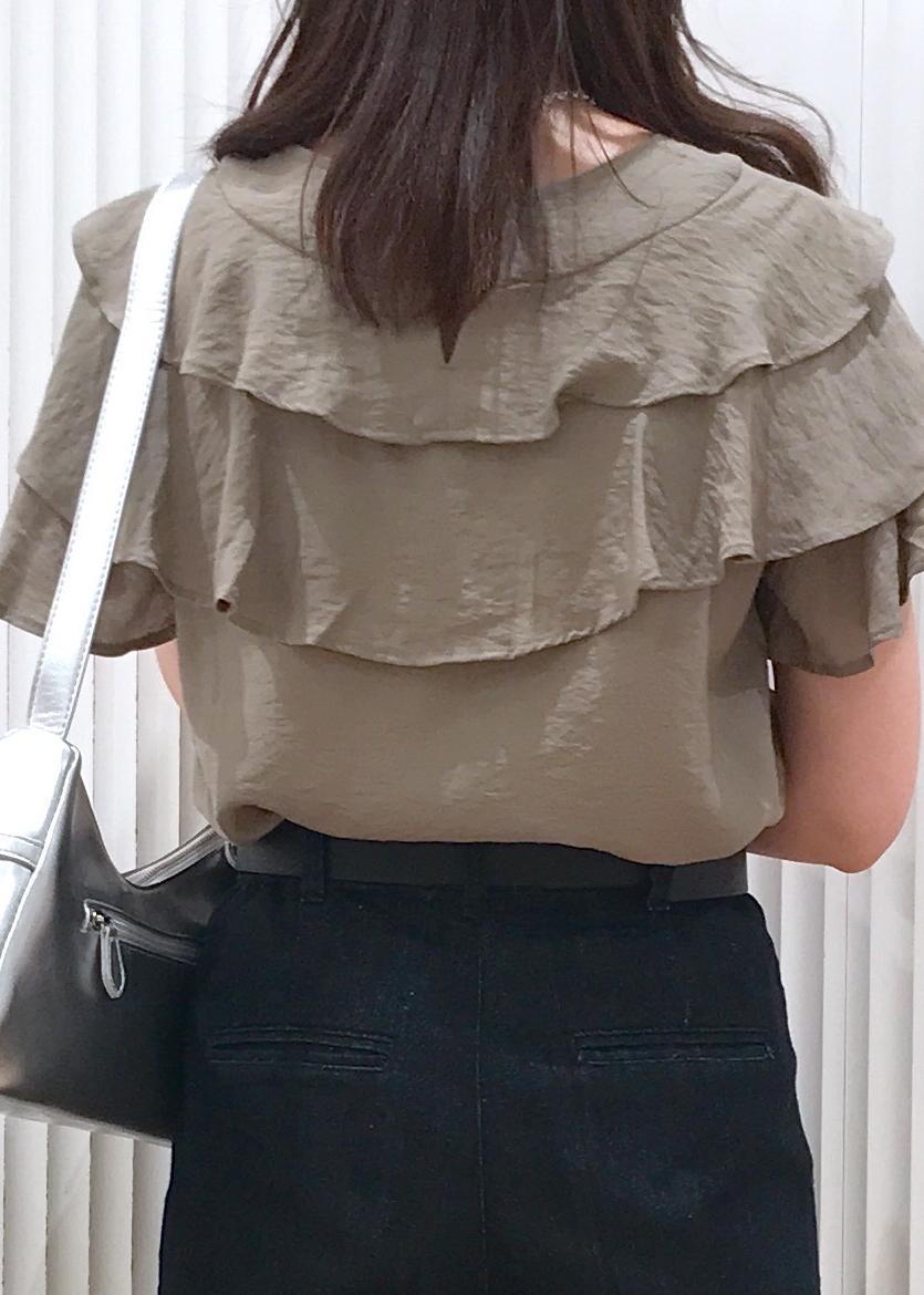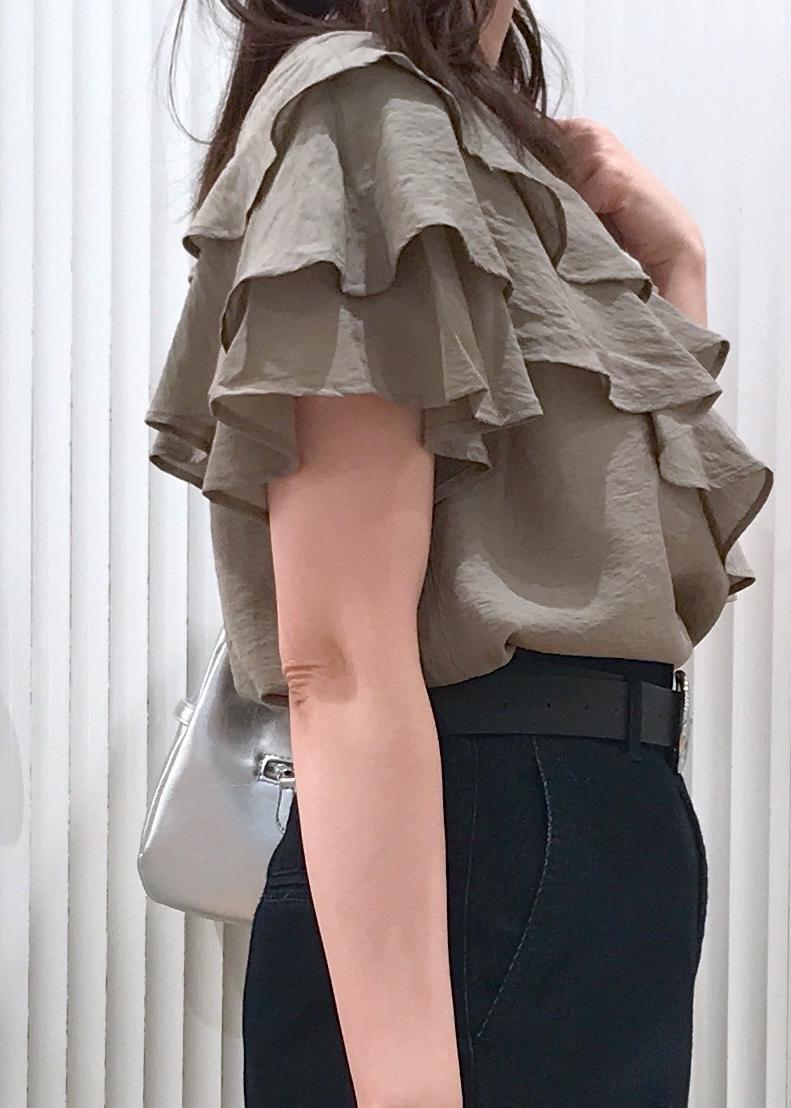 アウトレットVISフリルティアードブラウスカーキ / F¥4,391レビュー私の身長で腰にかかる着丈感です。