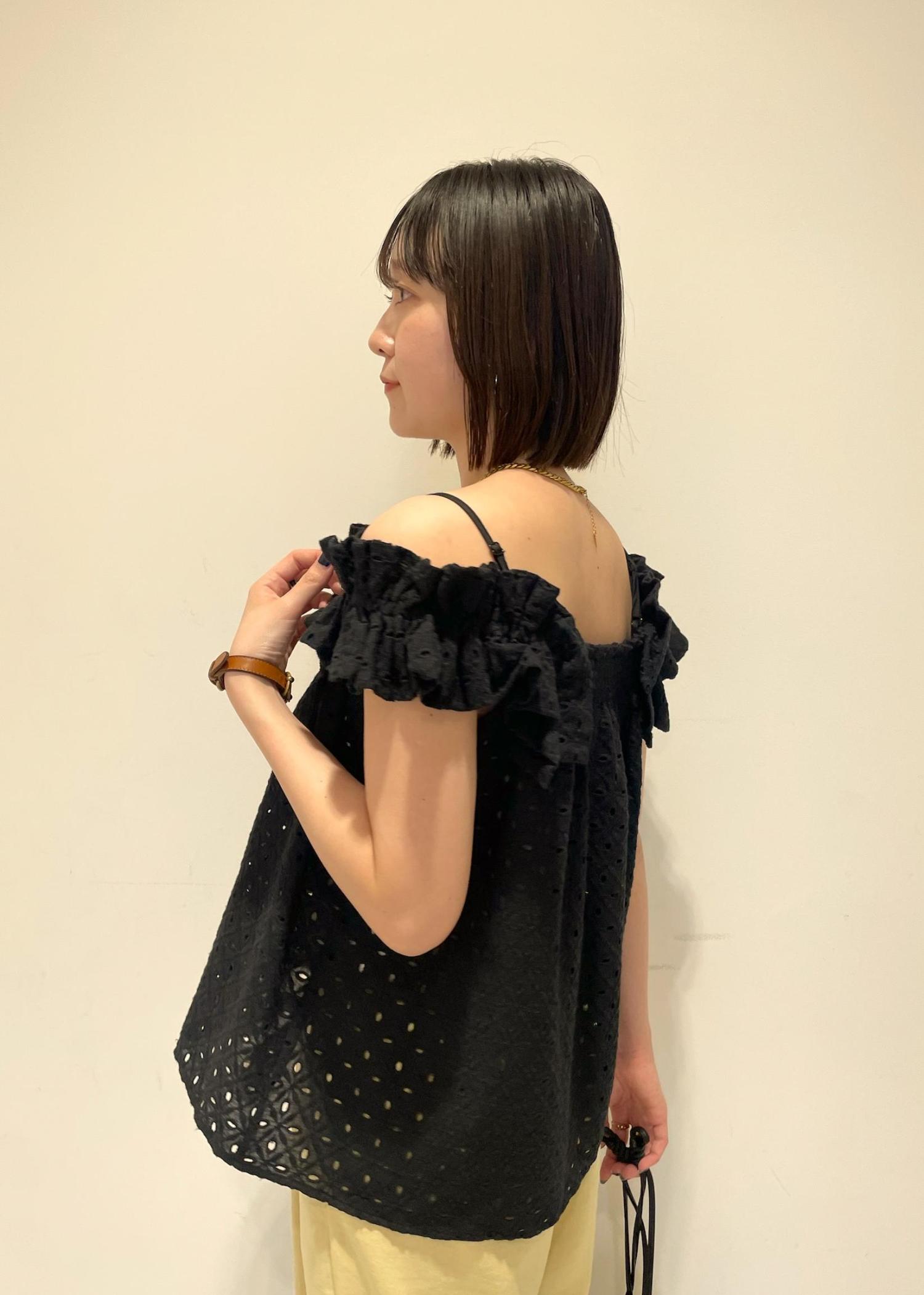 アウトレットVIS【2WAY】エンブロイダリーレースショルダーブラウスブラック / F¥3,953レビュー2way仕様の大人可愛いブラウス❤︎肩紐部分が太めなので、どっちで着ても気になる二の腕をカバーできます!身長159cmでヒップにかかる着丈なので、アウトスタイルもインスタイルも決まります◎