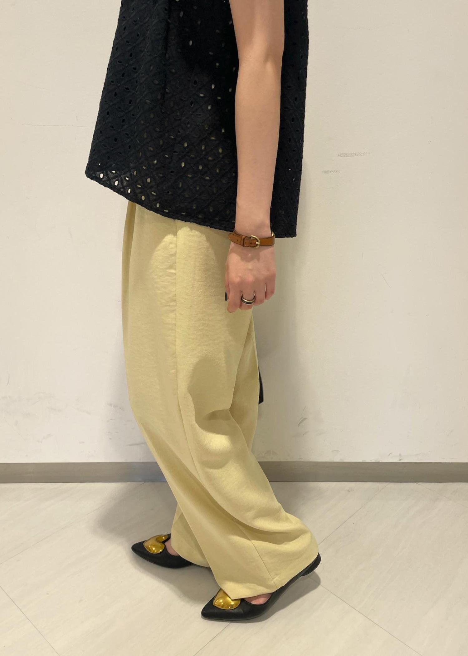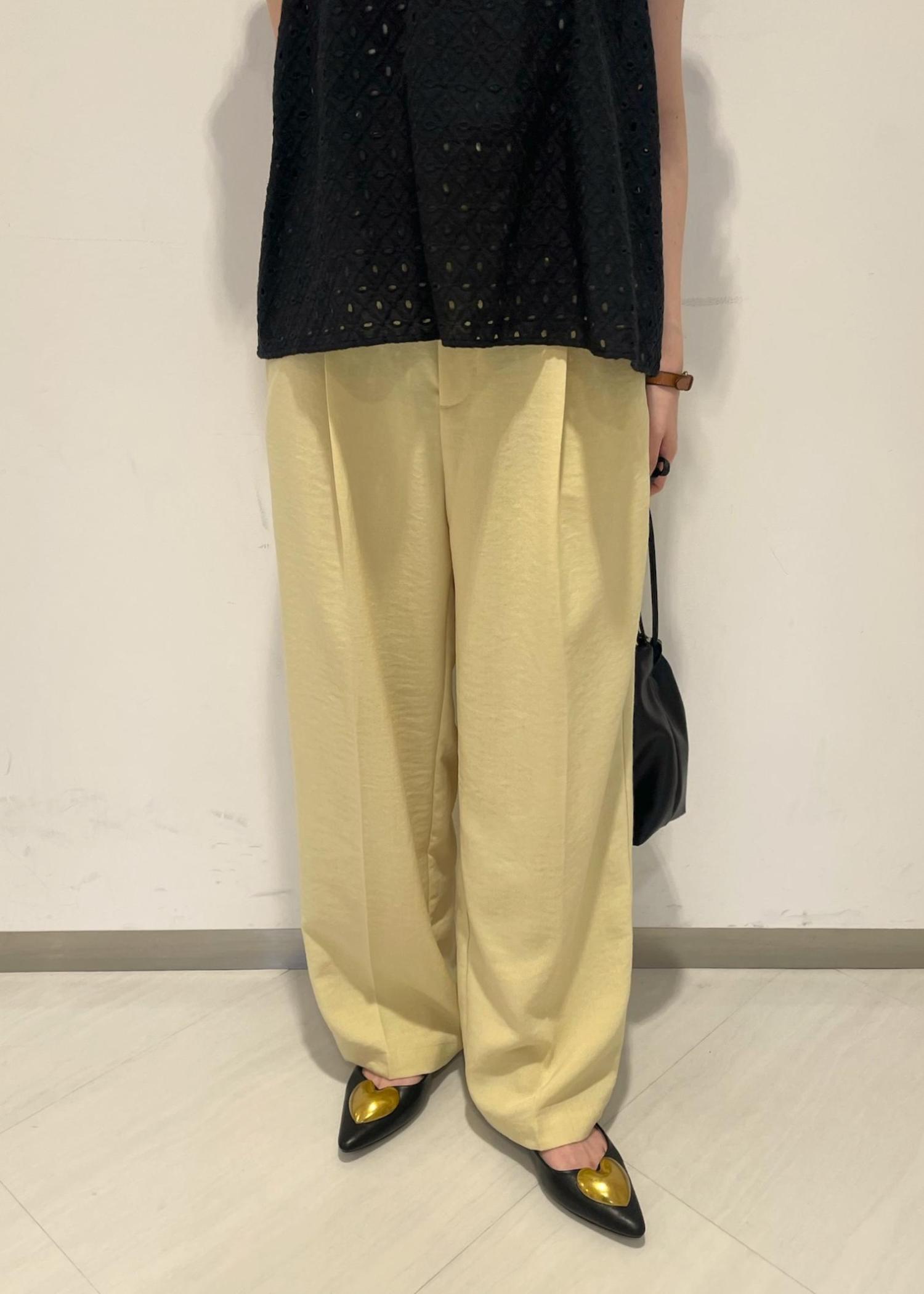 VIS【美easy】ワンタックワイドスラックスパンツ/洗えるイエロー系 / L¥5,489レビュー身長159cm/Lサイズ着用、長めの丈感で履きたかったのであえてワンサイズ上にしました!ウエストは調節で締めると◎タック入りなのでシルエットは綺麗なまま履けました!