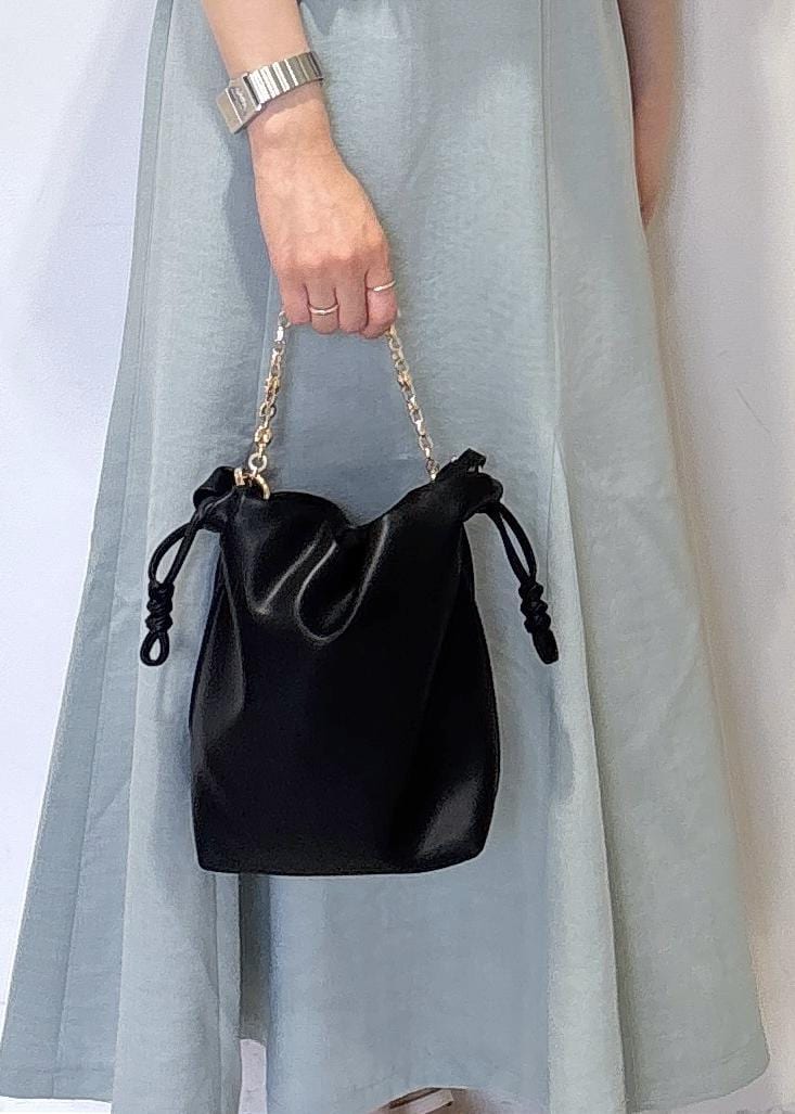 アウトレットVISチェーンハンドル2WAY巾着バッグブラック / F¥3,460レビューチェーンハンドルが目を引く巾着バッグ。