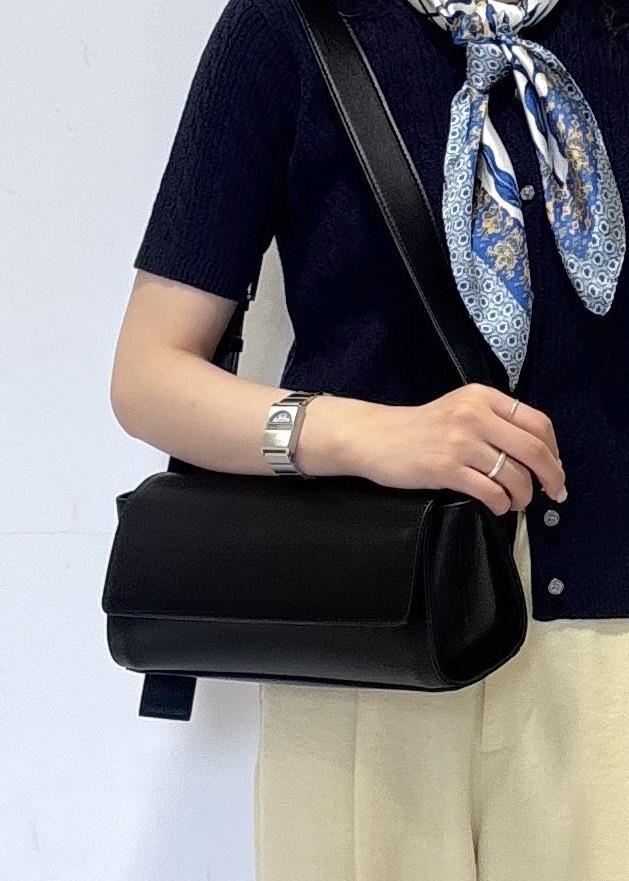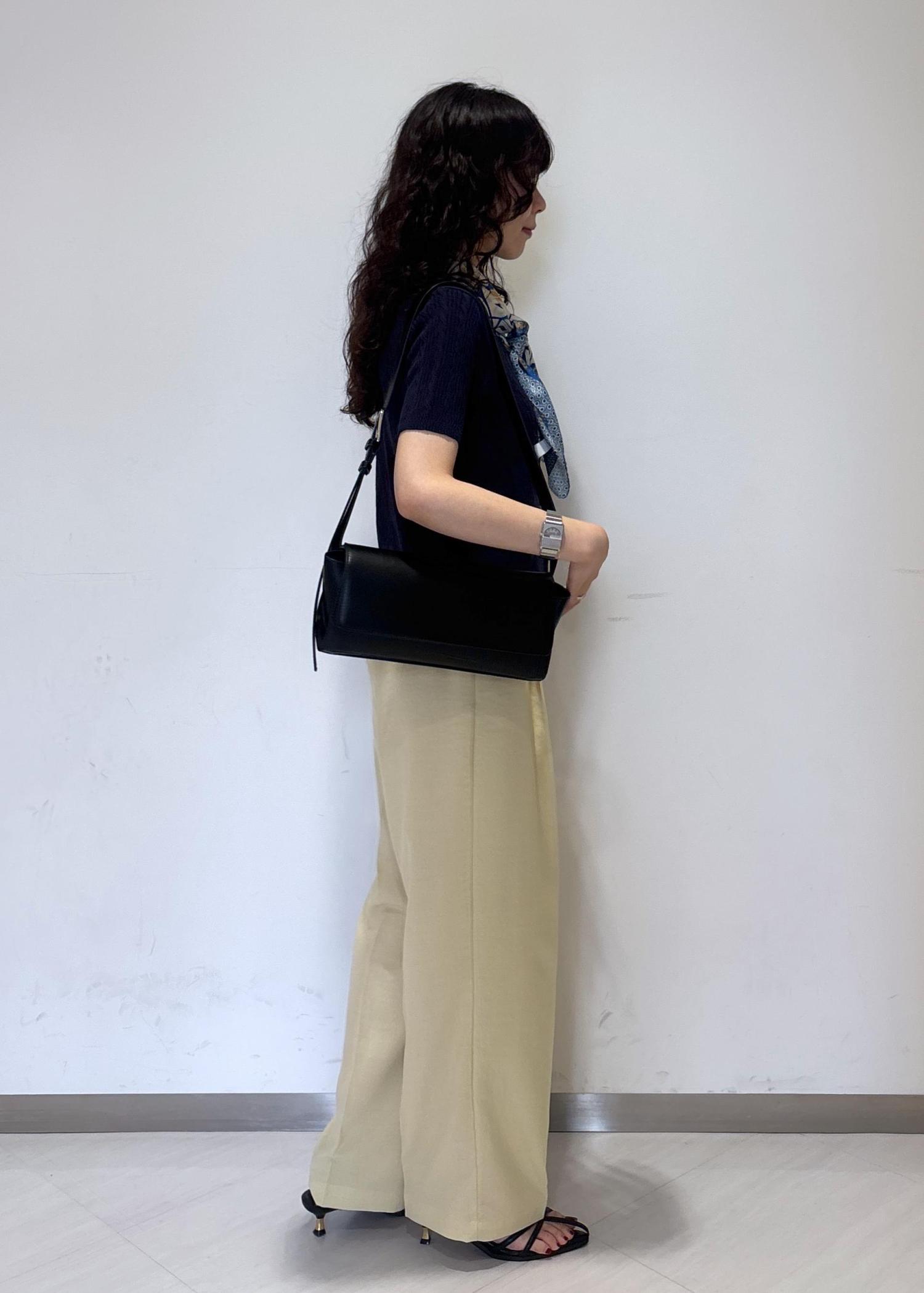 スタイリッシュな見た目ですが、マチはしっかりあるのでペットボトルやお財布などが入る収納力でした◎