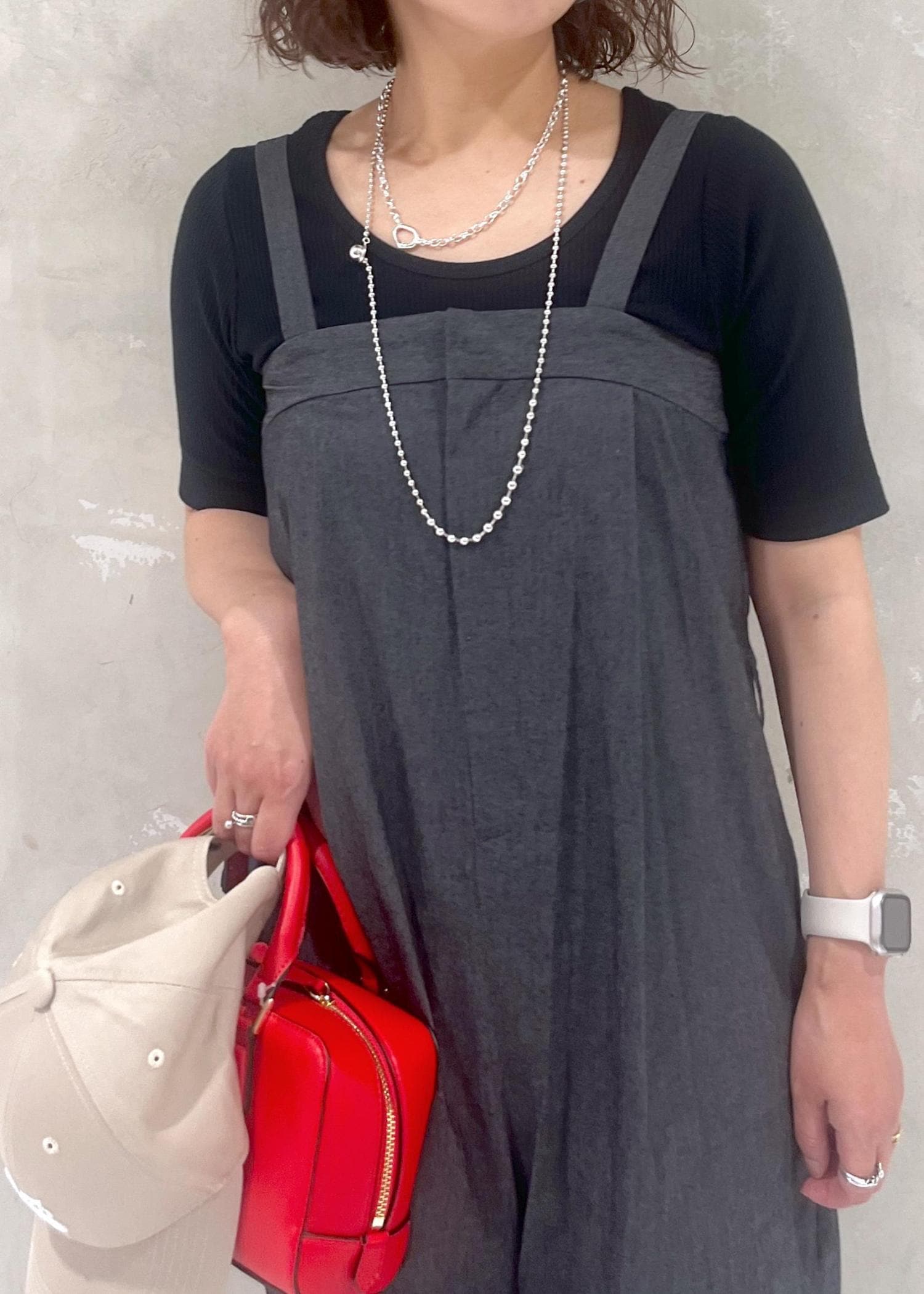 アウトレットVISベルト付きベアサロペットブラック系 / F¥3,164レビュー肩はストラップも細めで華奢な印象ですが、胸元からしたはボリュームのあるオールインワンです。