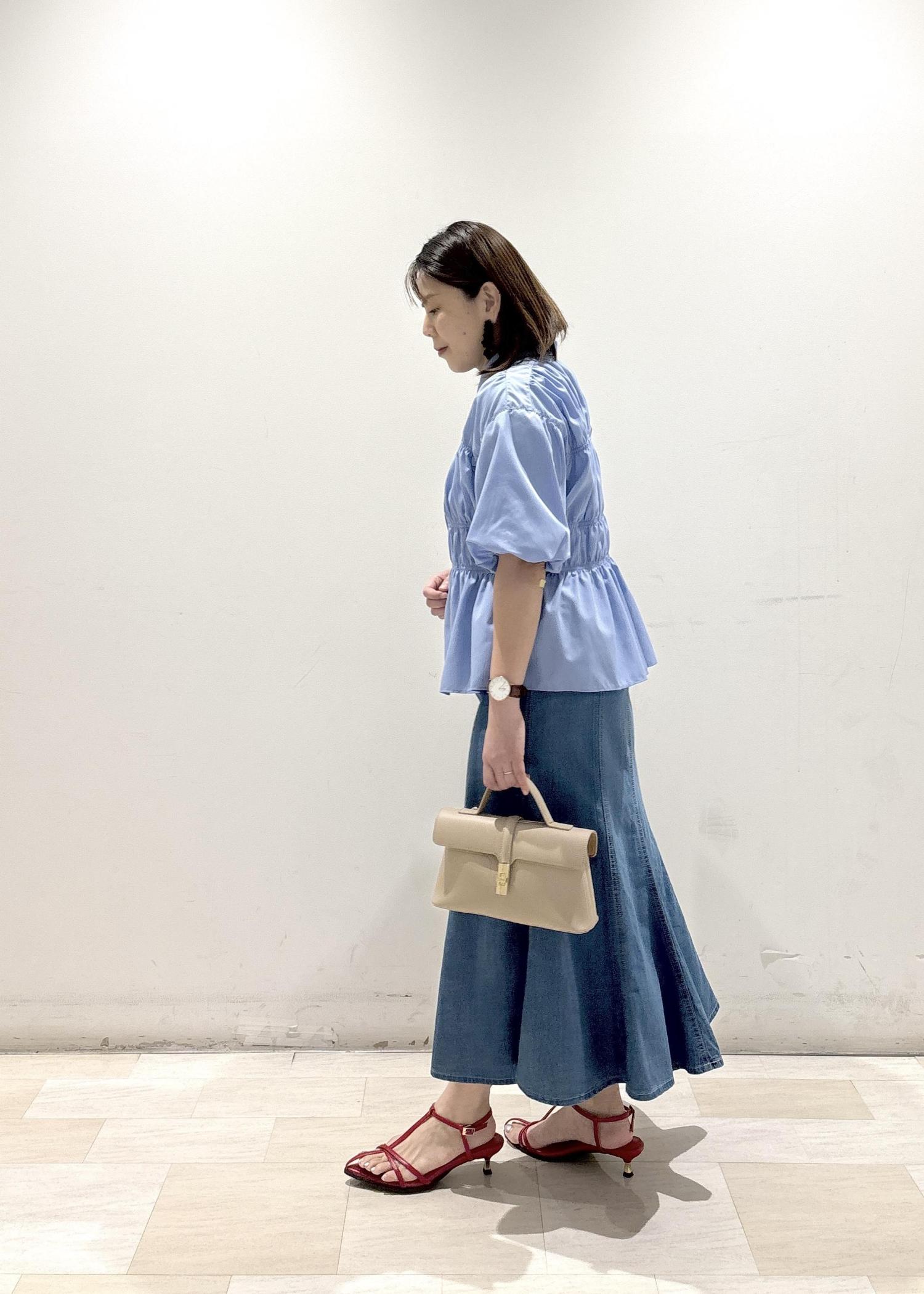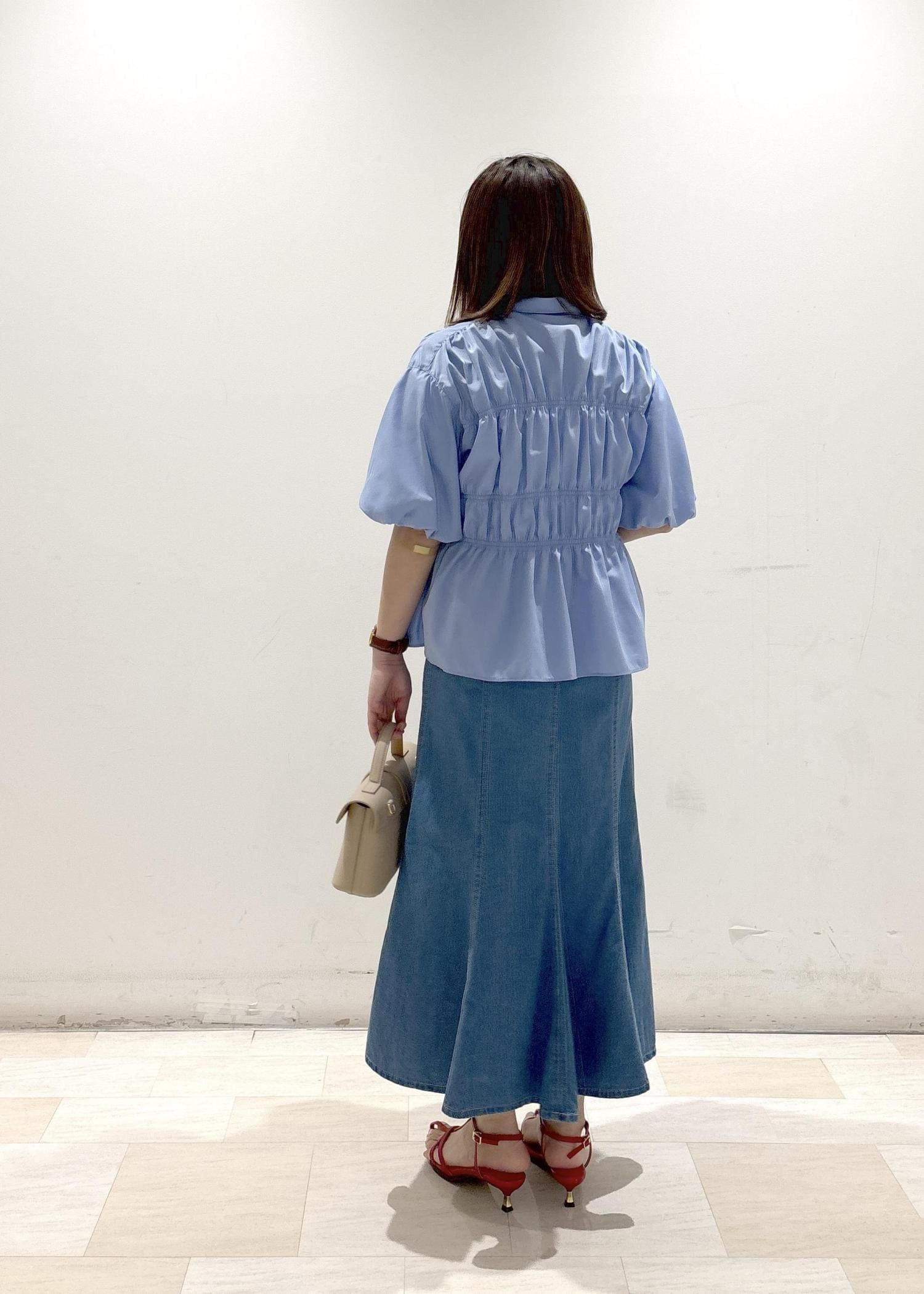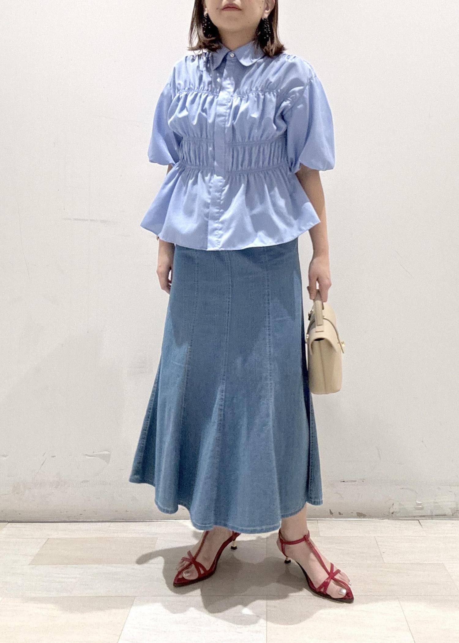 デニムマーメイドスカートと合わせたカジュアルコーデにしました。