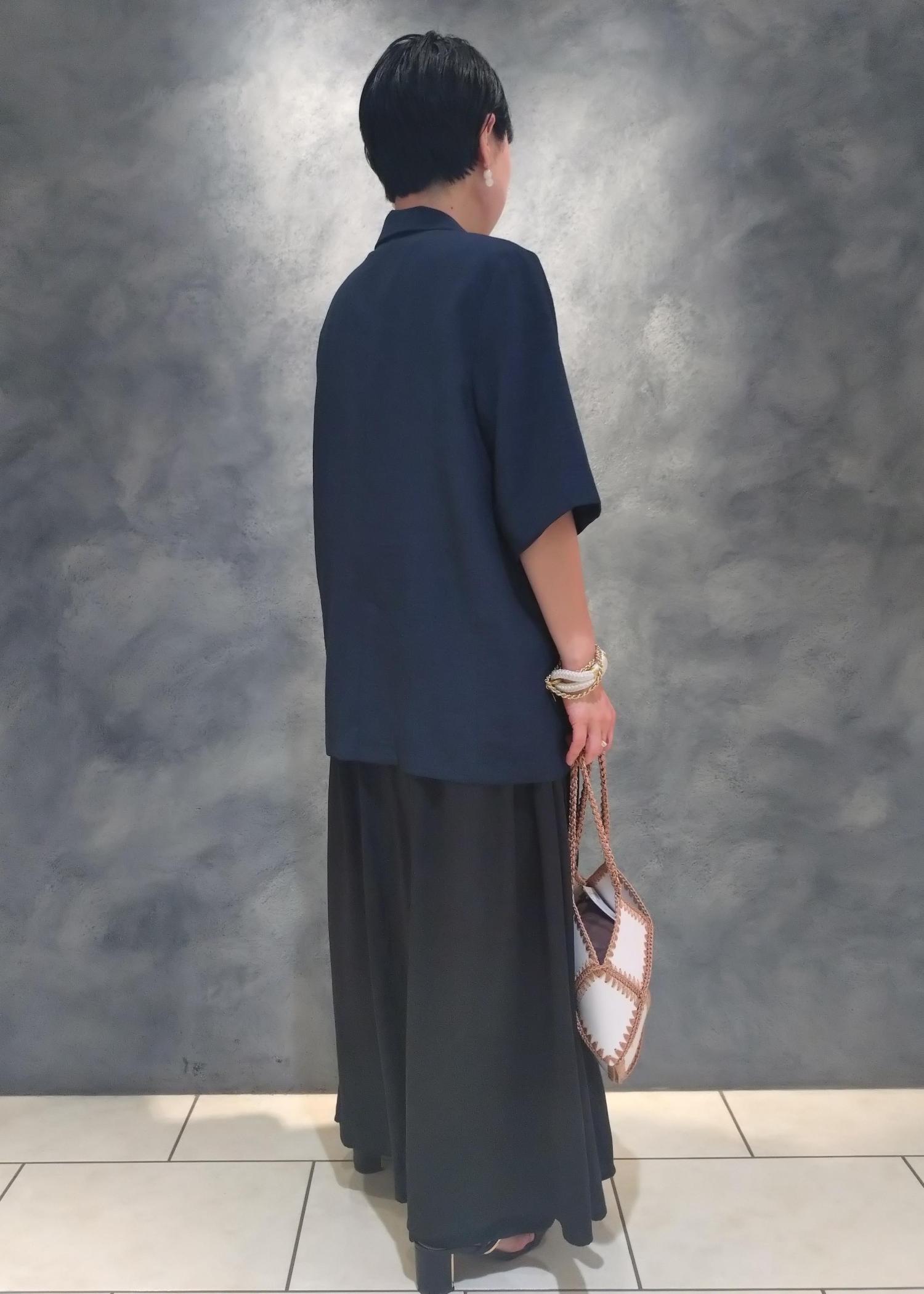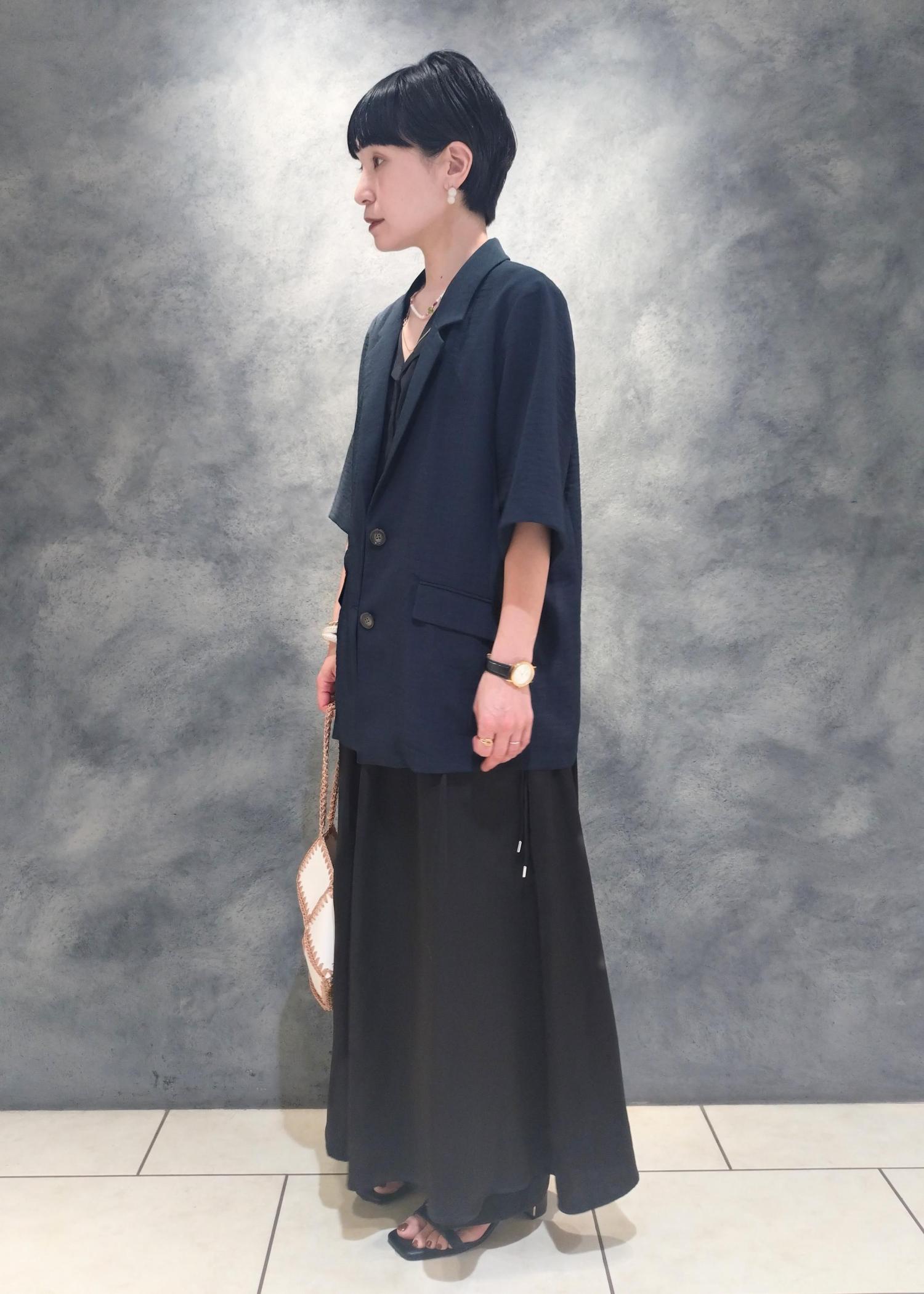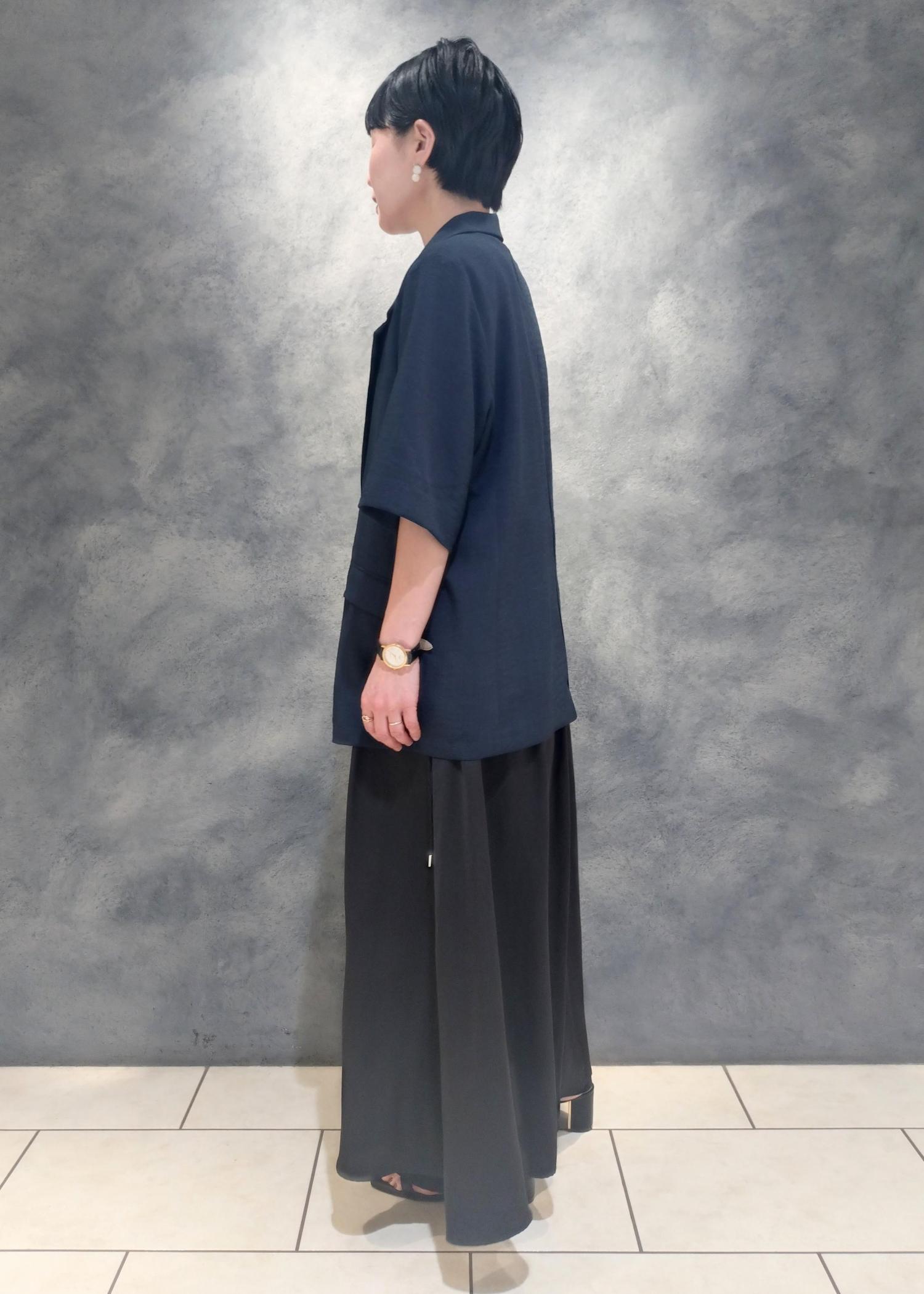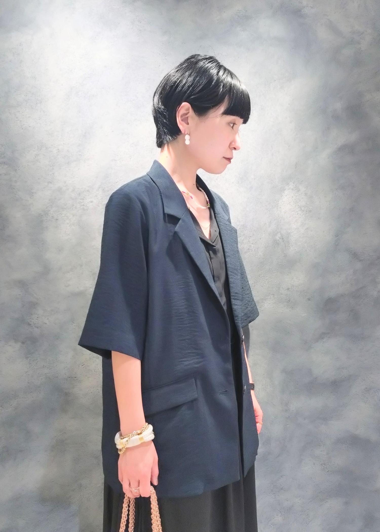 VIS【美easy】ハーフスリーブジャケット/セットアップ対応・洗えるネイビー / M¥7,909レビュー154センチでMサイズ着用。