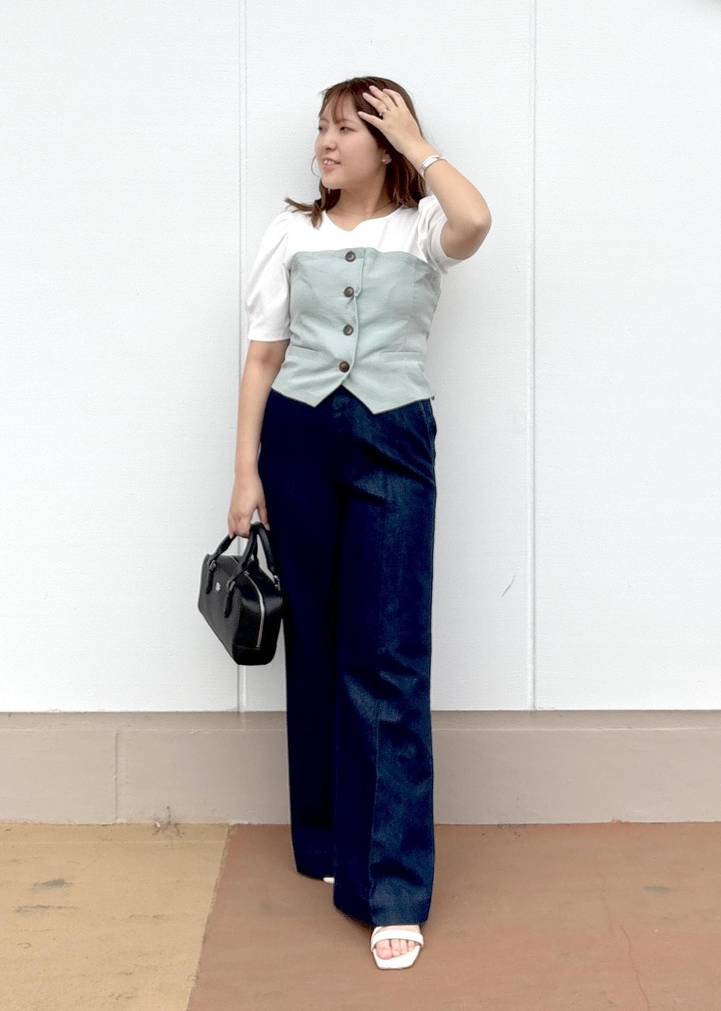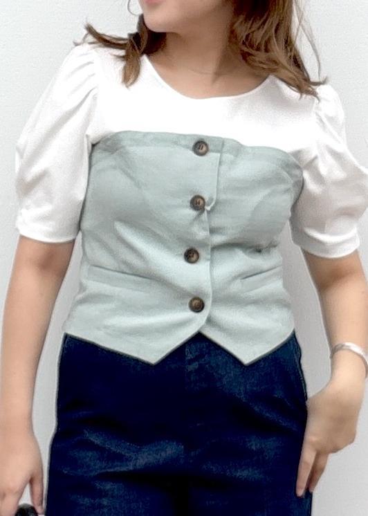 アウトレットVIS【新色追加】【美easy】釦ビスチェTシャツドッキングプルオーバー【接触冷感/洗える】ライトグリーン / F¥4,391レビューコンパクトな丈感のでスッキリ着られるトップスです!