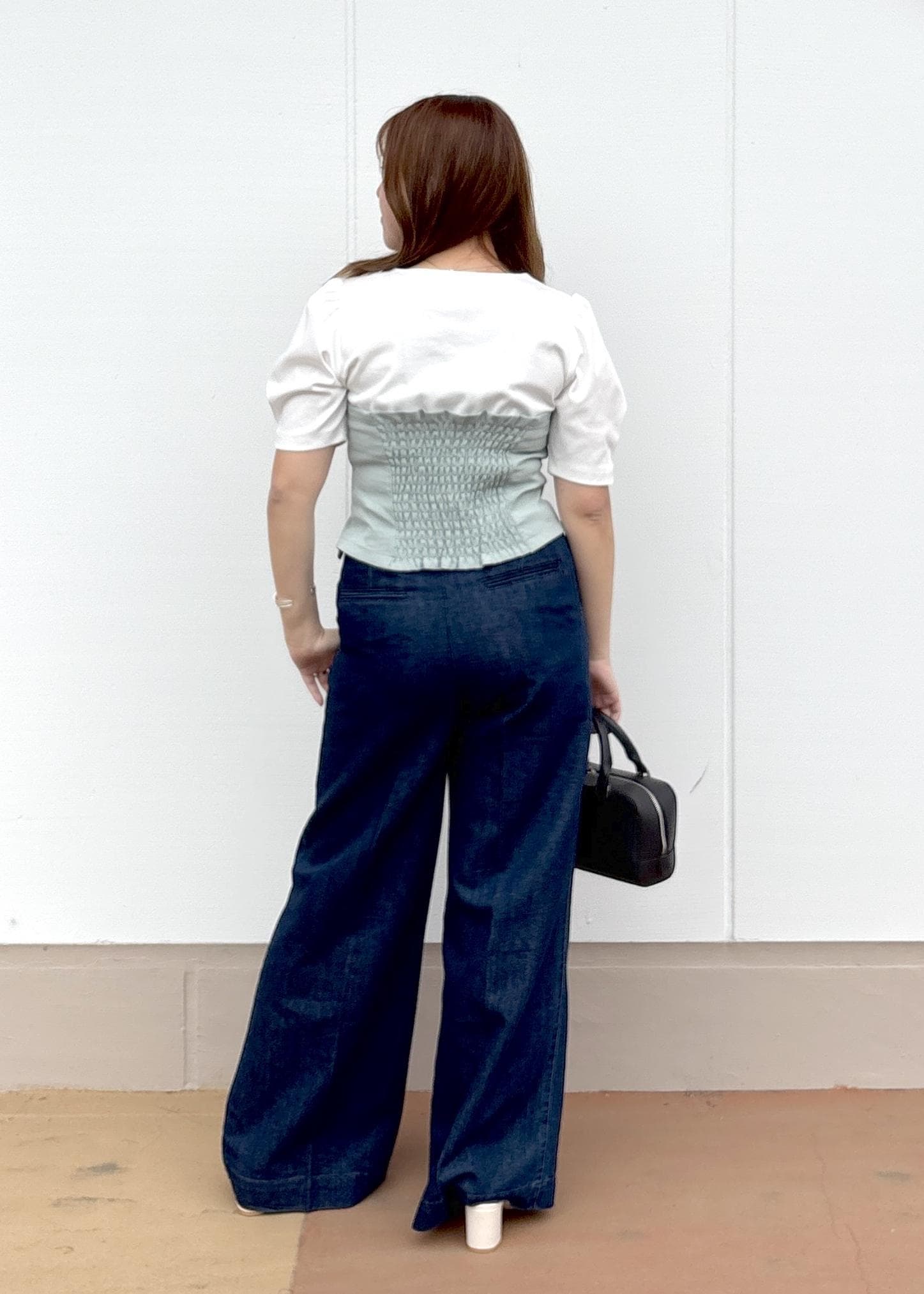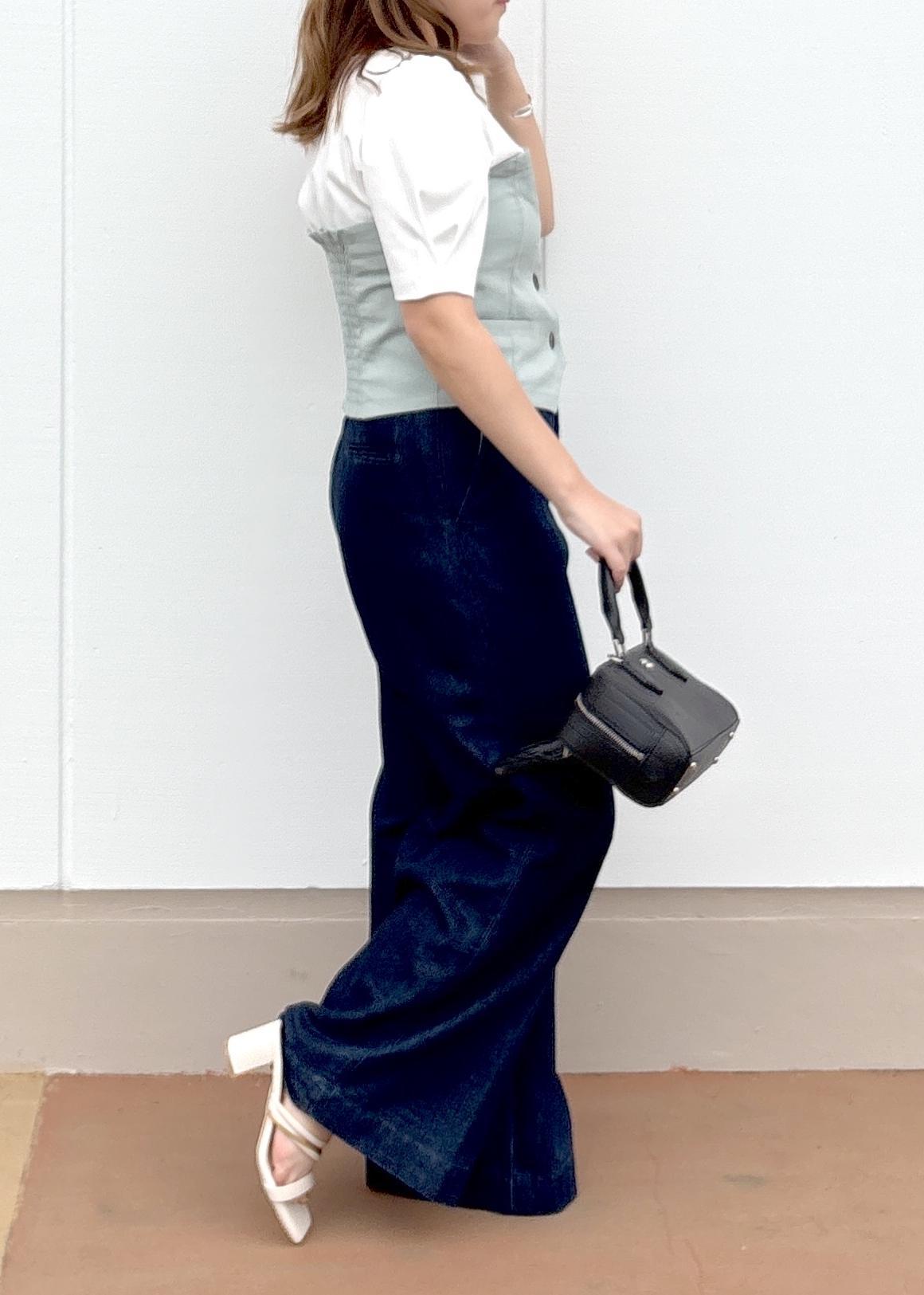 アウトレットVISグリッターワイドデニムパンツブルー系 / M¥5,339レビュー153cmでMサイズ着用でヒールを履いて下に着かないくらいの丈感です!