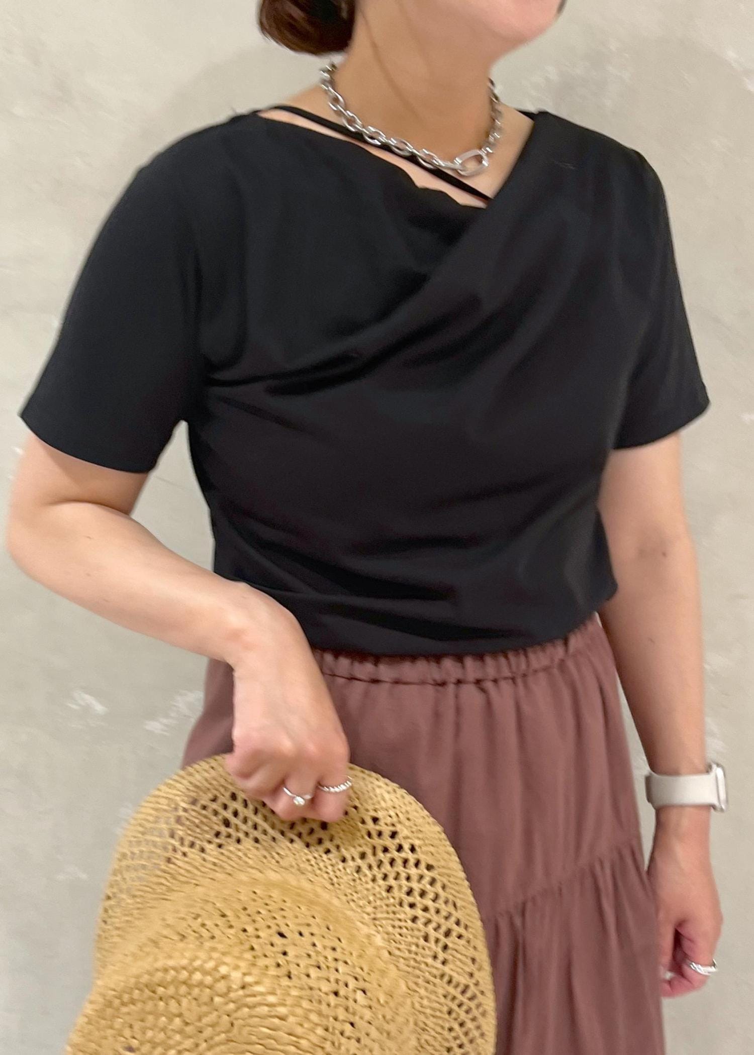 アウトレットVIS半袖ドレープカットソー/WEB限定カラーブラック / F¥2,764レビュー首元のドレープがきれいに効いたプルオーバーです。