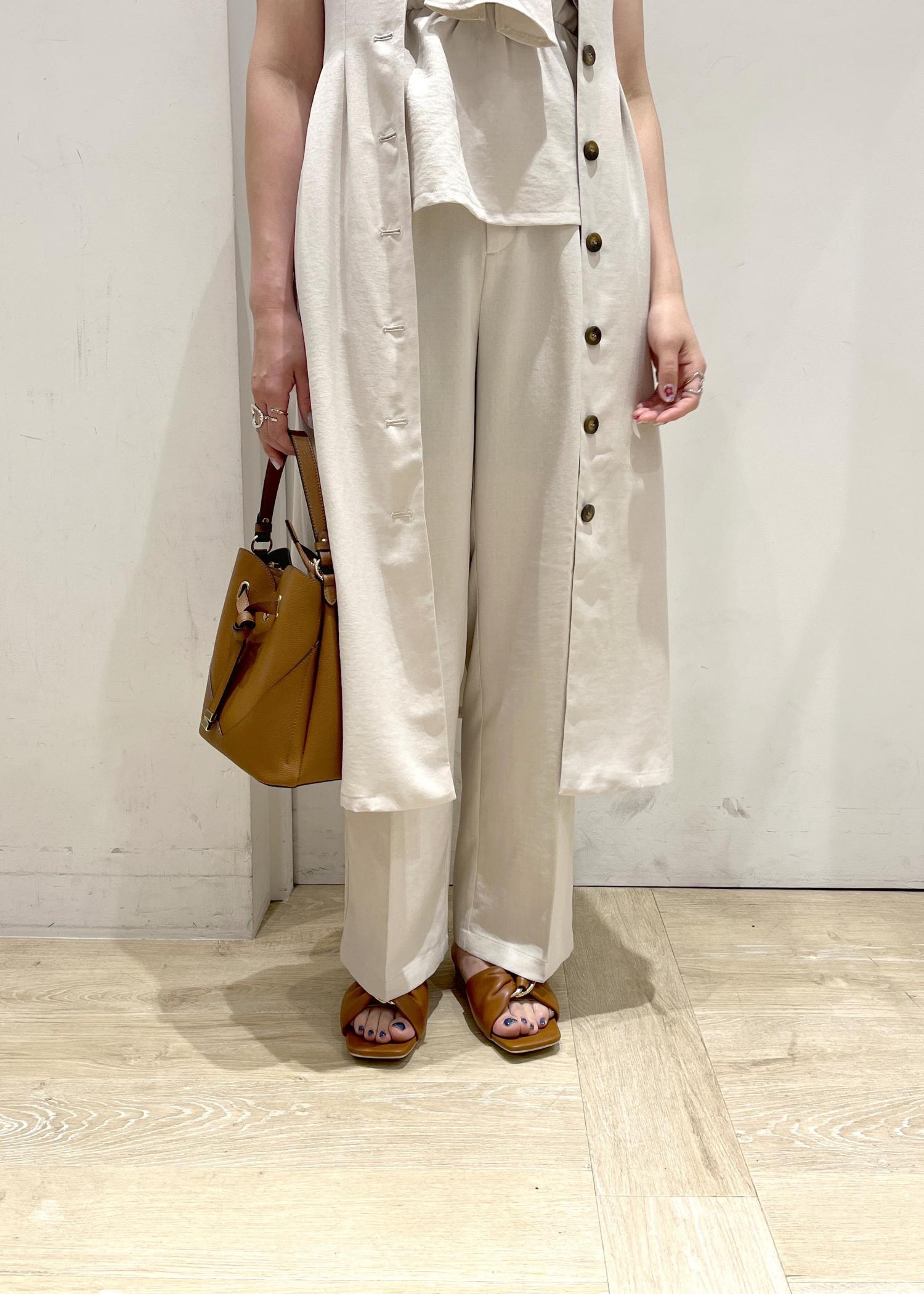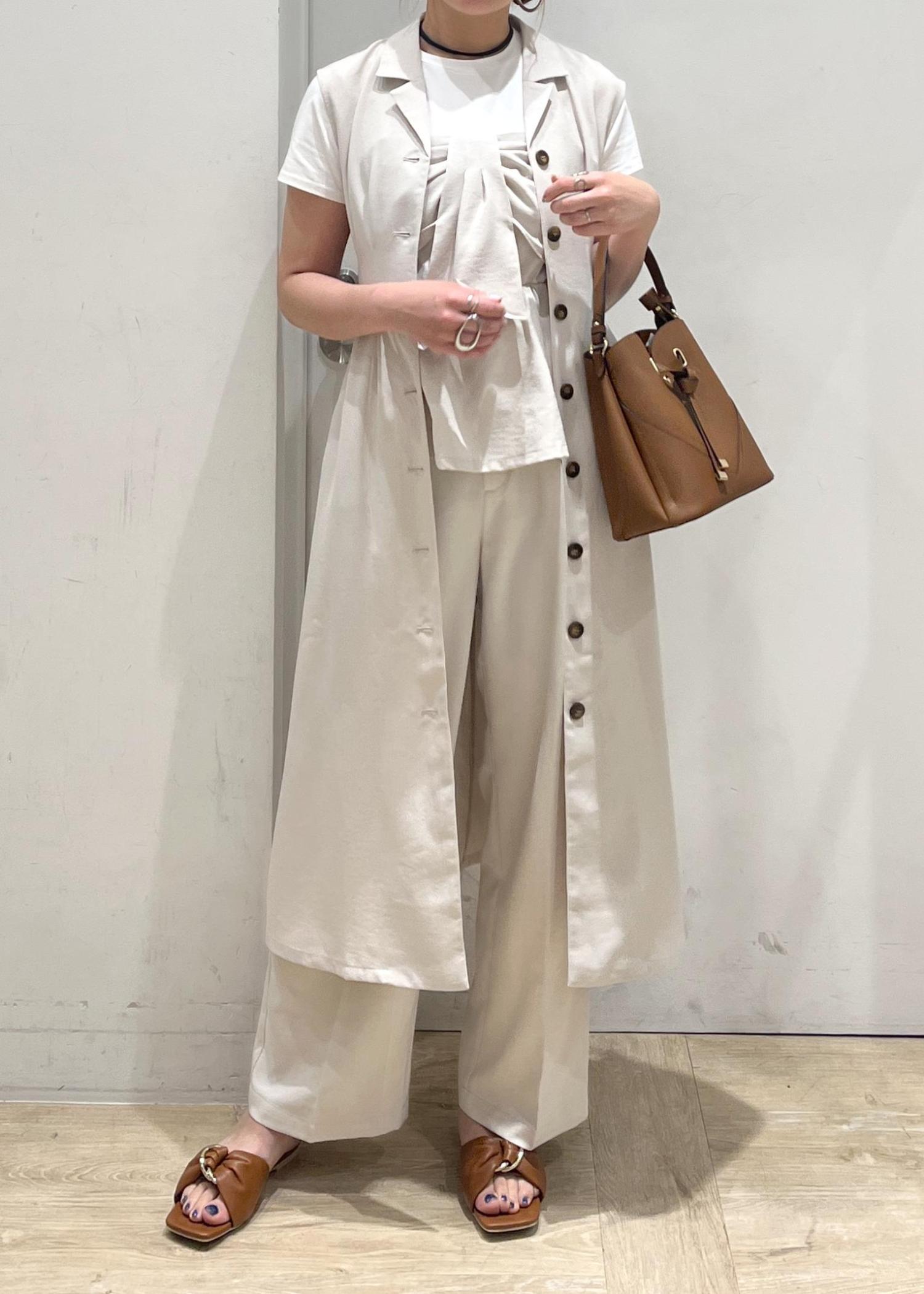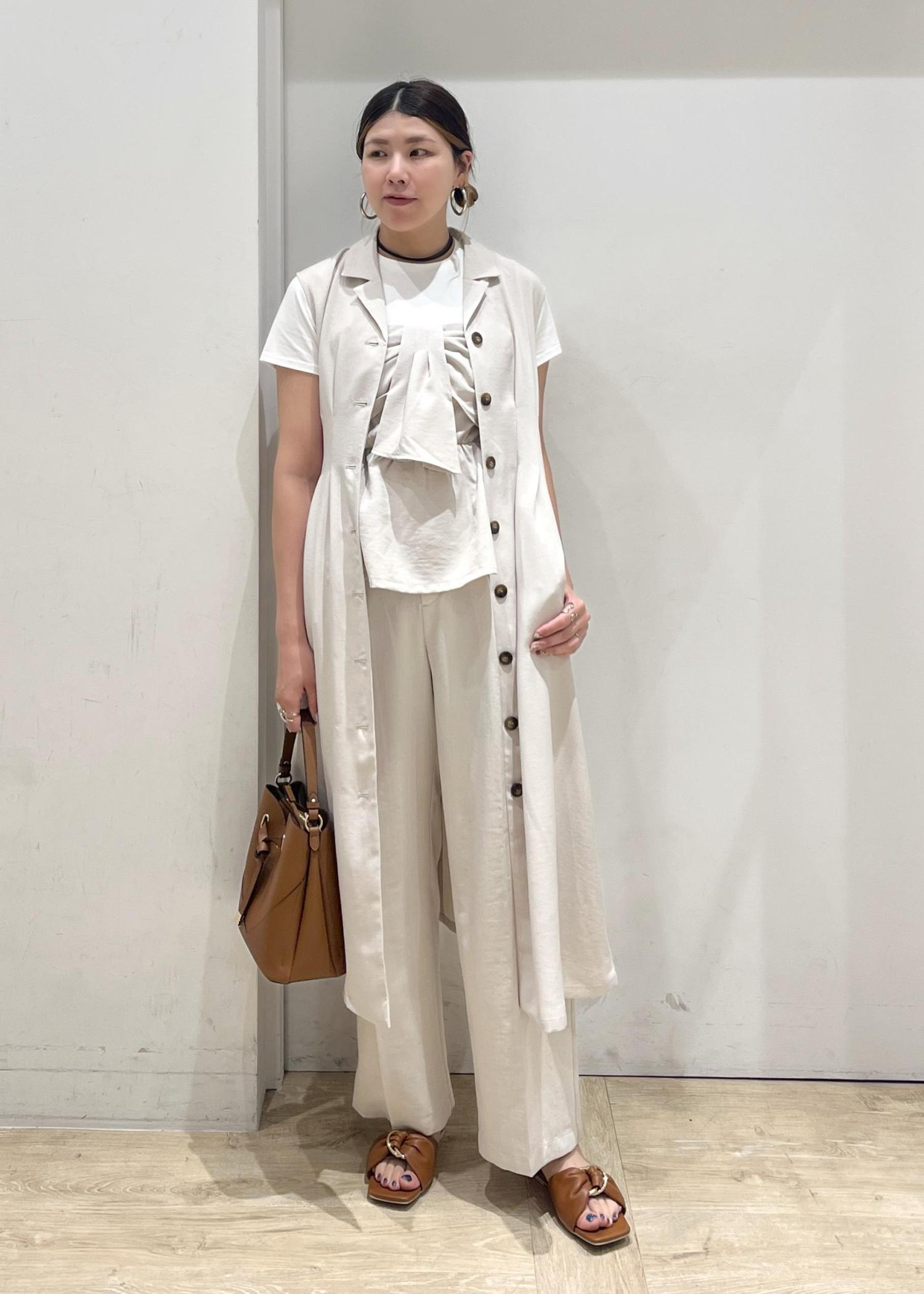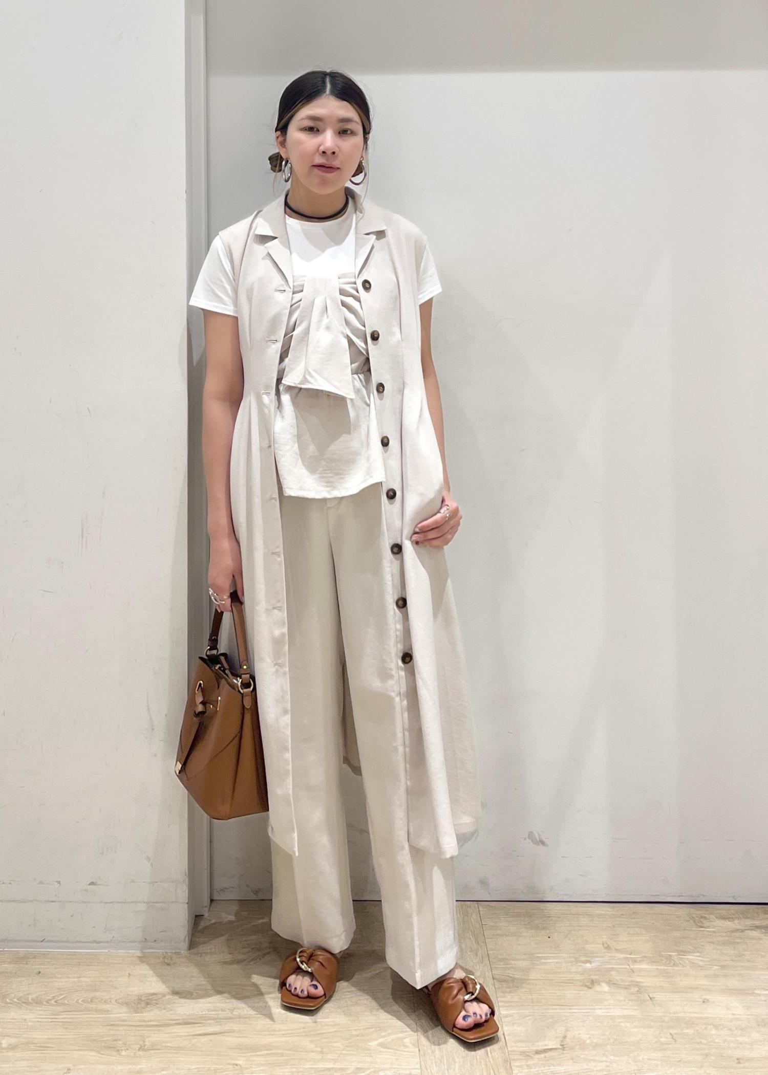 さらっとした着心地でシワにもなりにくくイージーケアの優れもの♪171cm/Lサイズ着用で足首がすこし見える丈感で、太もも周りなどはゆったり着れます。