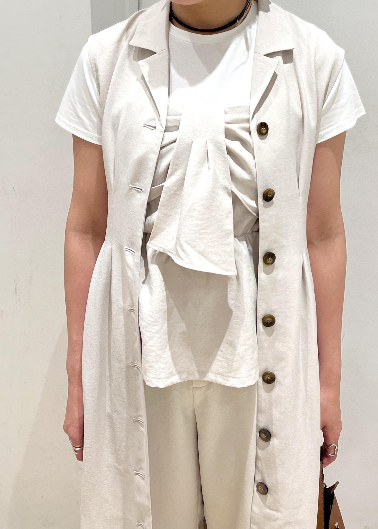 VIS【新色追加】【美easy】ねじりリボンTシャツドッキングプルオーバー【接触冷感/洗える】キナリ / F¥5,489レビュー大人気美easyシリーズ!!