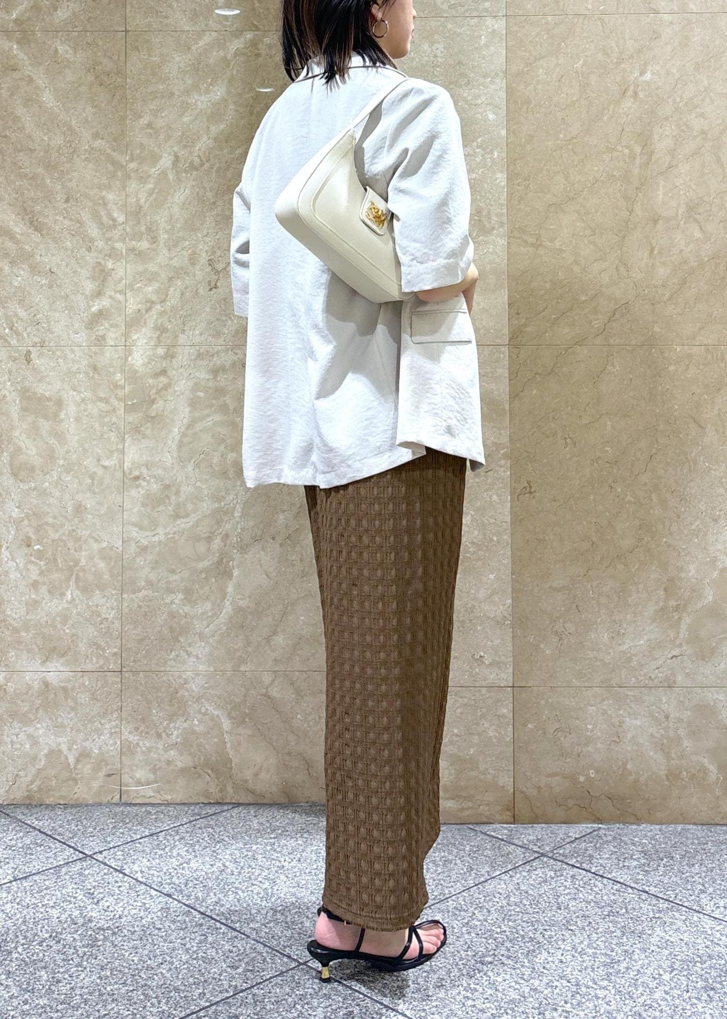 とろみがあるので程よくボディに沿い、着膨れのしないニット素材です。 -