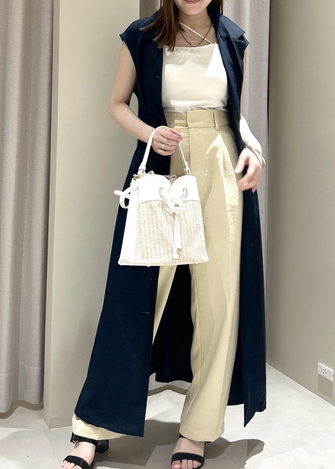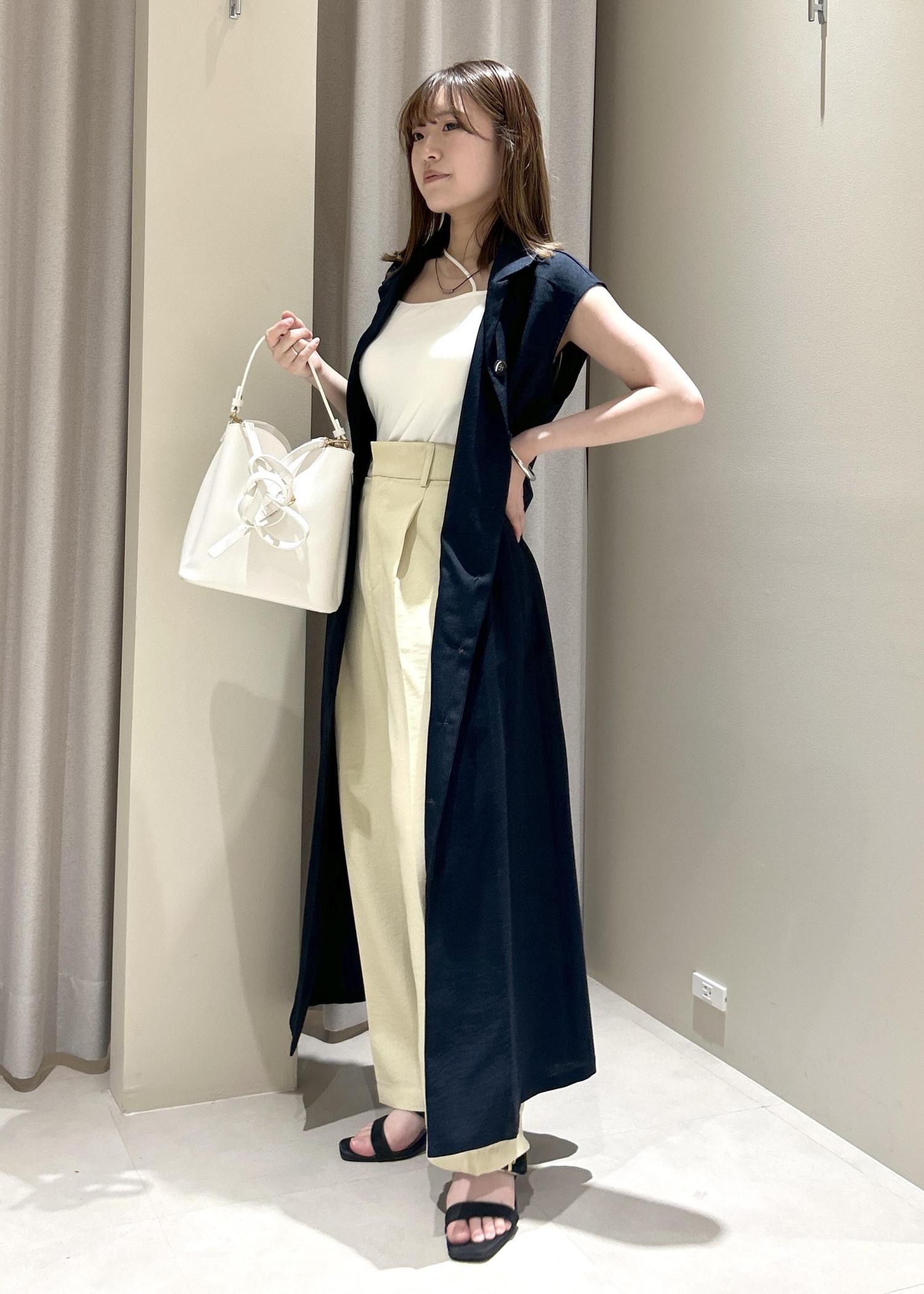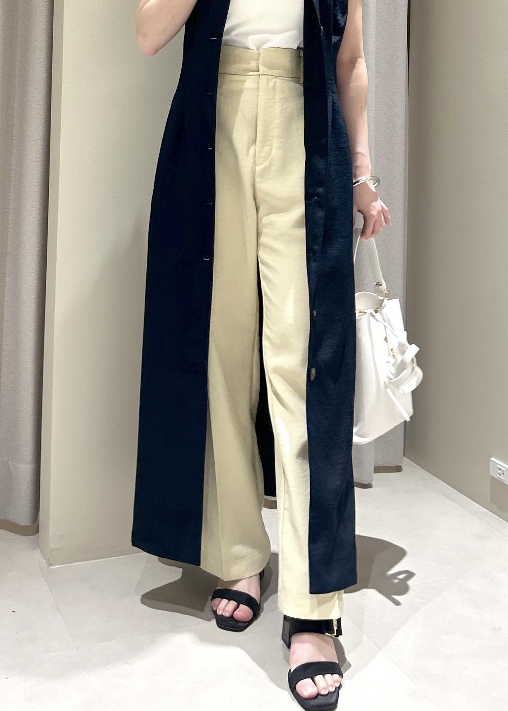 VIS【美easy】ワンタックワイドスラックスパンツ/洗えるイエロー系 / SS¥5,489レビュー薄目の生地でサラッと涼しく着れます。ウエストはボタンで調節可能です。