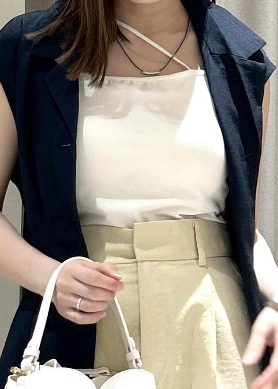 アウトレットVIS【洗える】カップ付きアシンメトリーキャミソールオフホワイト / F¥1,973レビューアジャスターで紐の長さ調節が可能です。カップ付きのキャミソールで締めつけも少ないのでとても楽に着れます。