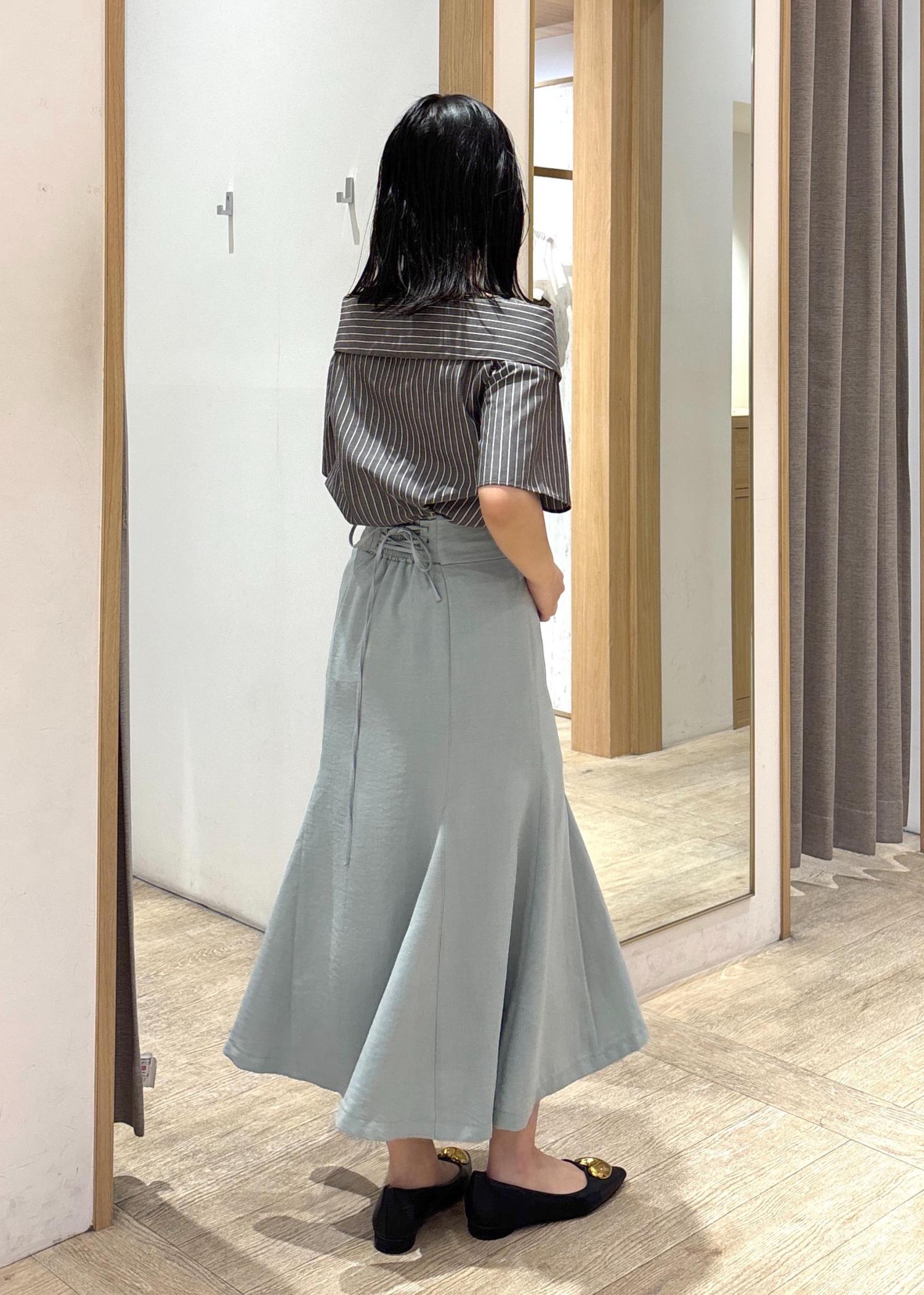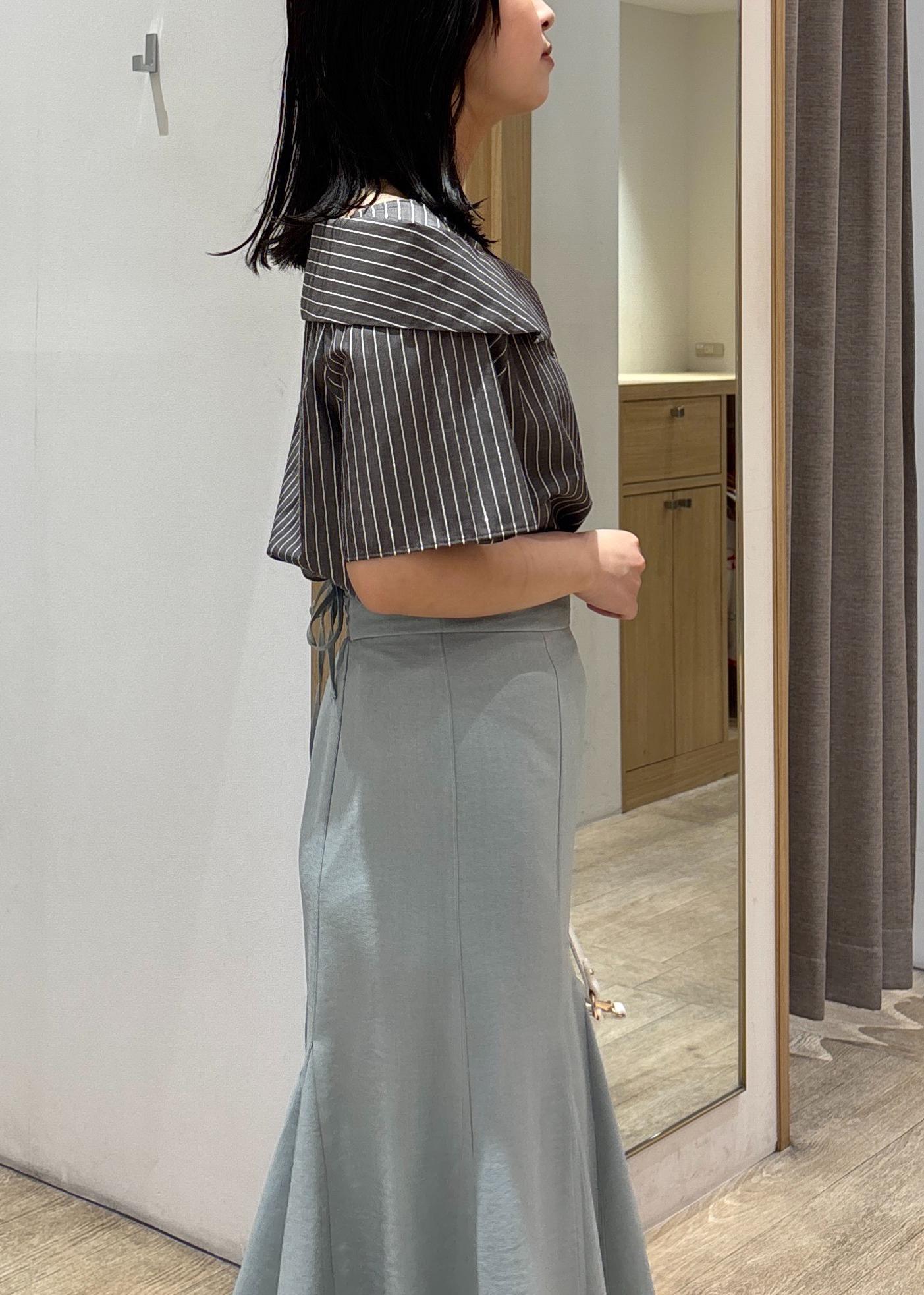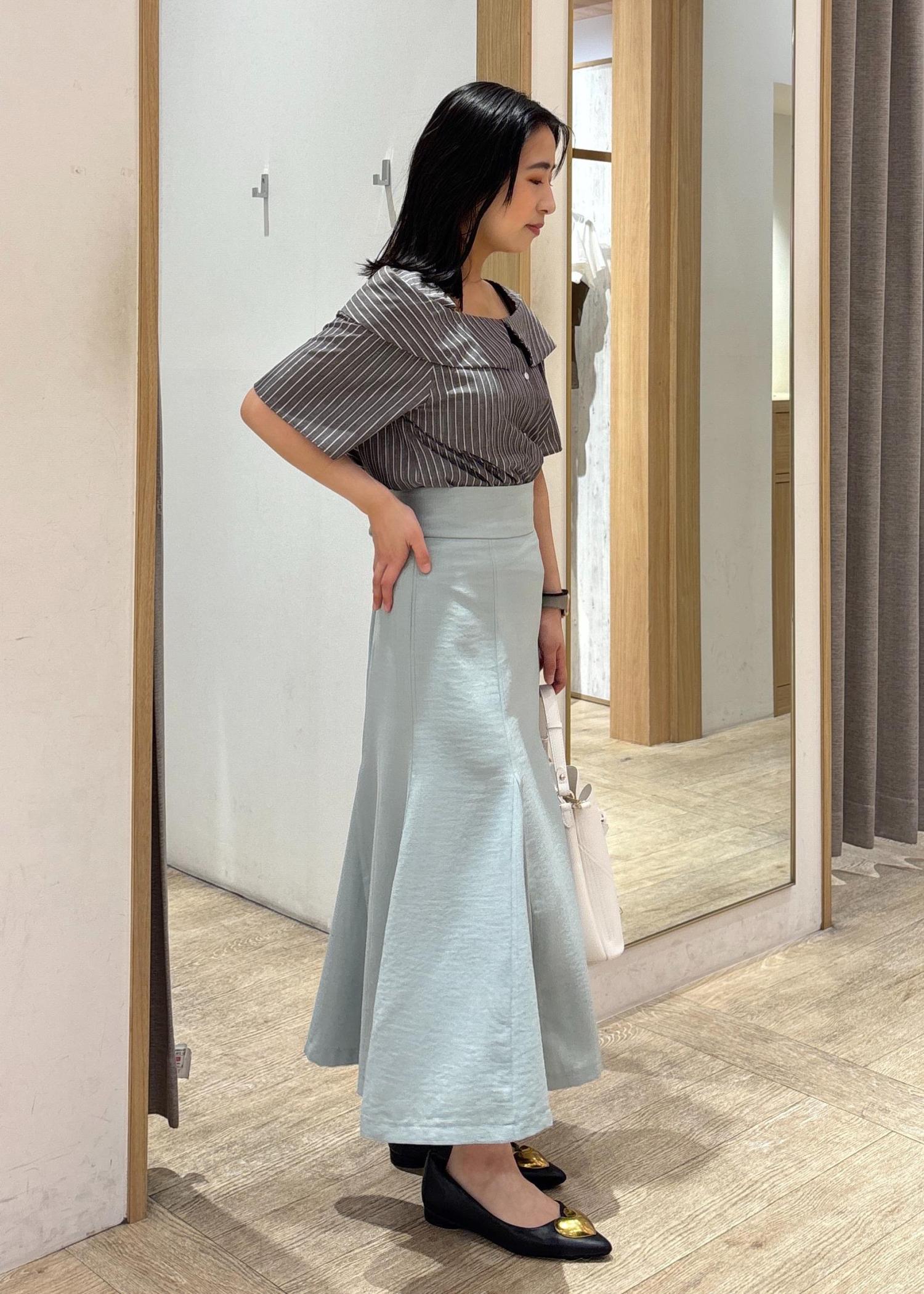 膝あたりからなだらかに広がりがあるマーメイドスカートで、脚長効果抜群◎