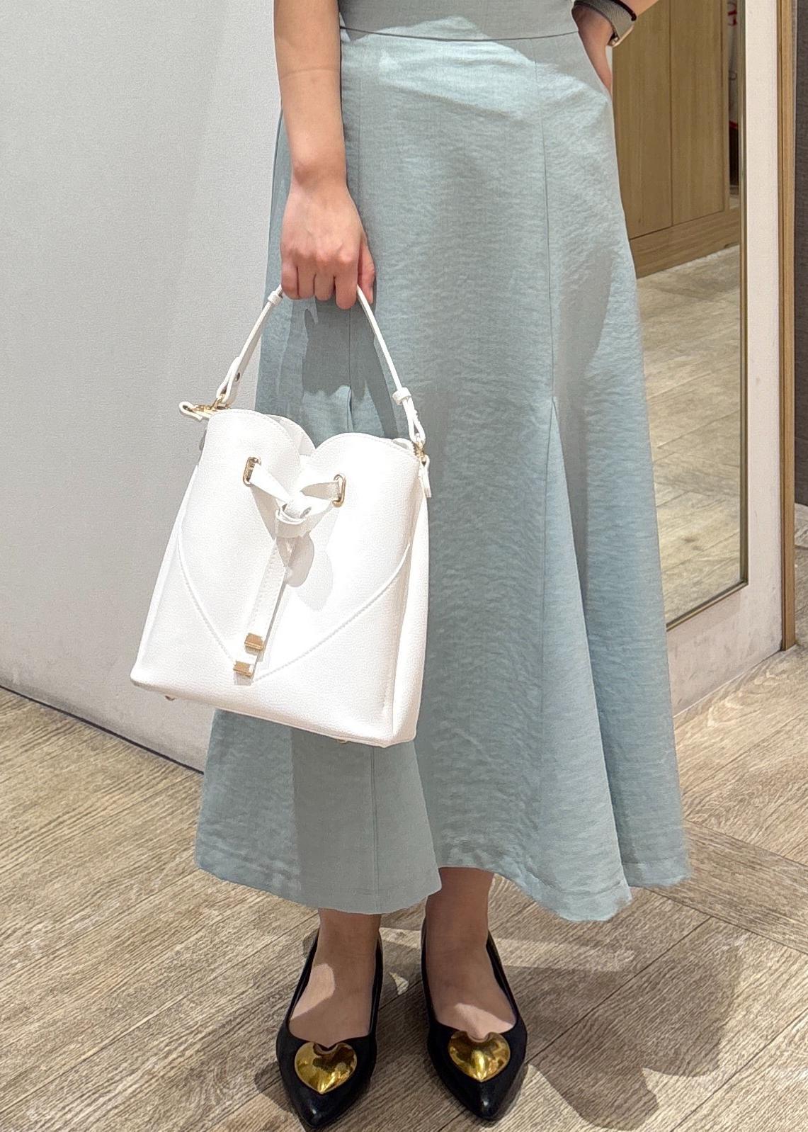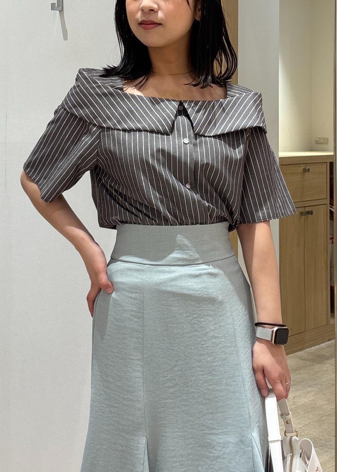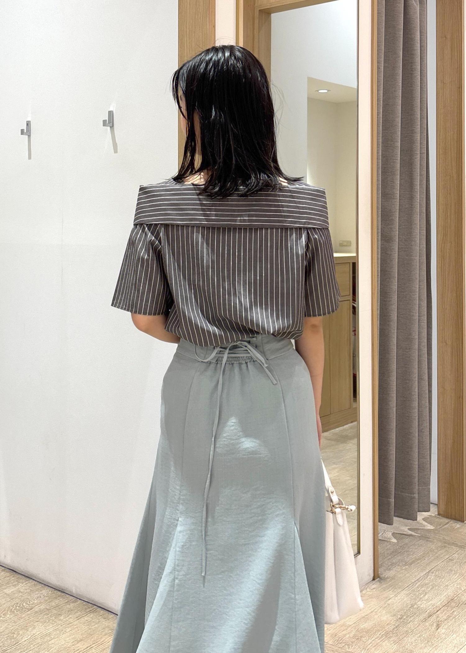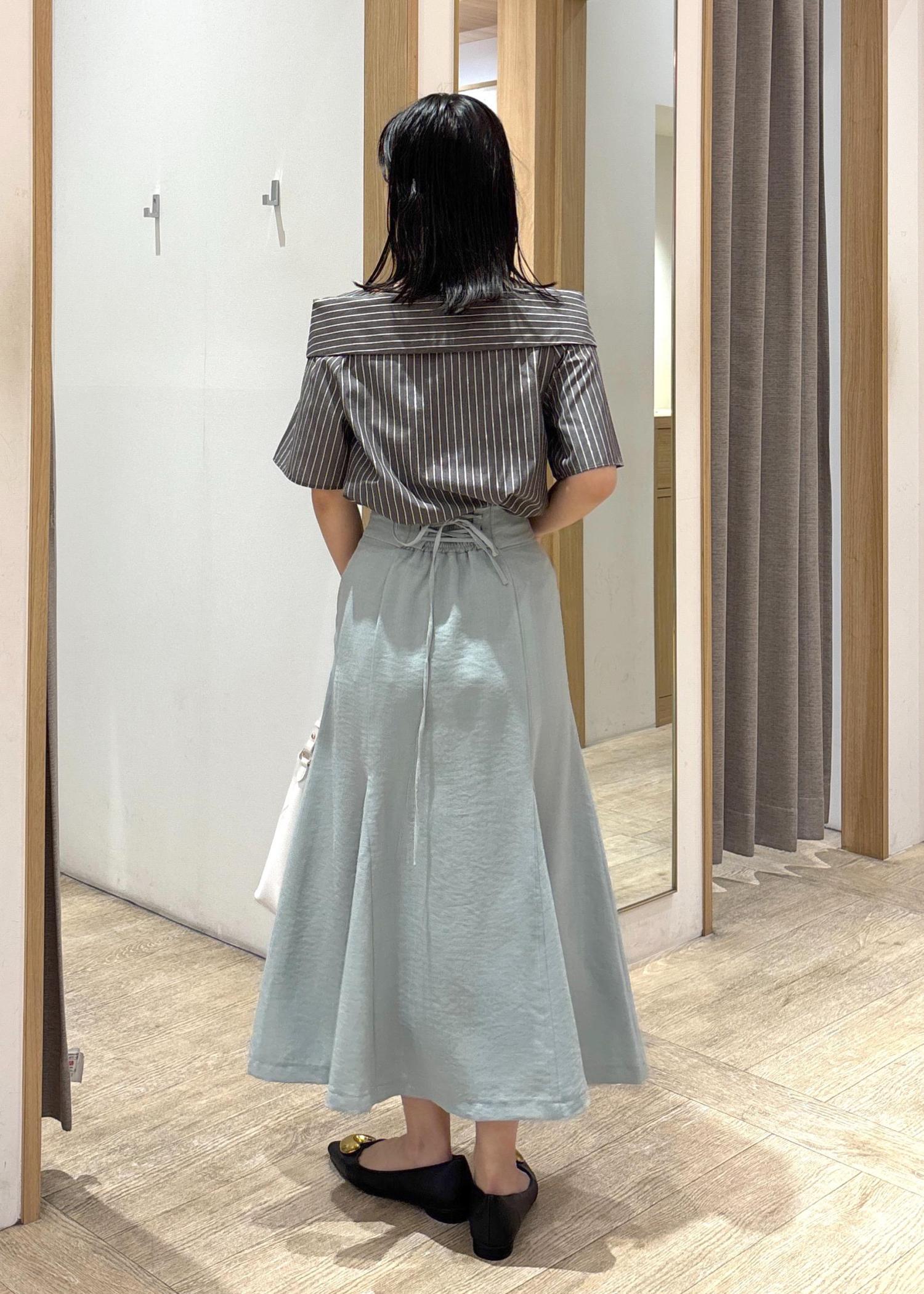 膝あたりからなだらかに広がりがあるマーメイドスカートで、脚長効果抜群◎