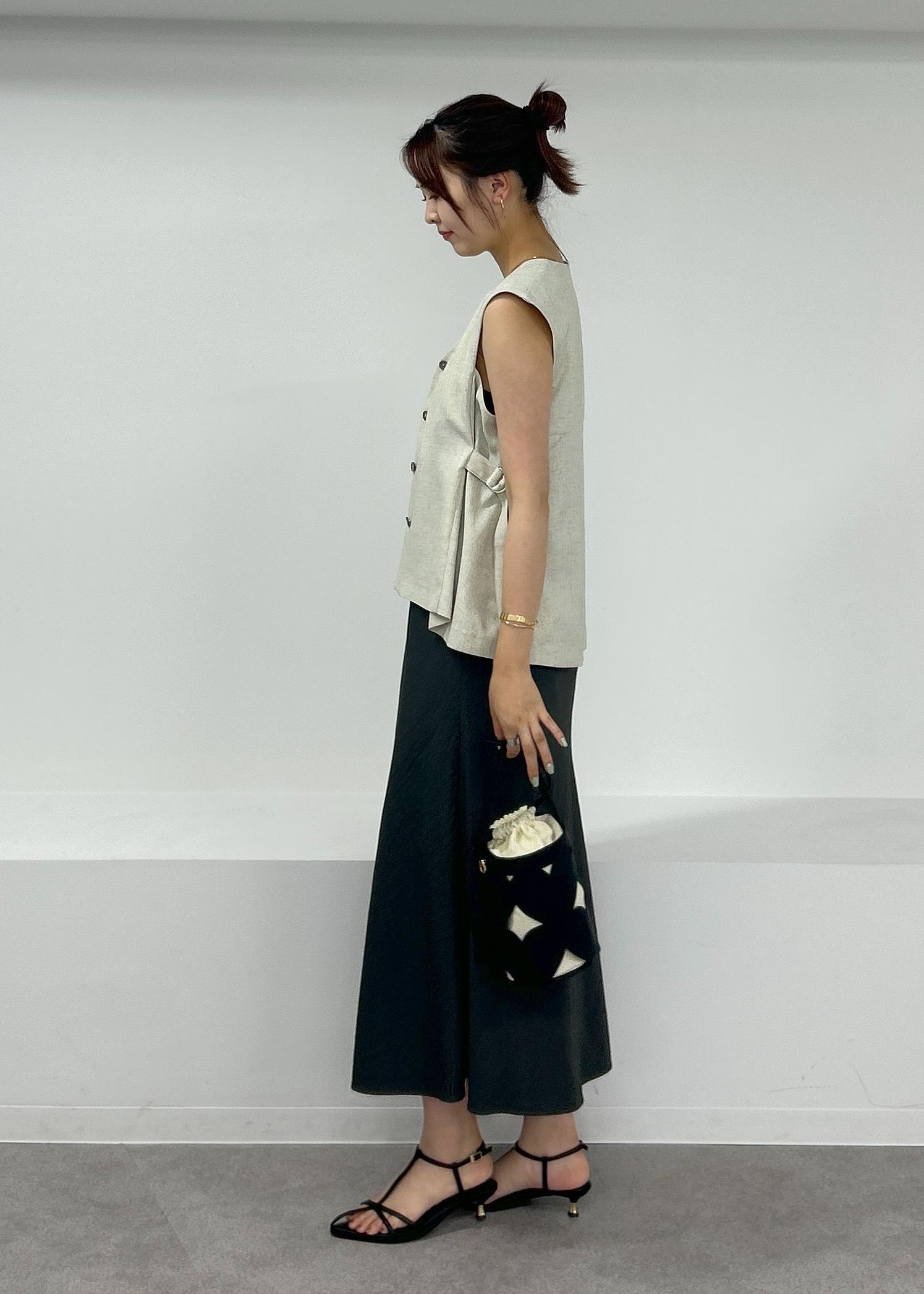 肩紐で丈感が調節可能なので低身長さんでも高身長さんでも合う長さで着ていただけます。