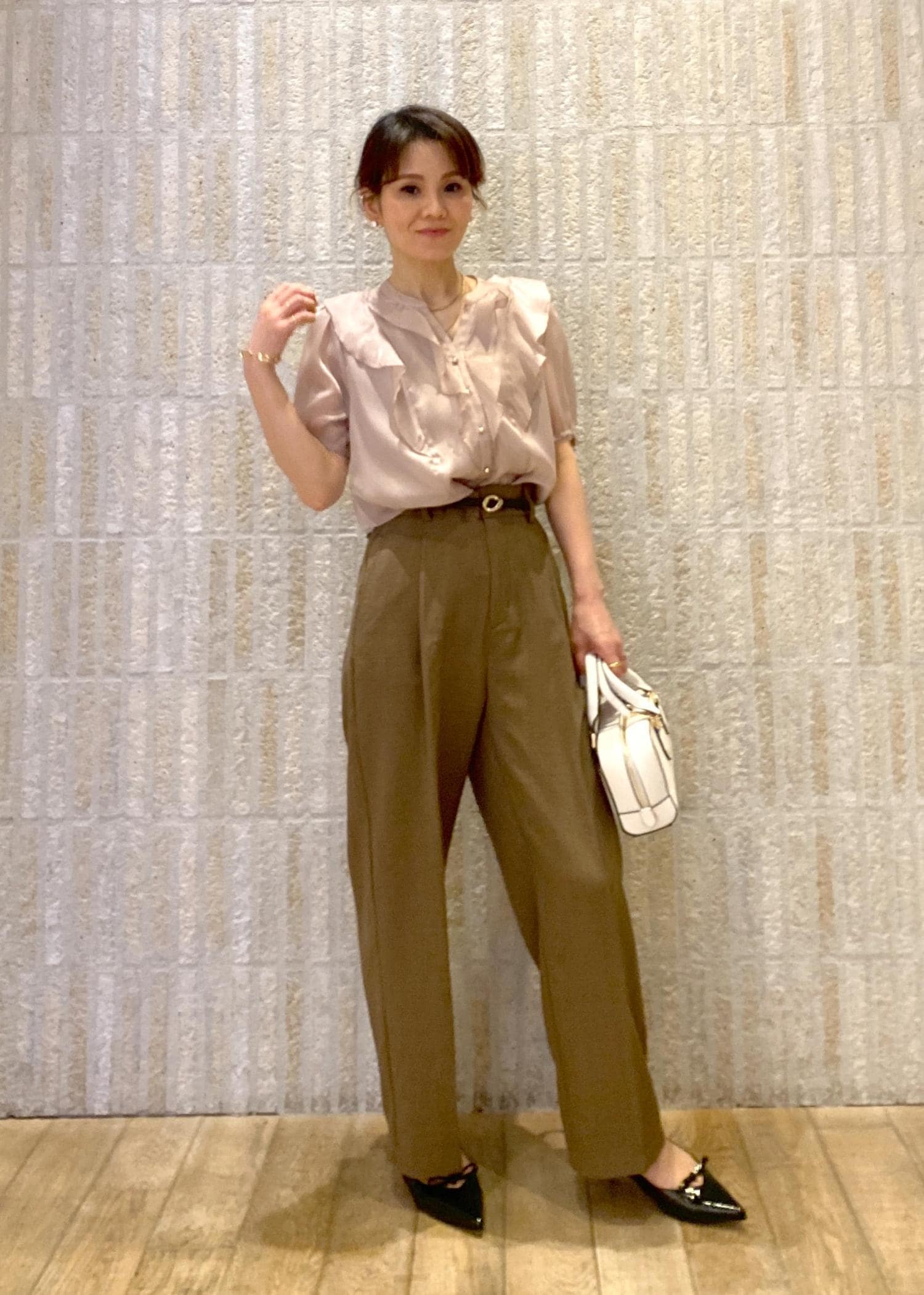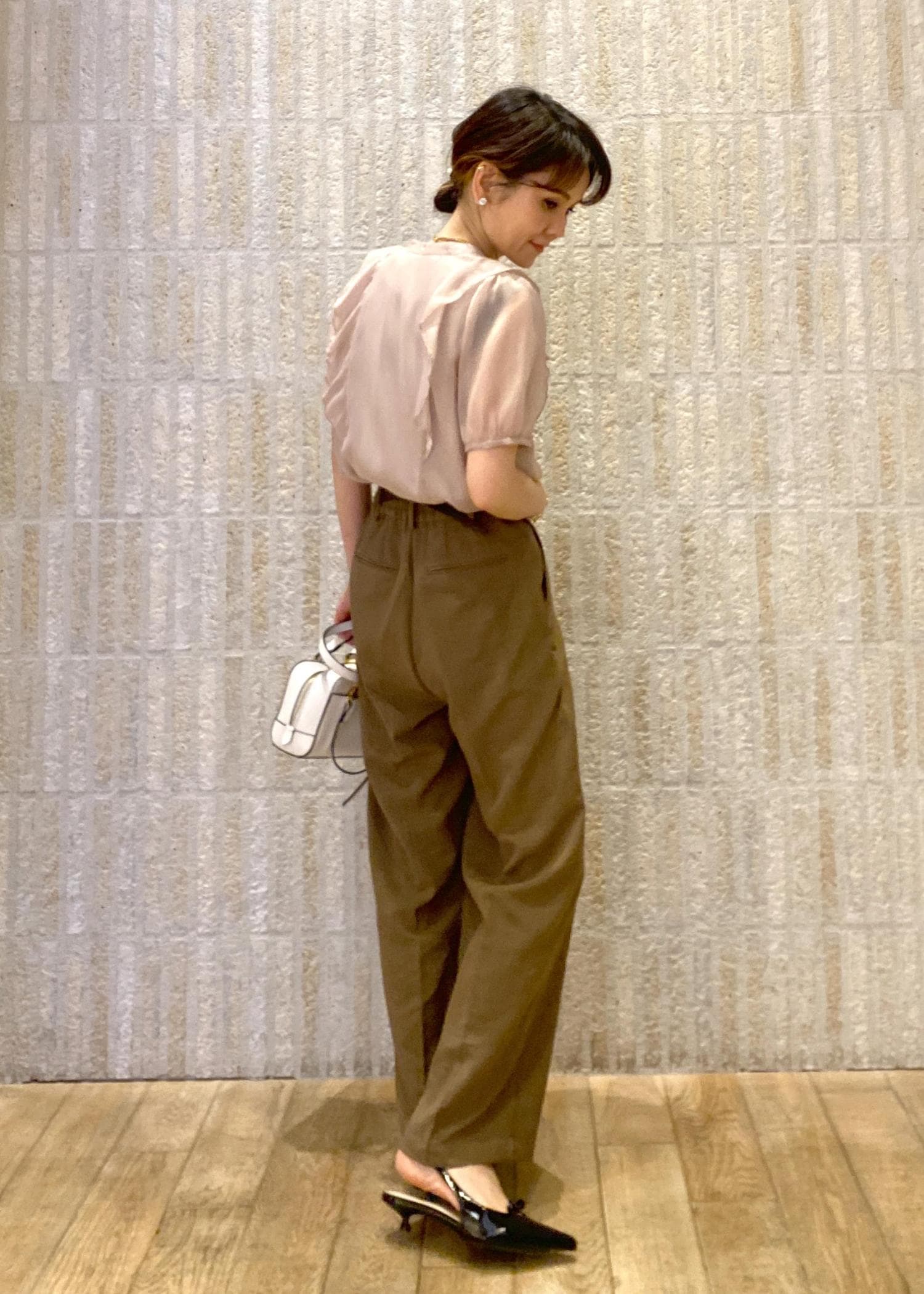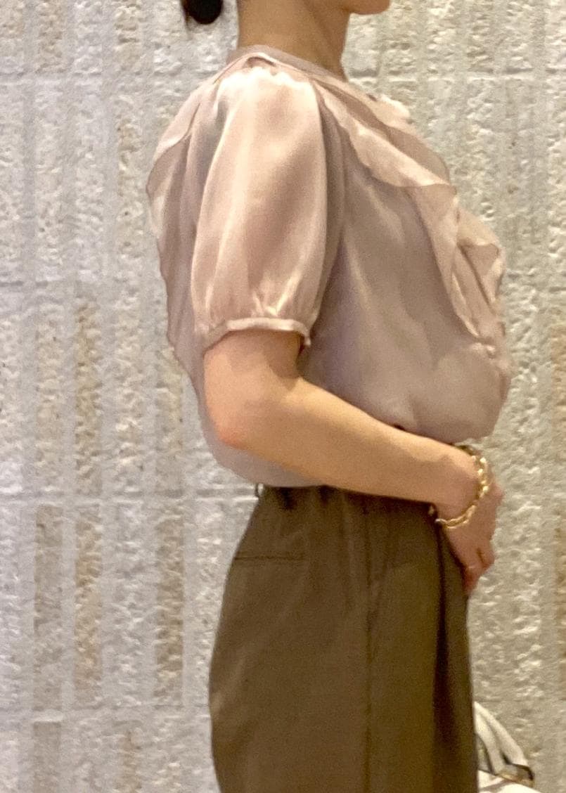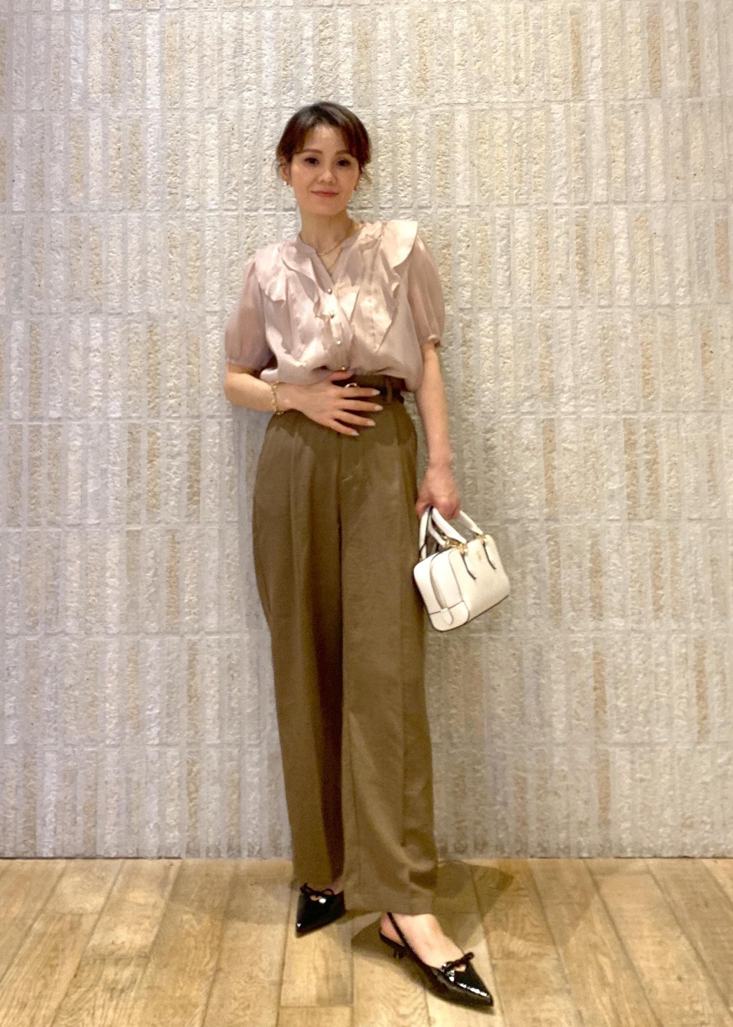 デニムでカジュアルに崩してもかわいいし、キレイめなスタイリングにもOKなブラウスです。