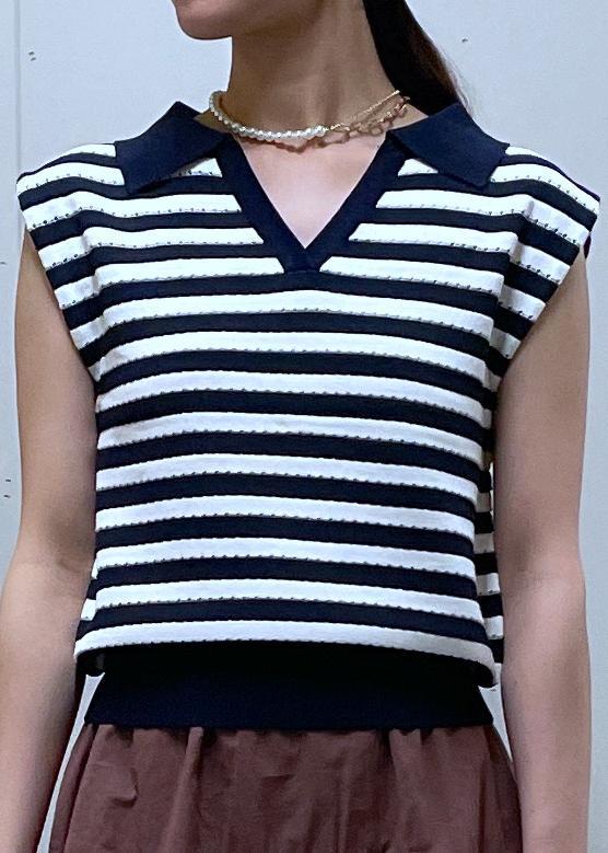 アウトレットVISスキッパーフレンチスリーブアイレットニットネイビー系 / F¥3,842レビューVになっているのでスッキリと見え小顔効果もあると思います。袖の部分がフレンチスリーブになっていてスッキリと綺麗に見してくれます。