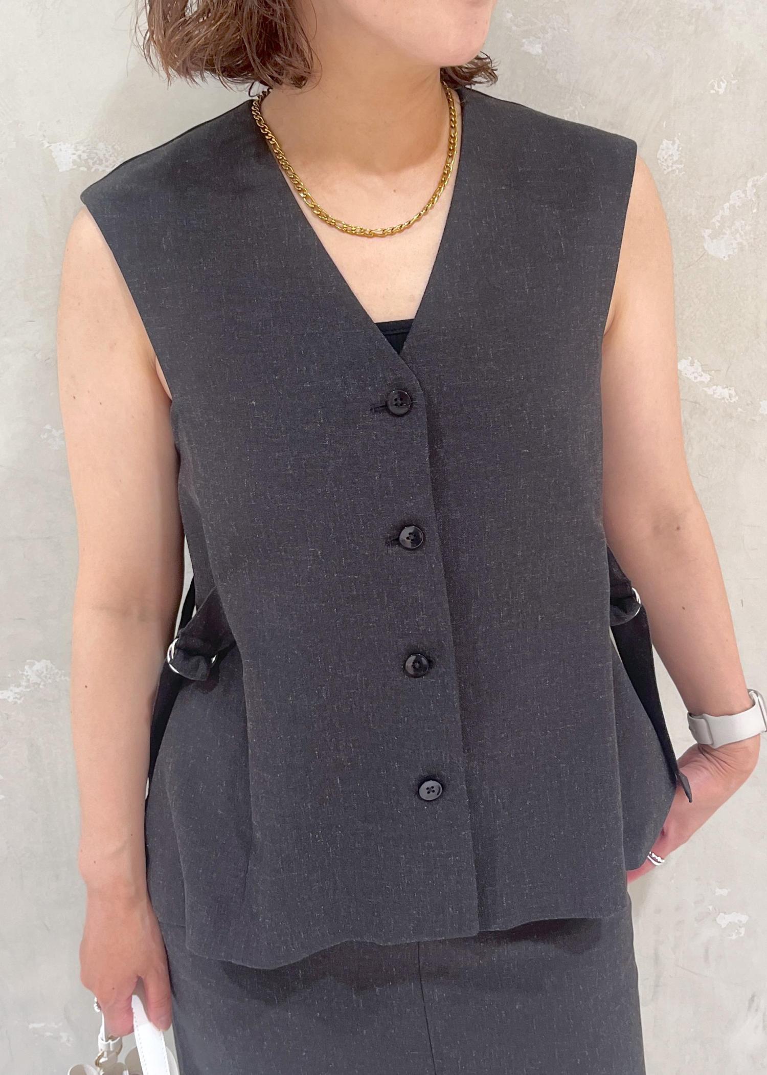 Vネックなのでデコルテラインもきれいに見えて上品なジレです。 -