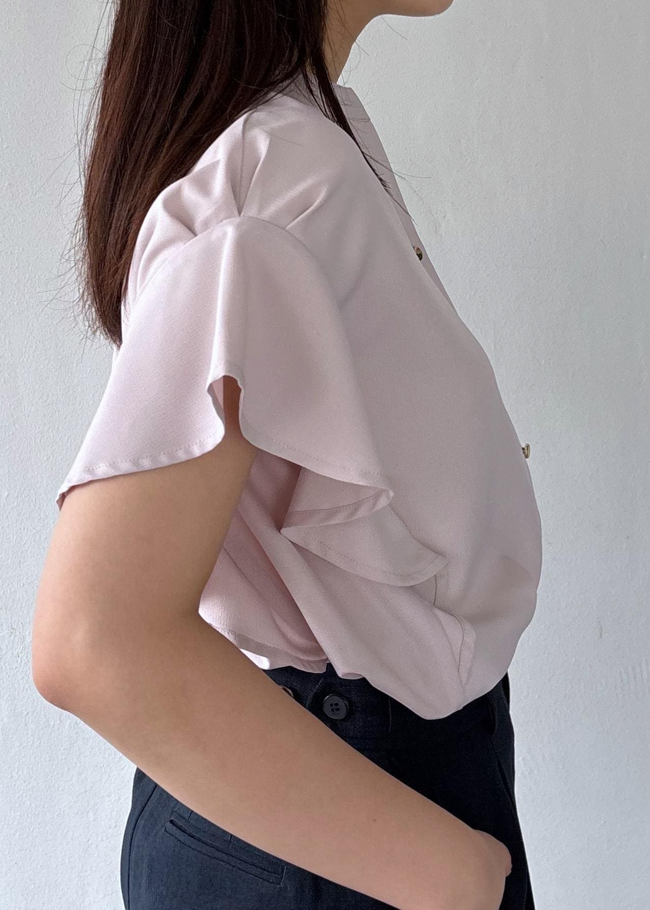 首元Vネックで抜け感を出せるので、フリルでもすっきり見えします! -