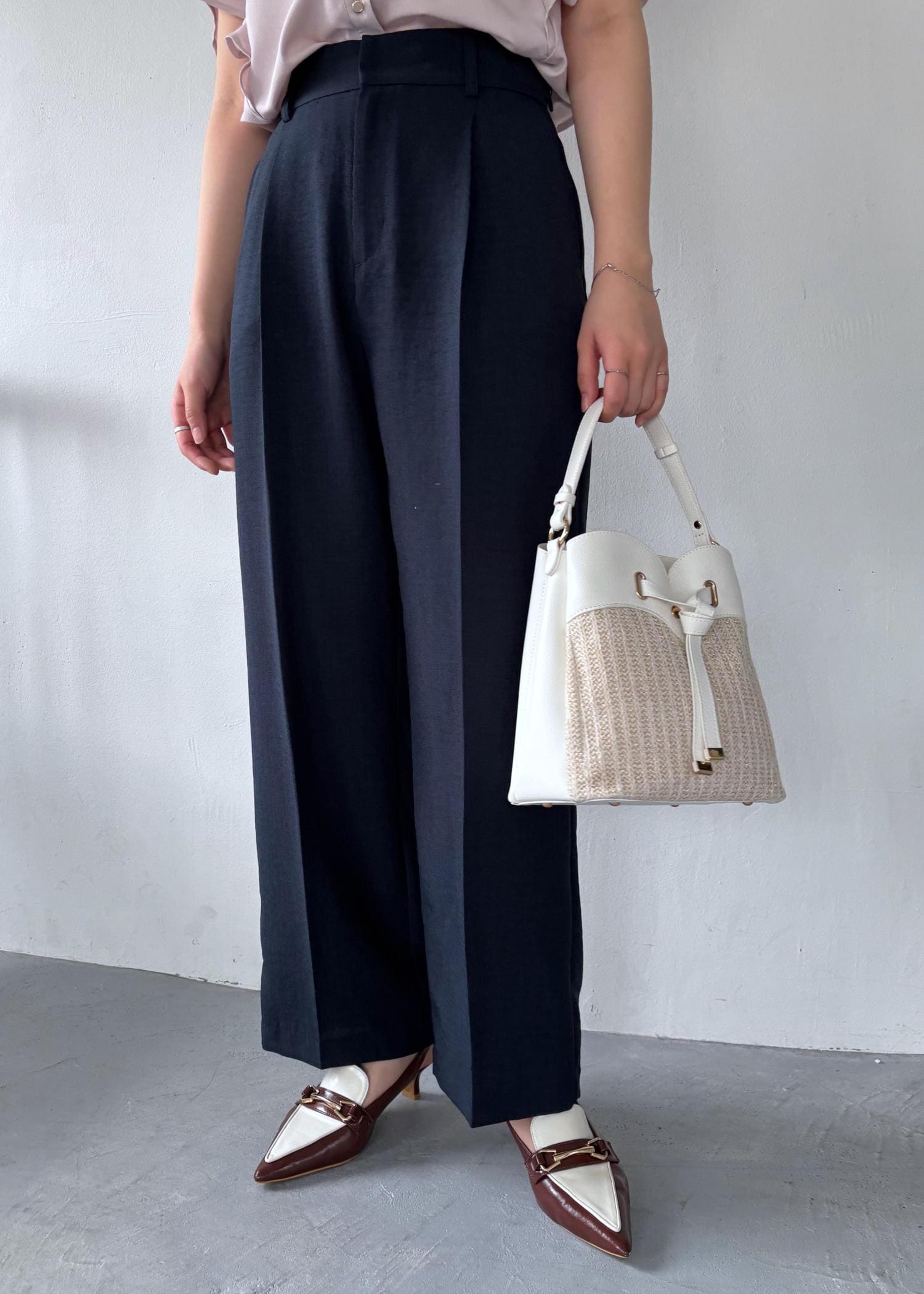 VIS【美easy】ワンタックワイドスラックスパンツ/洗えるネイビー / M¥5,489レビュー165cmでMサイズ着用、くるぶしが隠れるほどでフラットな靴でジャストサイズです。
