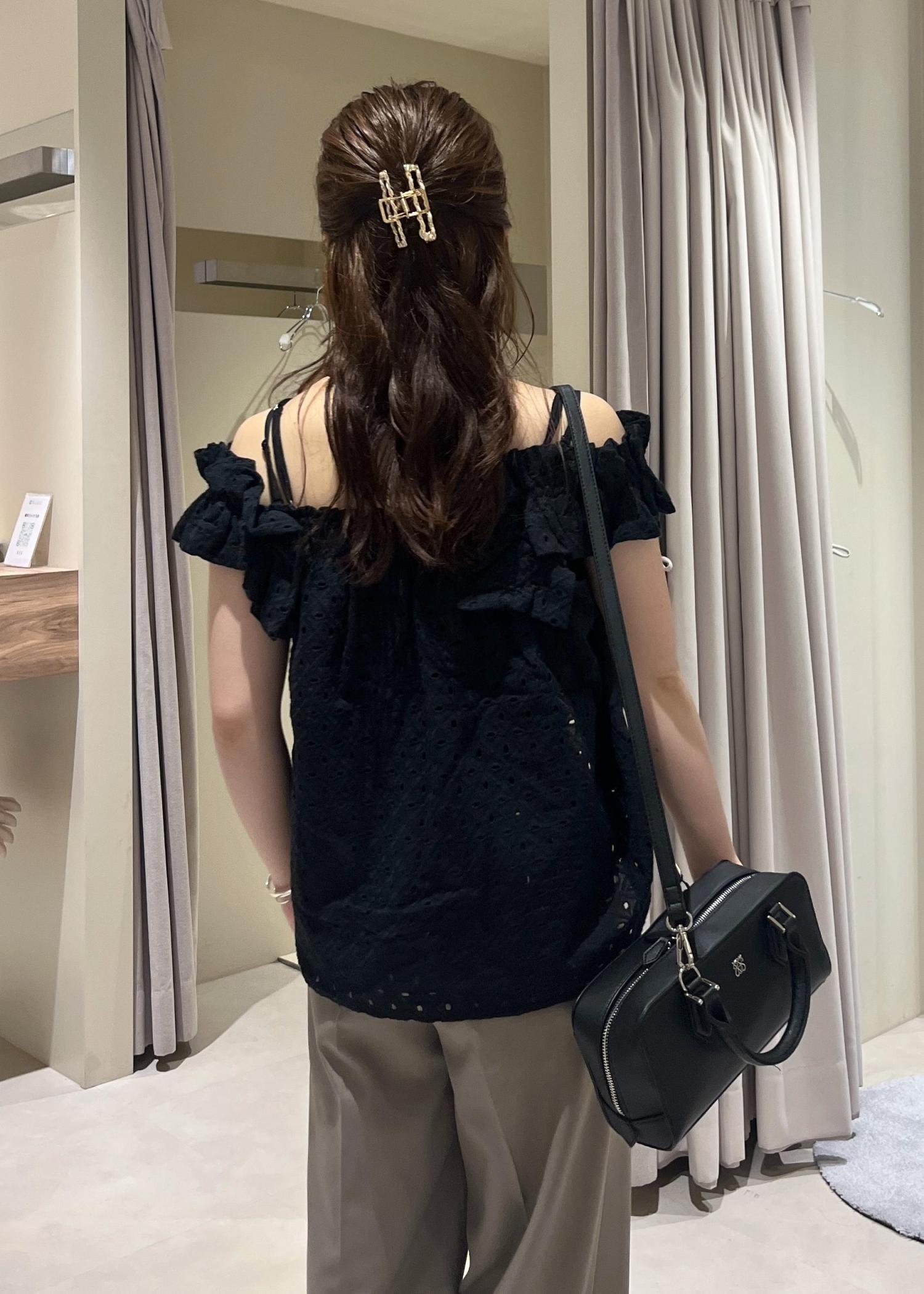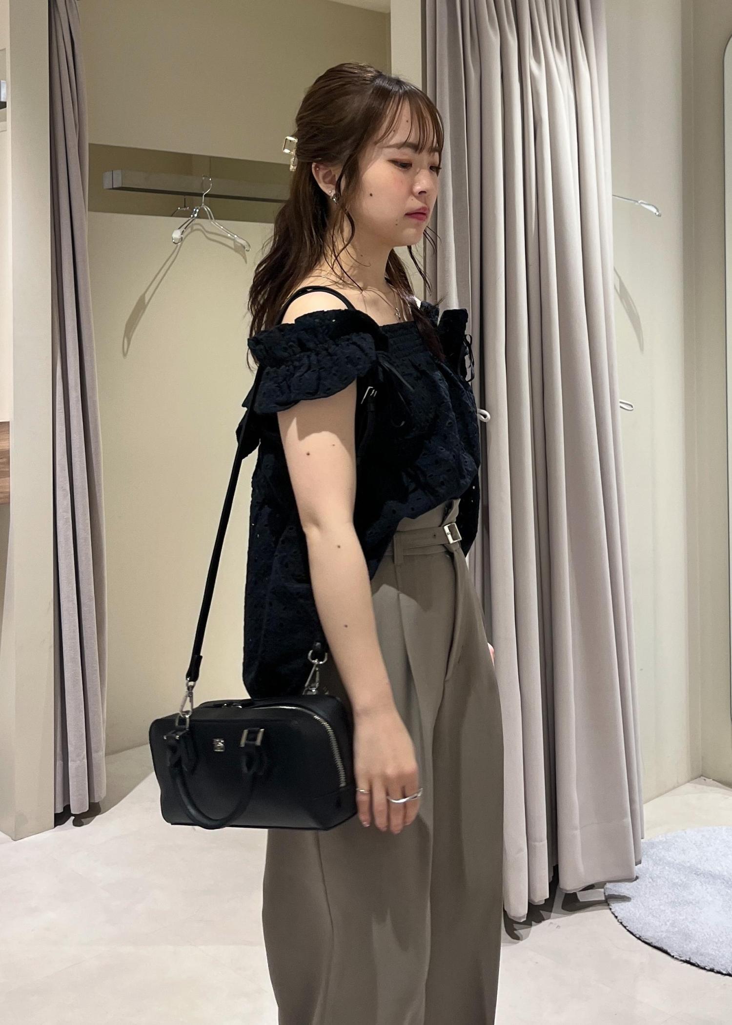アウトレットVIS【2WAY】エンブロイダリーレースショルダーブラウスブラック / F¥3,953レビュー2way仕様のトップス!